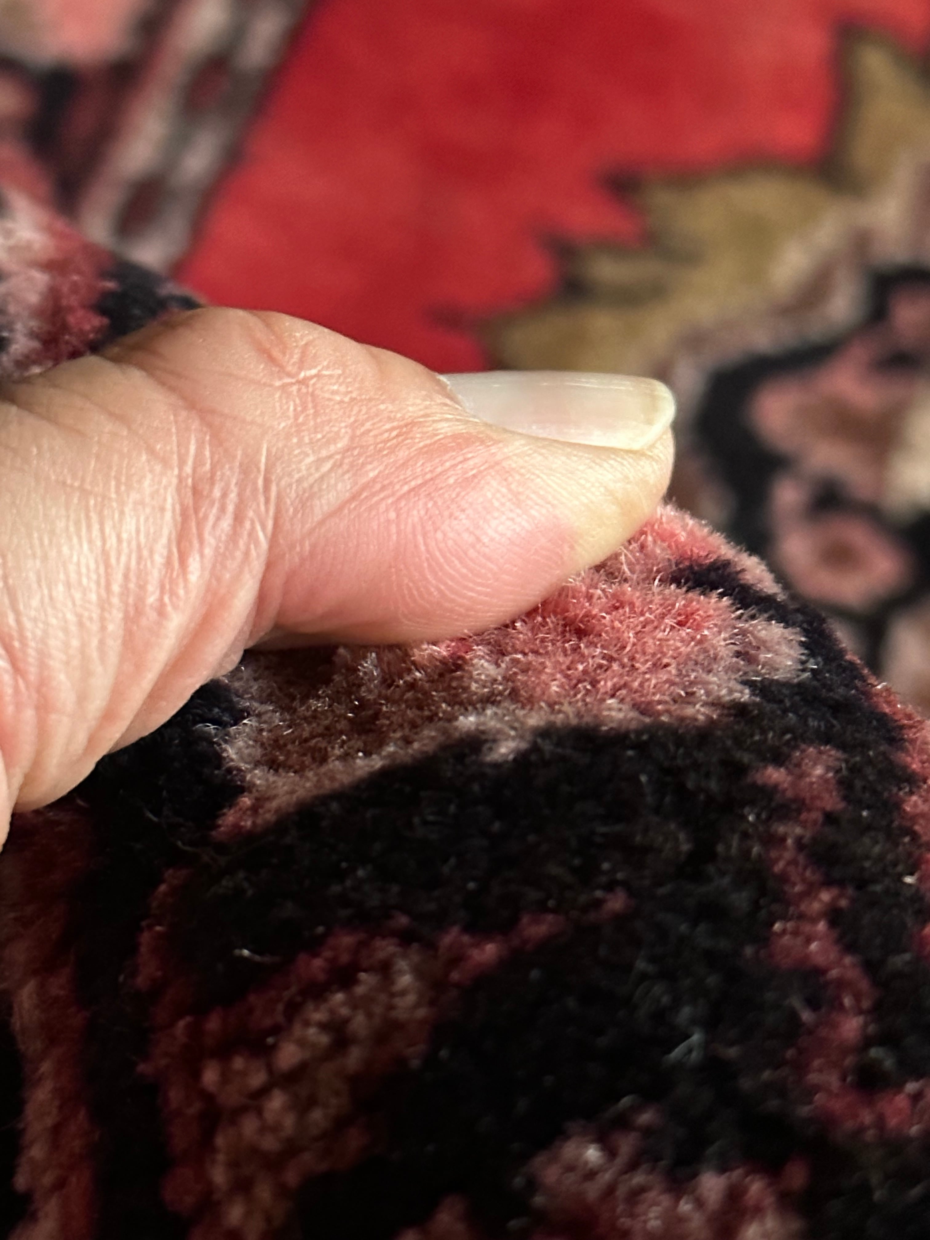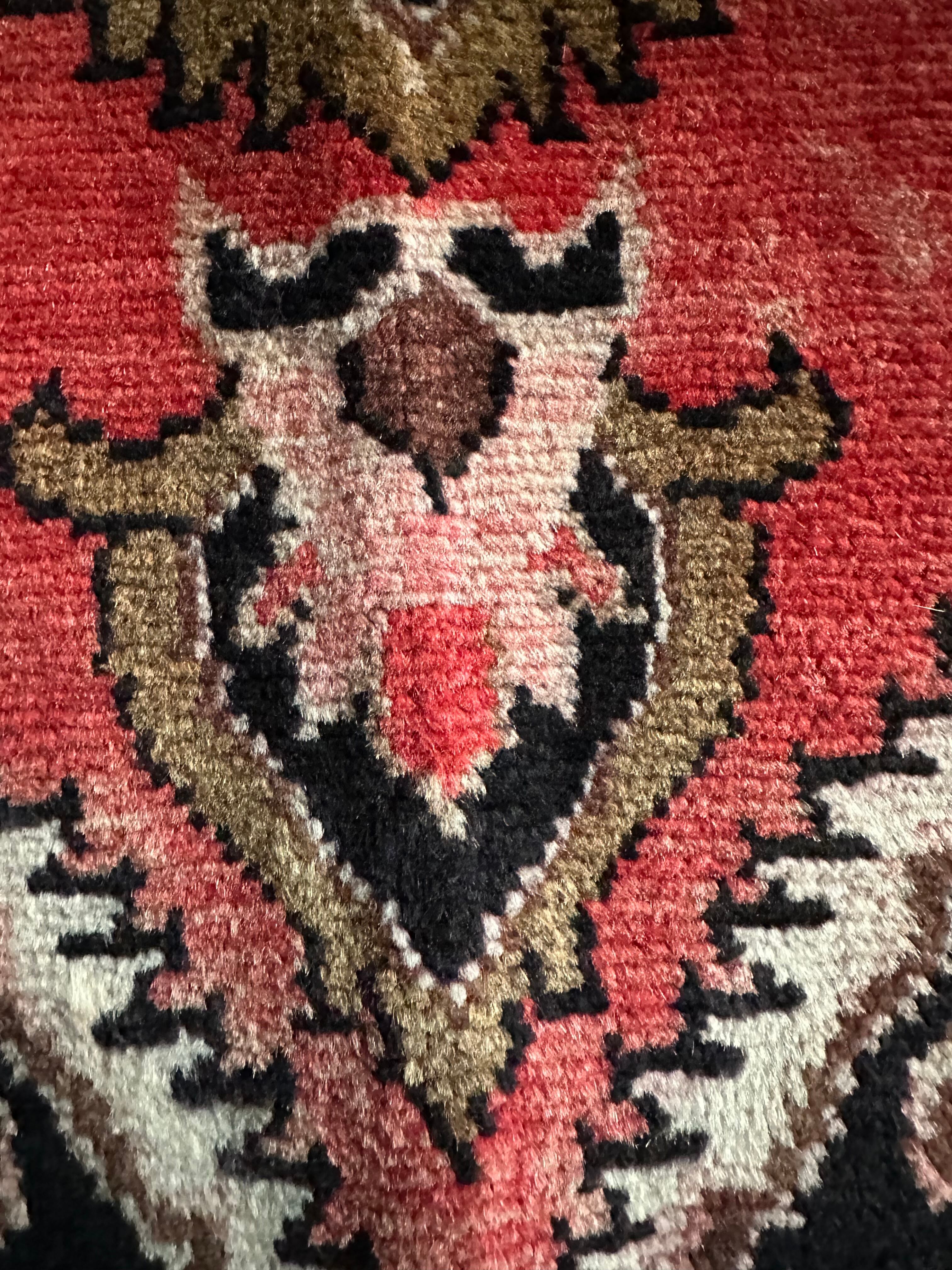 パイルの長さはほど良くそれなりの厚みにしっかりとした織りで、特に色ムラがあるところが手仕事ならではでしょうか。それなりの使用感はありますが目立つリペアにパイル抜けはありせん。