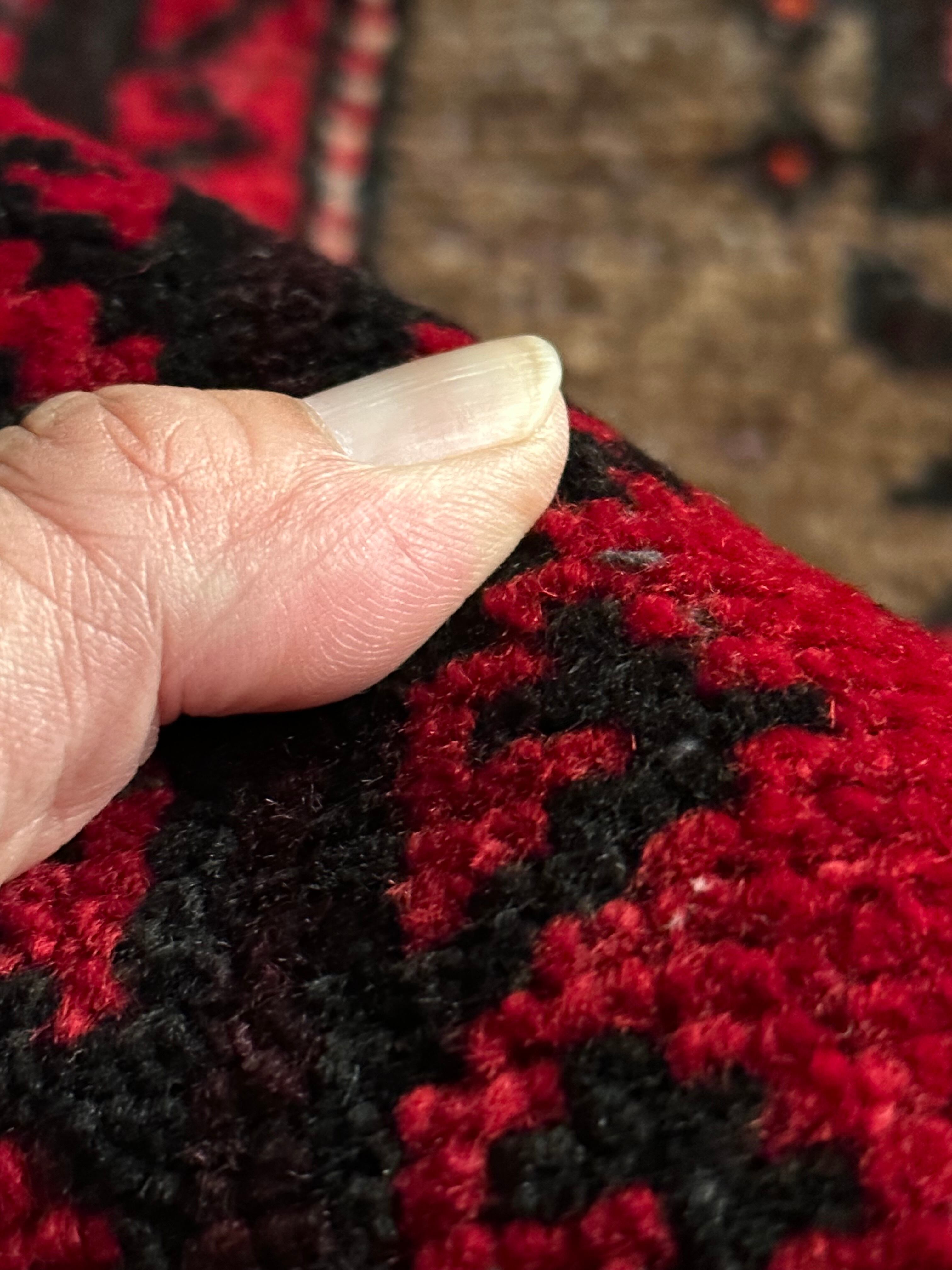 それなりの使用感があり、織りの大きさに加えてパイル自体も短く整えられ、目立つようなリペアはありませんが若干のパイル抜けがあります。また上と下で2cmの誤差があることをご理解ください。