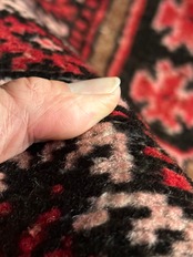 それなりの使用感があり、織りの大きさに加えてパイル自体も短く整えられていますが、目立つようなリペアやパイル抜けはありません。