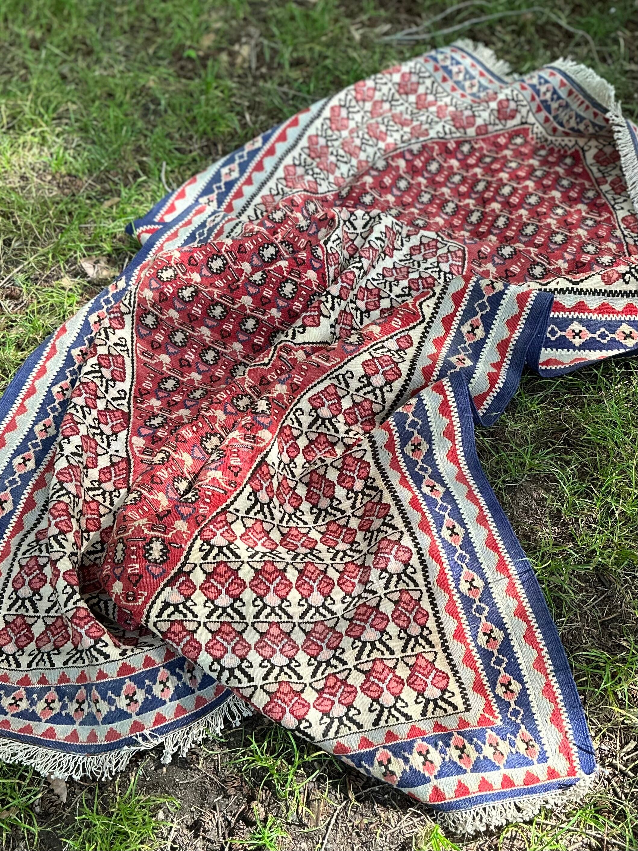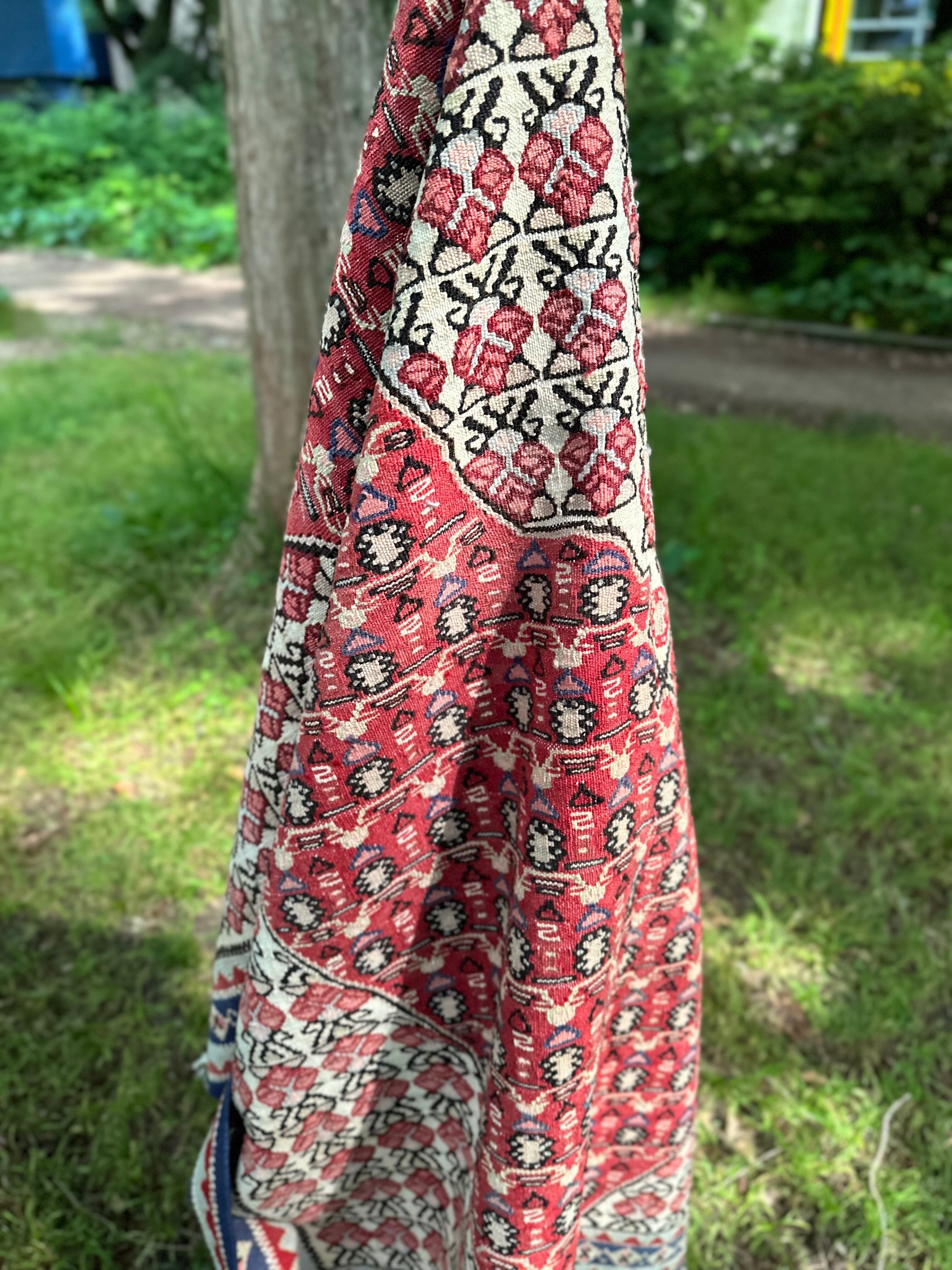 またラグそのものに関しては羊毛特有の匂いがあり手織りによる歪みや経年劣化、草木染めによる色ムラなどがありますが、それもまたトライバルラグの魅力かとご理解ください。