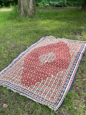 イラン中西部に位置するサナンダジは国を持たない部族として知られるクルド人の集落として栄えた街で、同じく近隣のセネなどに住むクルディスタンならではの細かな文様を織るラグが人気でしょうか、こちらも素晴らしい表情で芸術性の高い1枚になります。