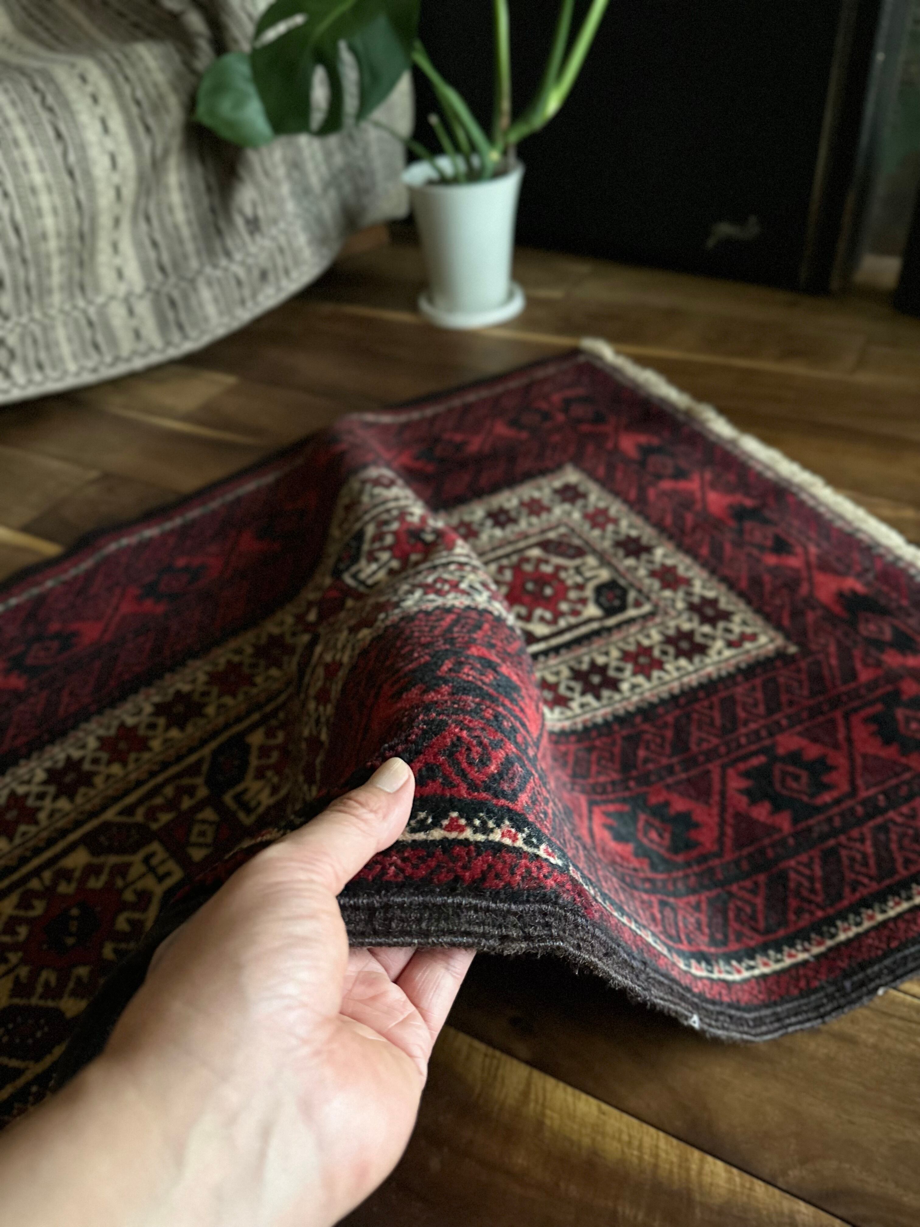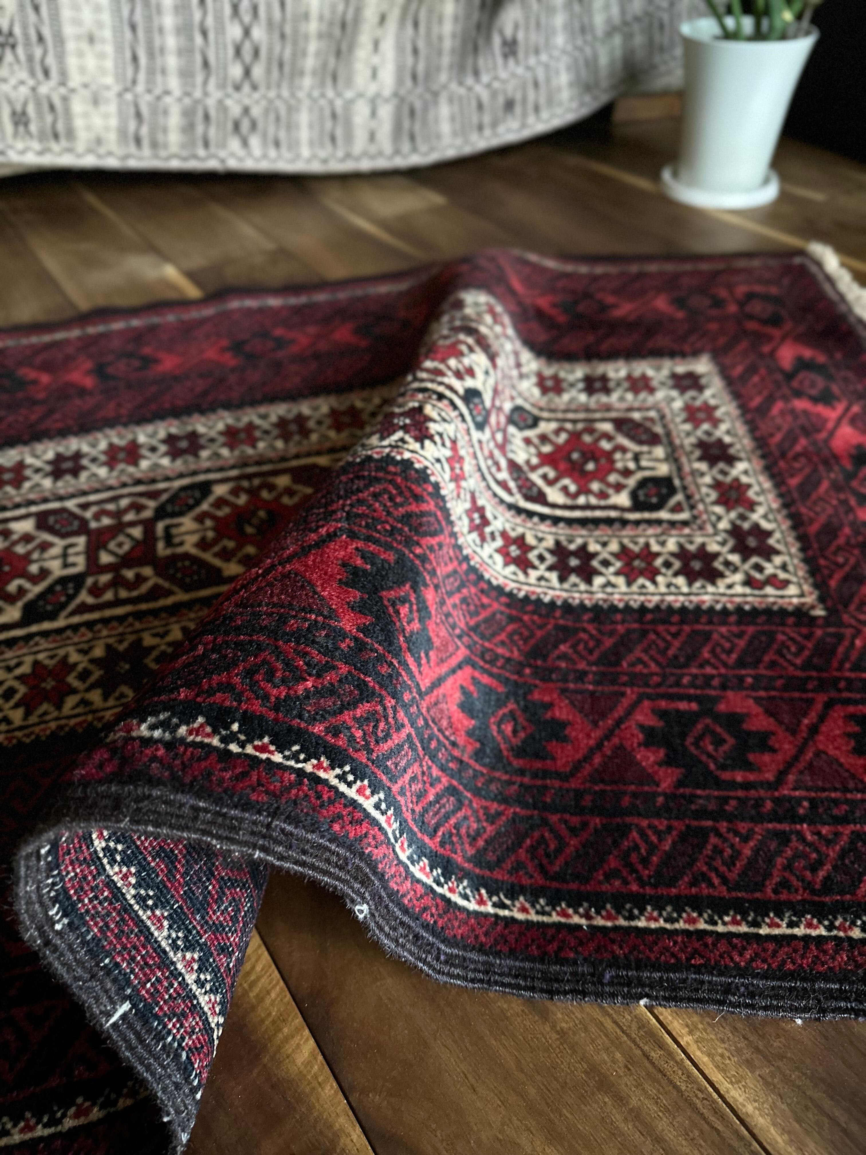またラグそのものに関しては羊毛特有の匂いがあり手織りによる歪みや経年劣化、草木染めによる色ムラなどがありますが、それもまたトライバルラグの魅力かとご理解ください。