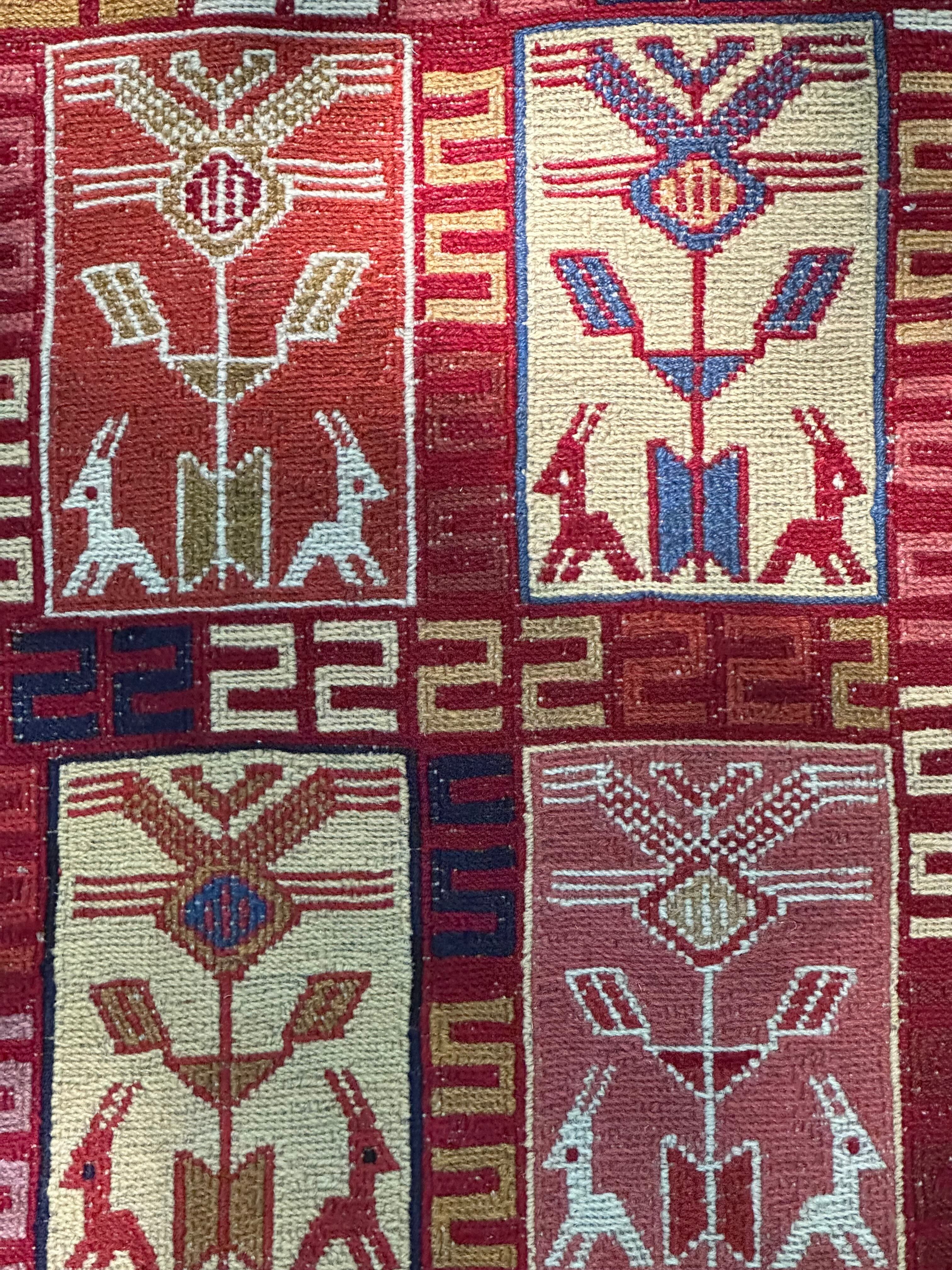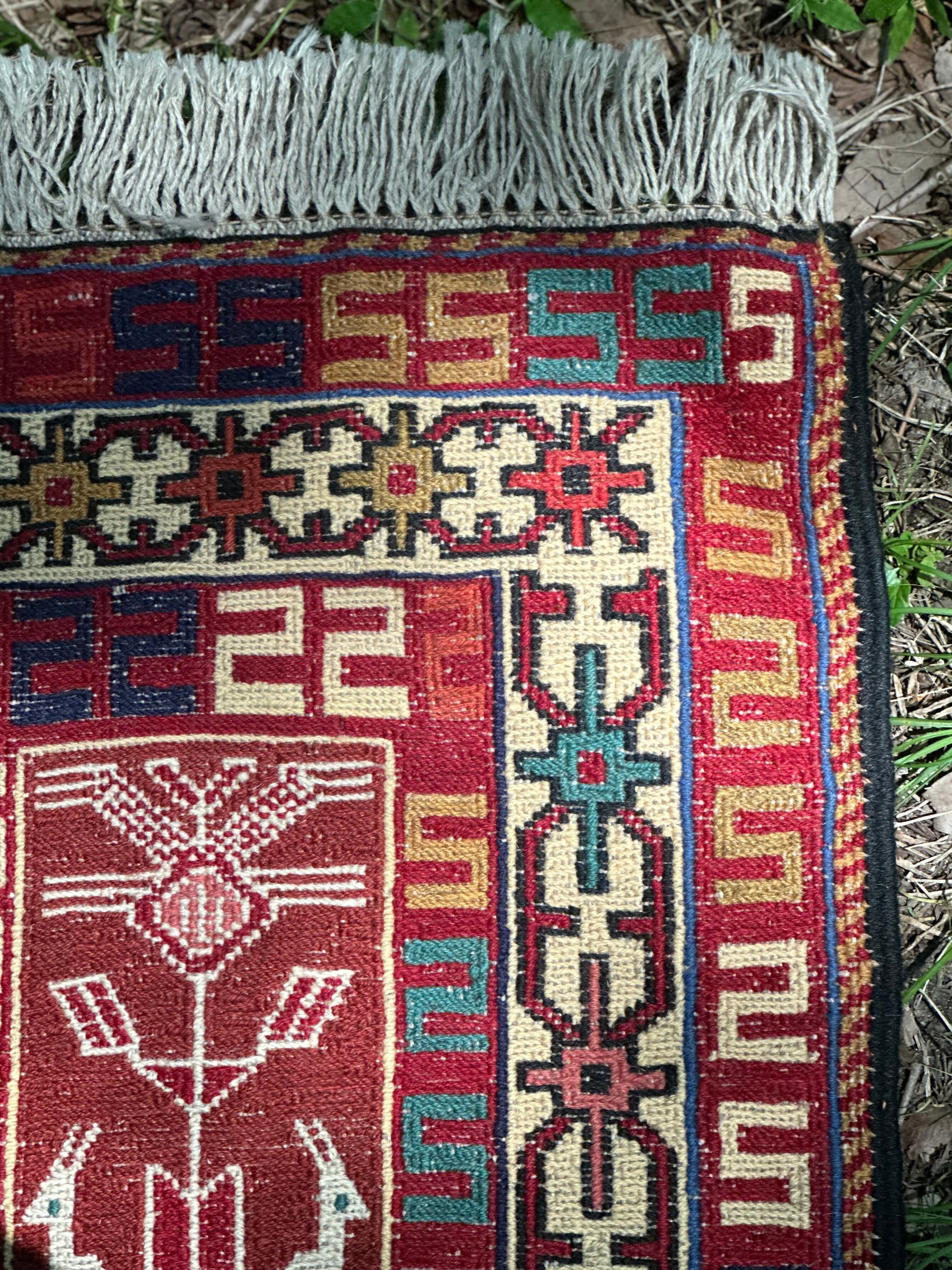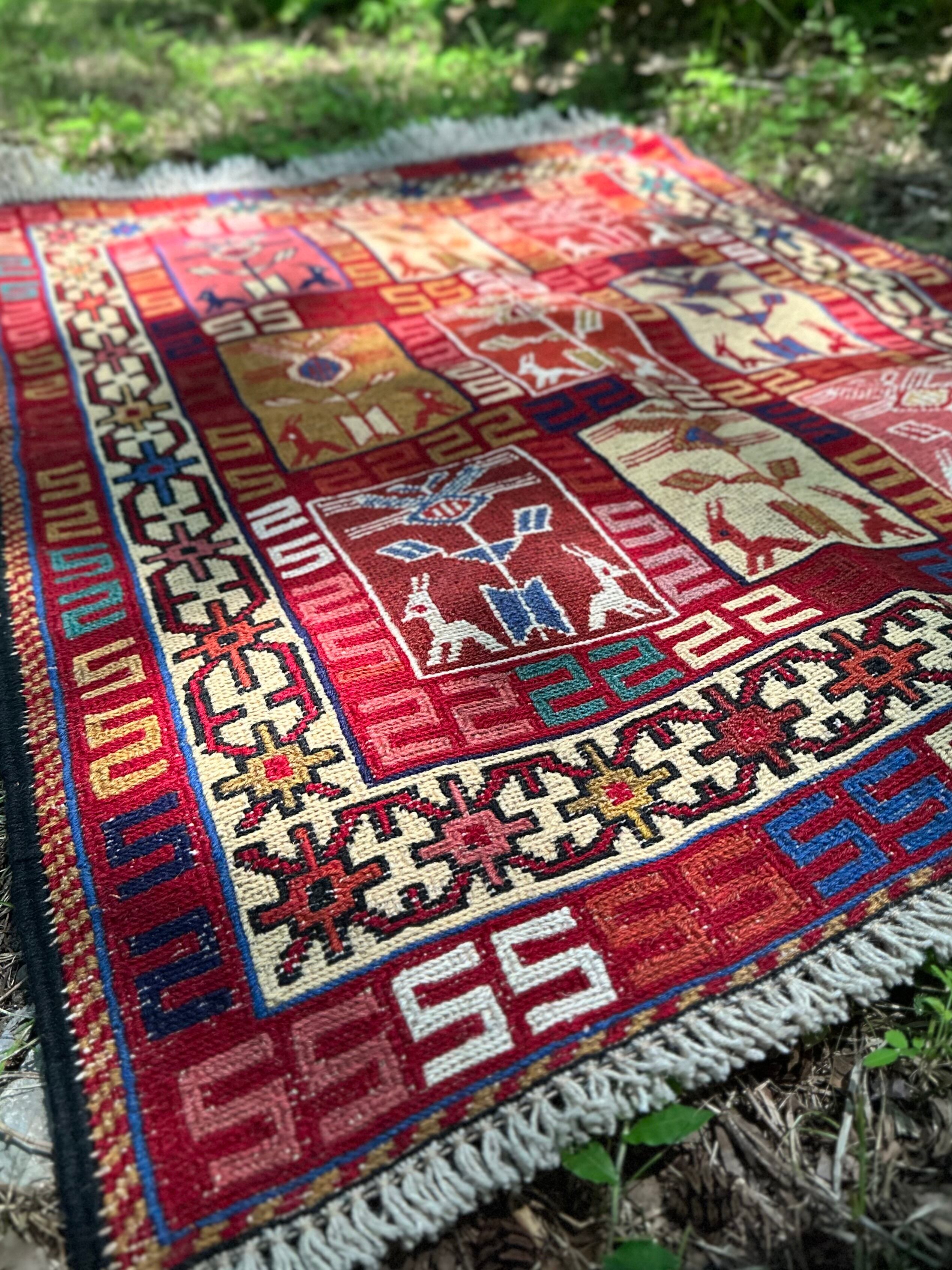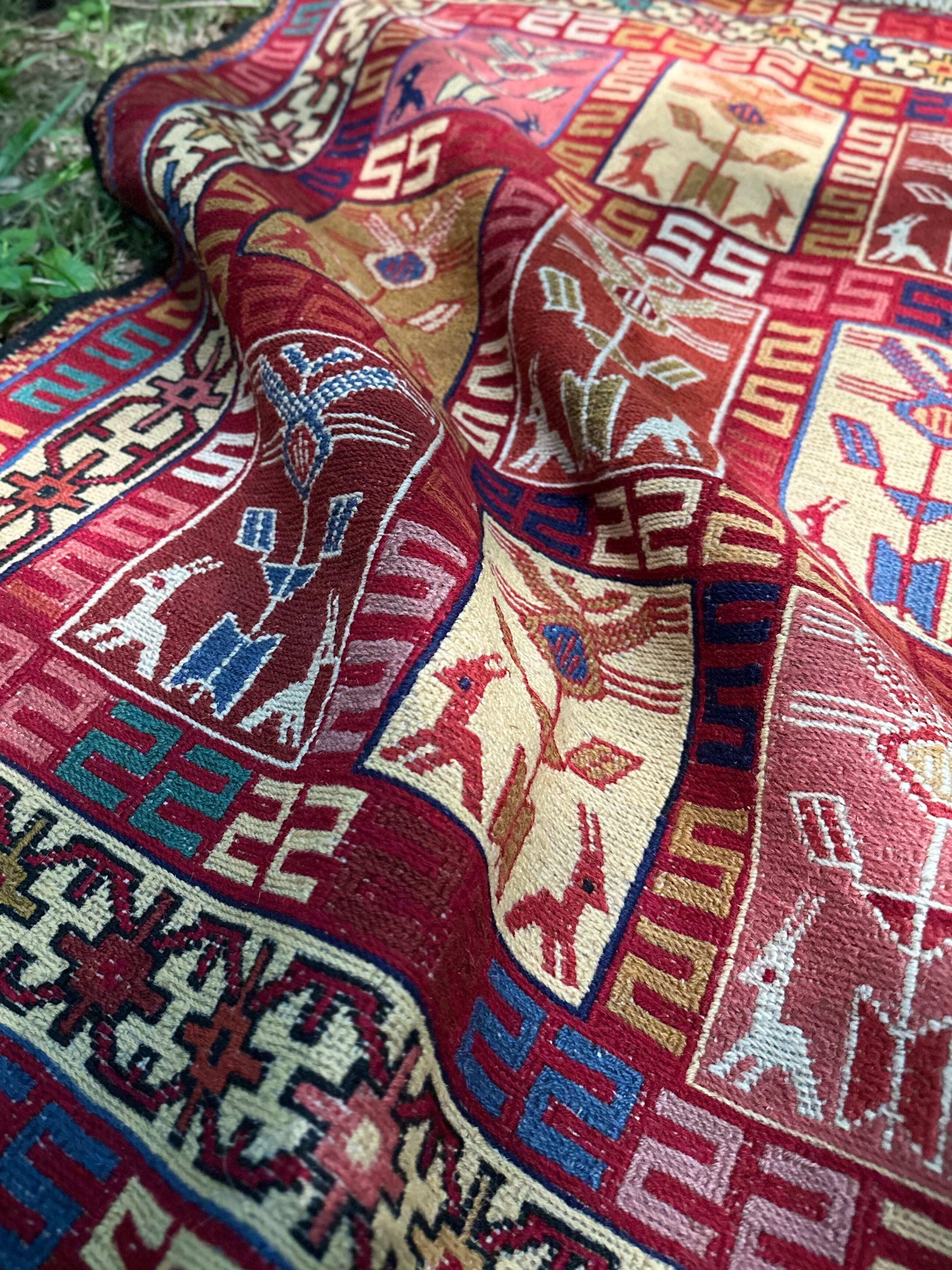 カラフルでポップな絵柄がアゼルバイジャンらしいアーダビル近隣の村々で織られているヴァルニキリムになります。