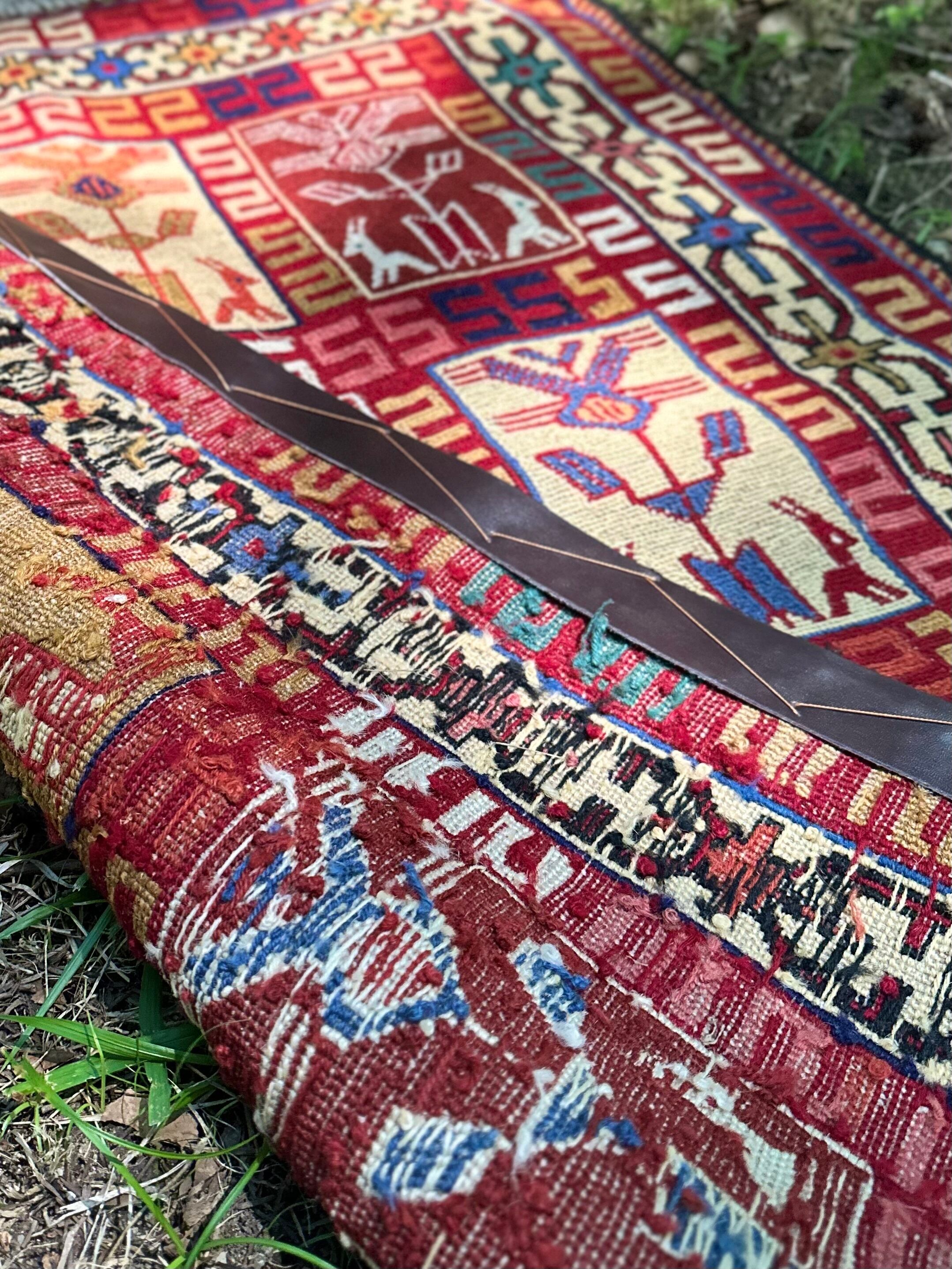 またラグそのものに関しては羊毛特有の匂いがあり手織りによる歪みや経年劣化、草木染めによる色ムラなどがありますが、それもまたトライバルラグの魅力かとご理解ください。