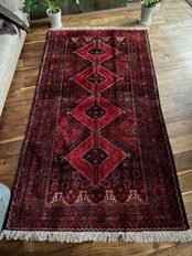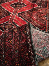 またラグそのものに関しては羊毛特有の匂いがあり手織りによる歪みや経年劣化、草木染めによる色ムラなどがありますが、それもまたトライバルラグの魅力かとご理解ください。