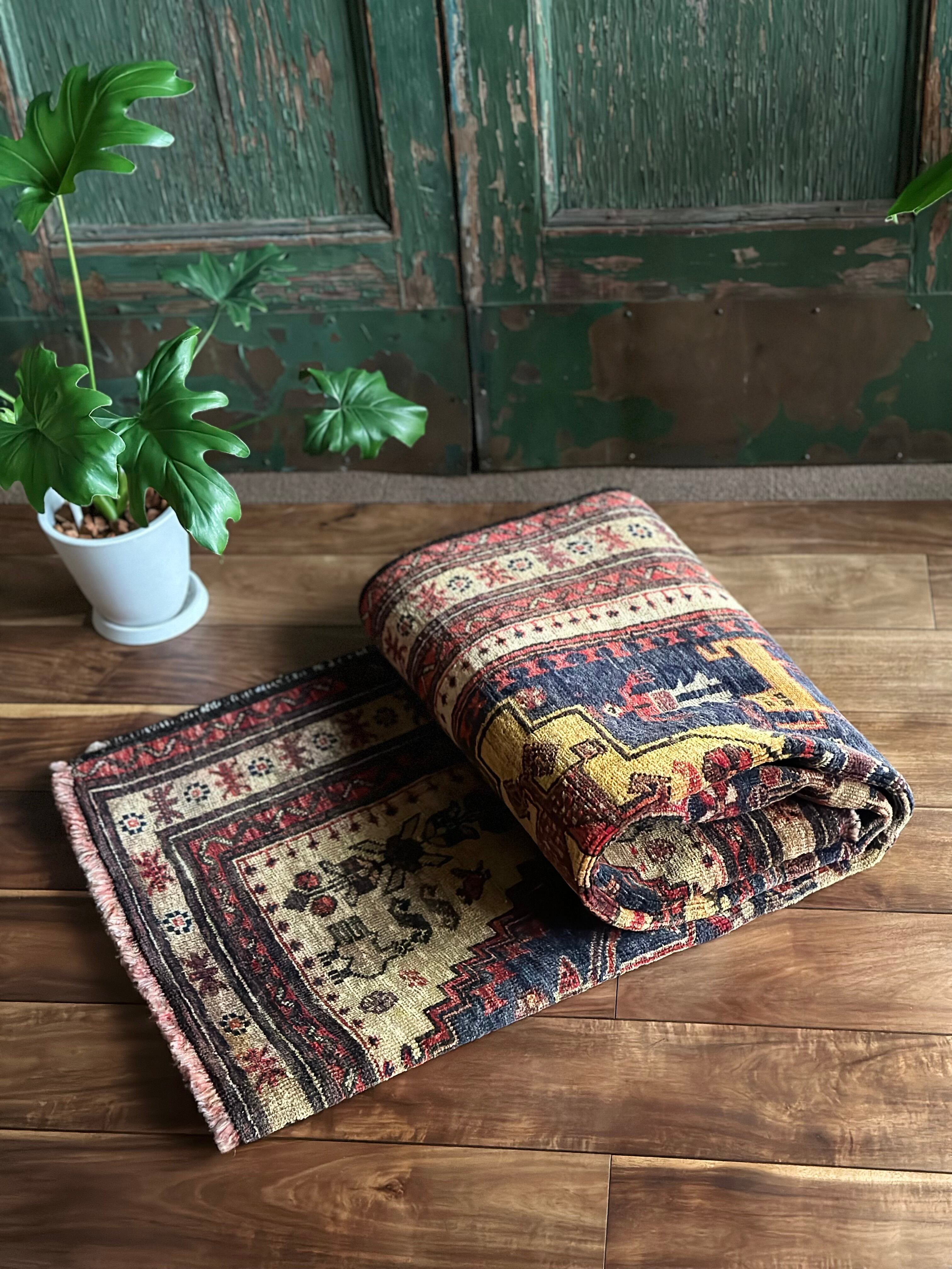 またラグそのものに関しては羊毛特有の匂いがあり手織りによる歪みや経年劣化、草木染めによる色ムラなどがありますが、それもまたトライバルラグの魅力かとご理解ください。