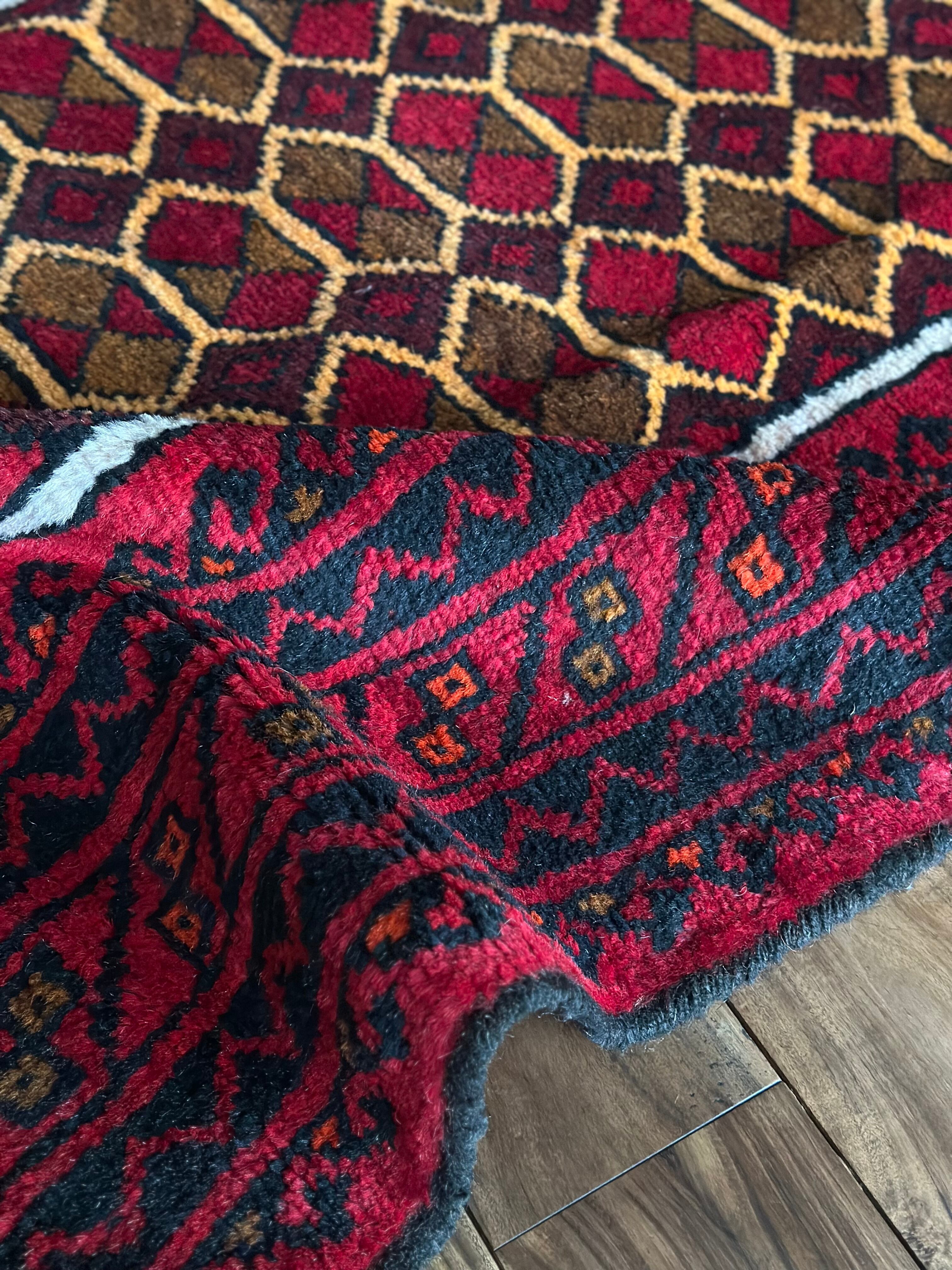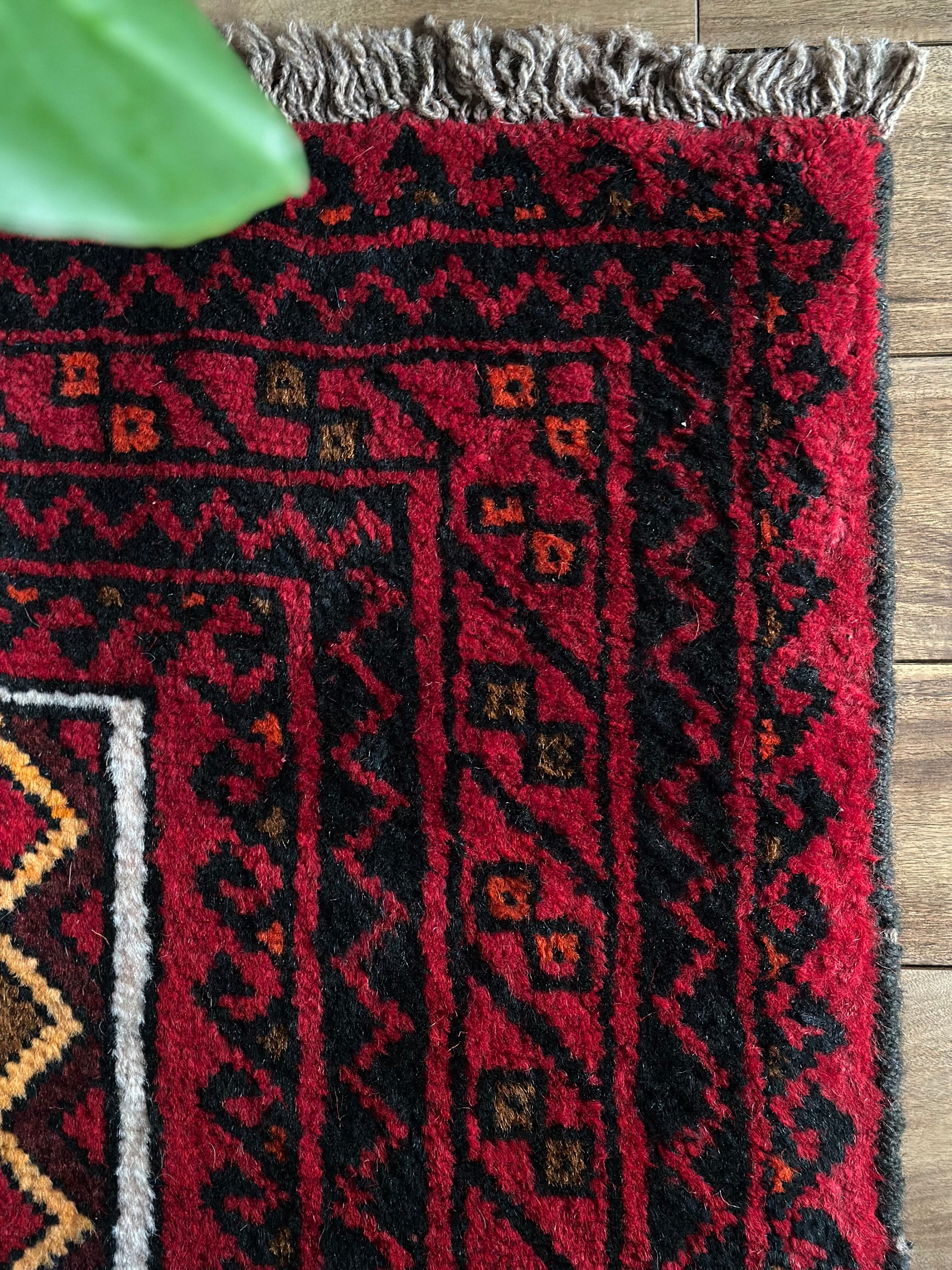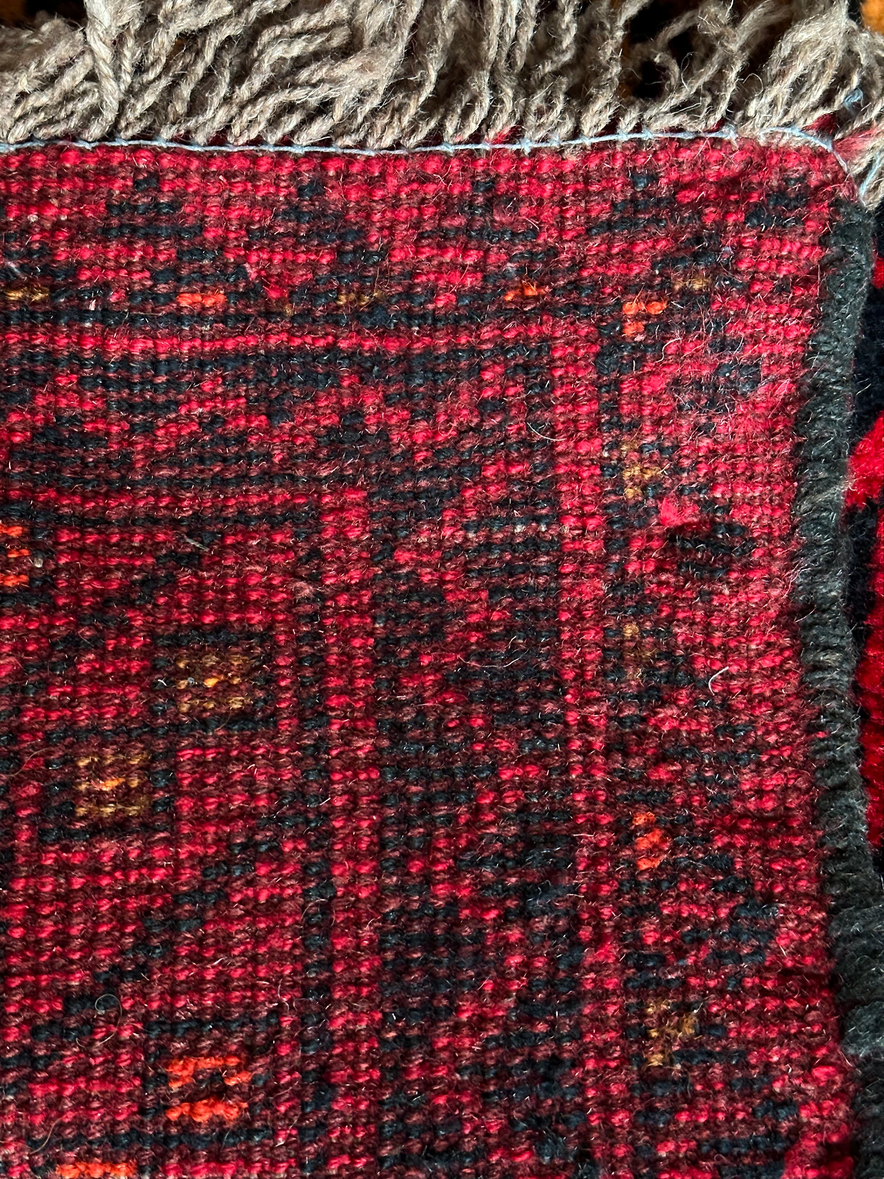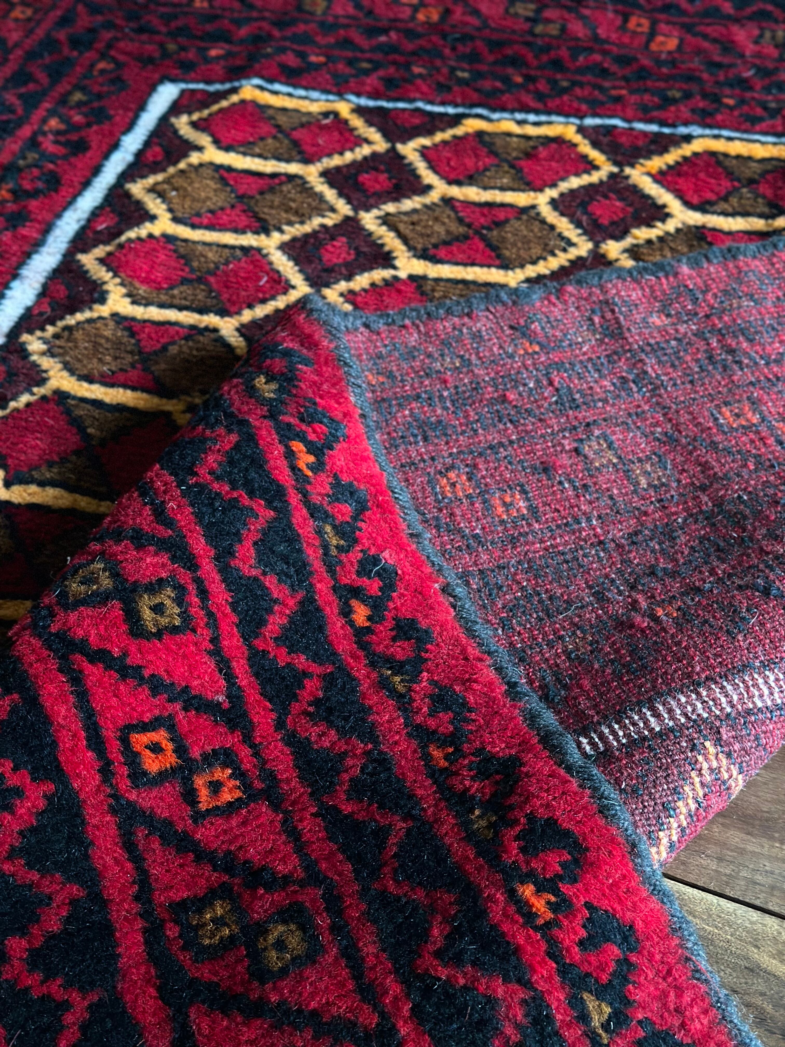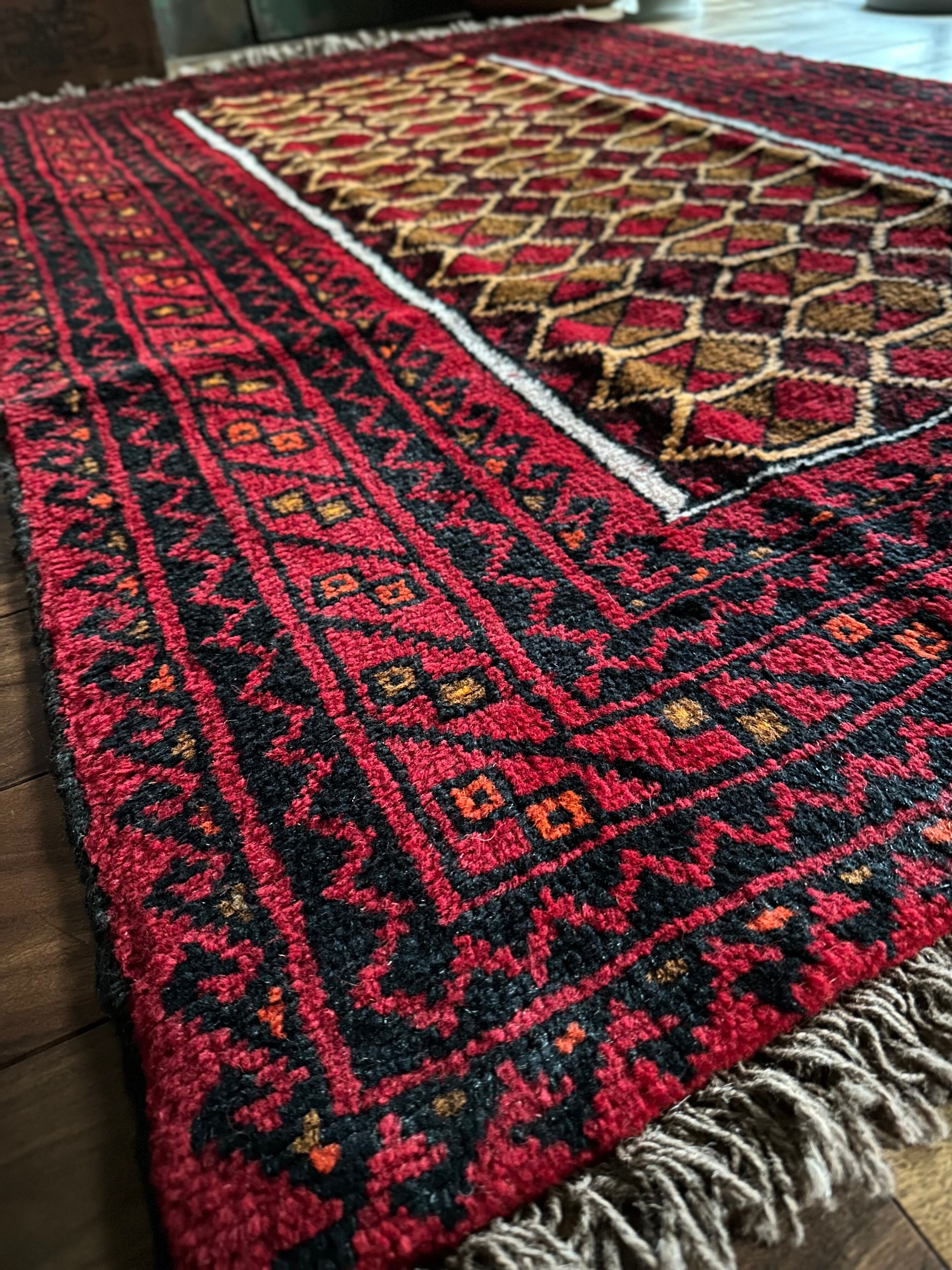 そんな彼らの織りなすラグは色彩豊かで、こちらは一見してバルーチのような見た目ですが、グーチャンの証であるボーダー部分のギザギザ模様にフィールドのイエローな縁取りがビシっと引き締まって見えます。