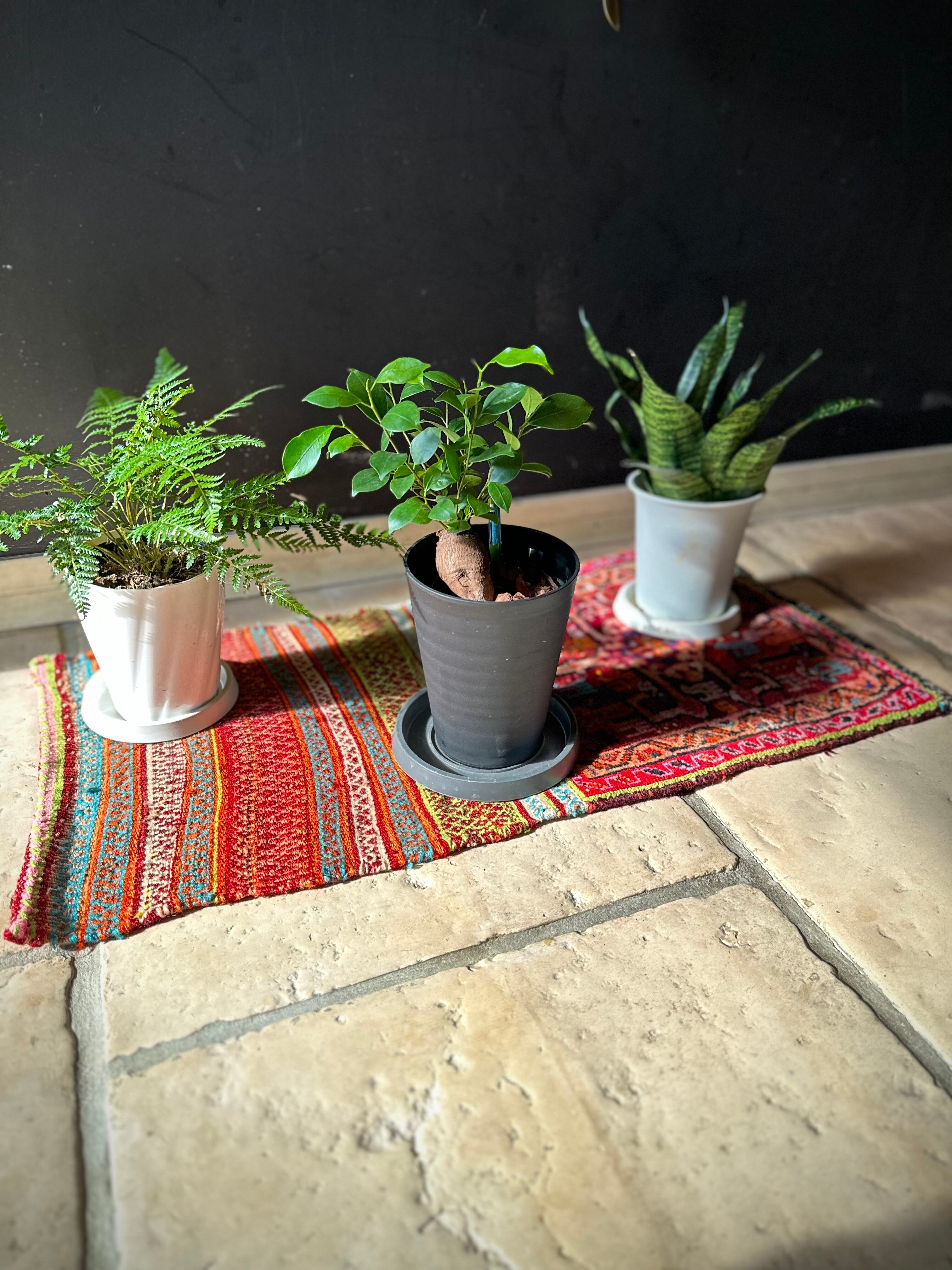 大きさ的にはサイドボードの天板に合う細長い形状で、パイル自体は短めですがしっかりと目の詰まった織りに厚みもありますので、ちょっとしたプランター置きに最適でしょうか、よく見れば沢山の動物が描かれていてグリーンとの相性も良いですよね。