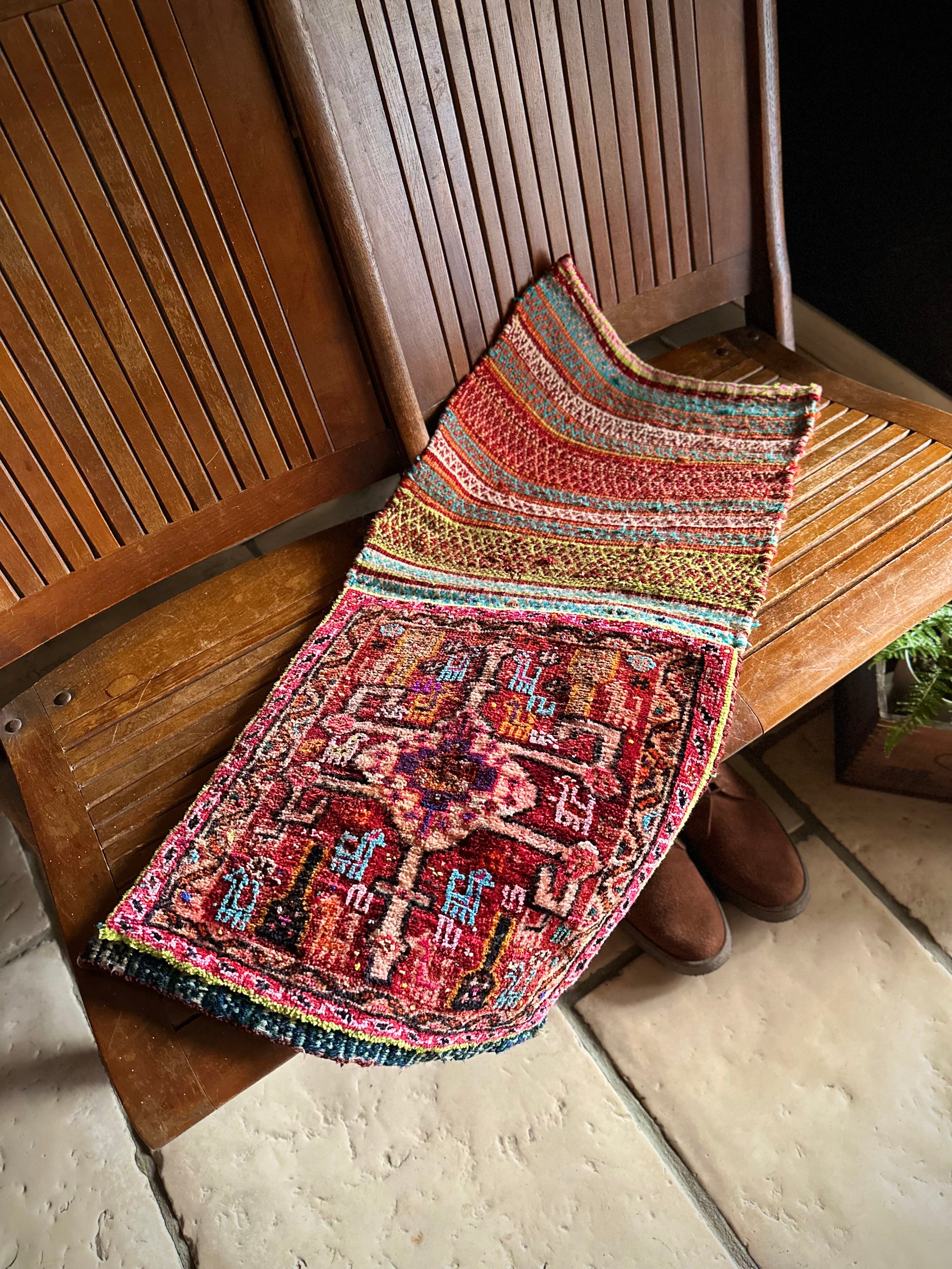 年代的には50年以上前のモノと古く、それなりの使用感はありますが、さすがは染色に長けたカシュガイ族の織物だけに色鮮やかさを保っていますし、なによりも丈夫なところがイチオシでもあります。