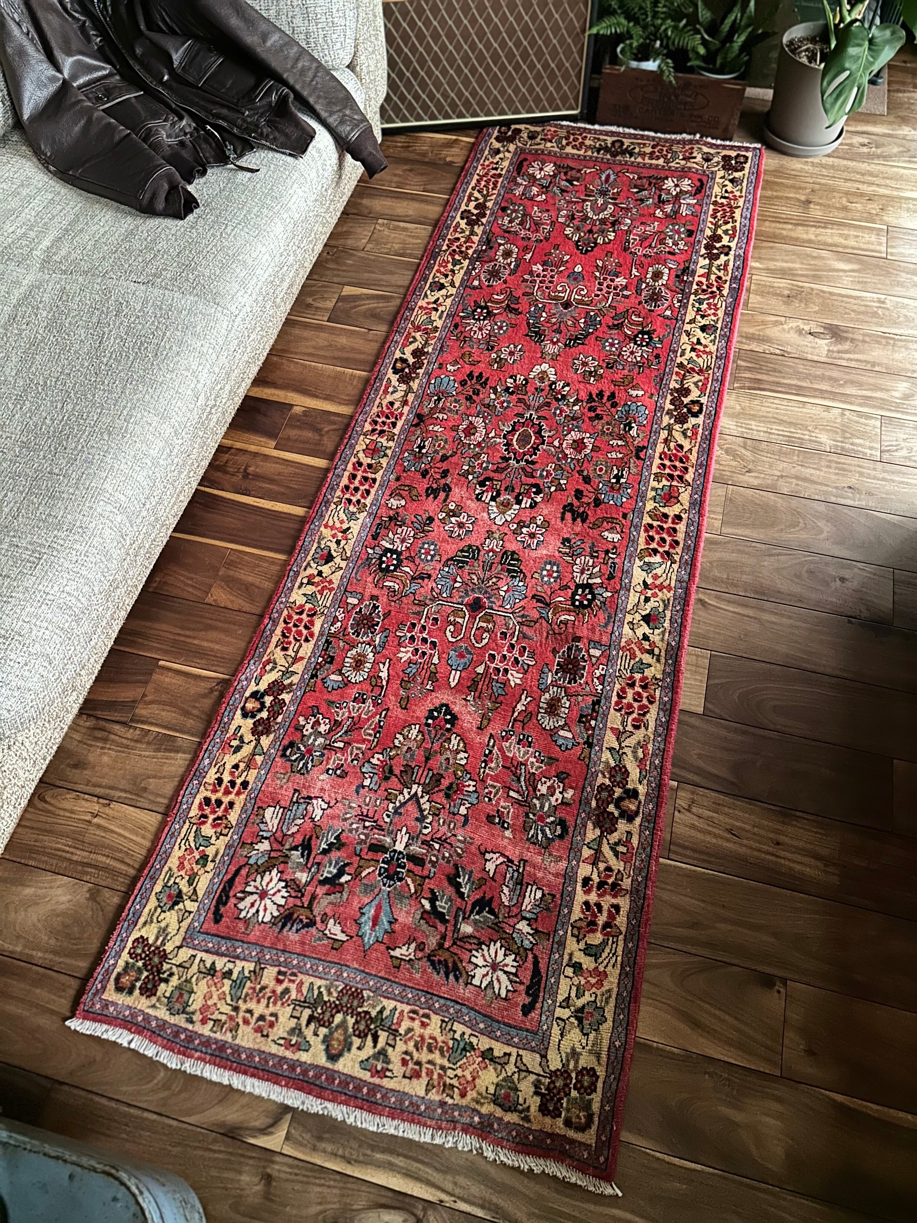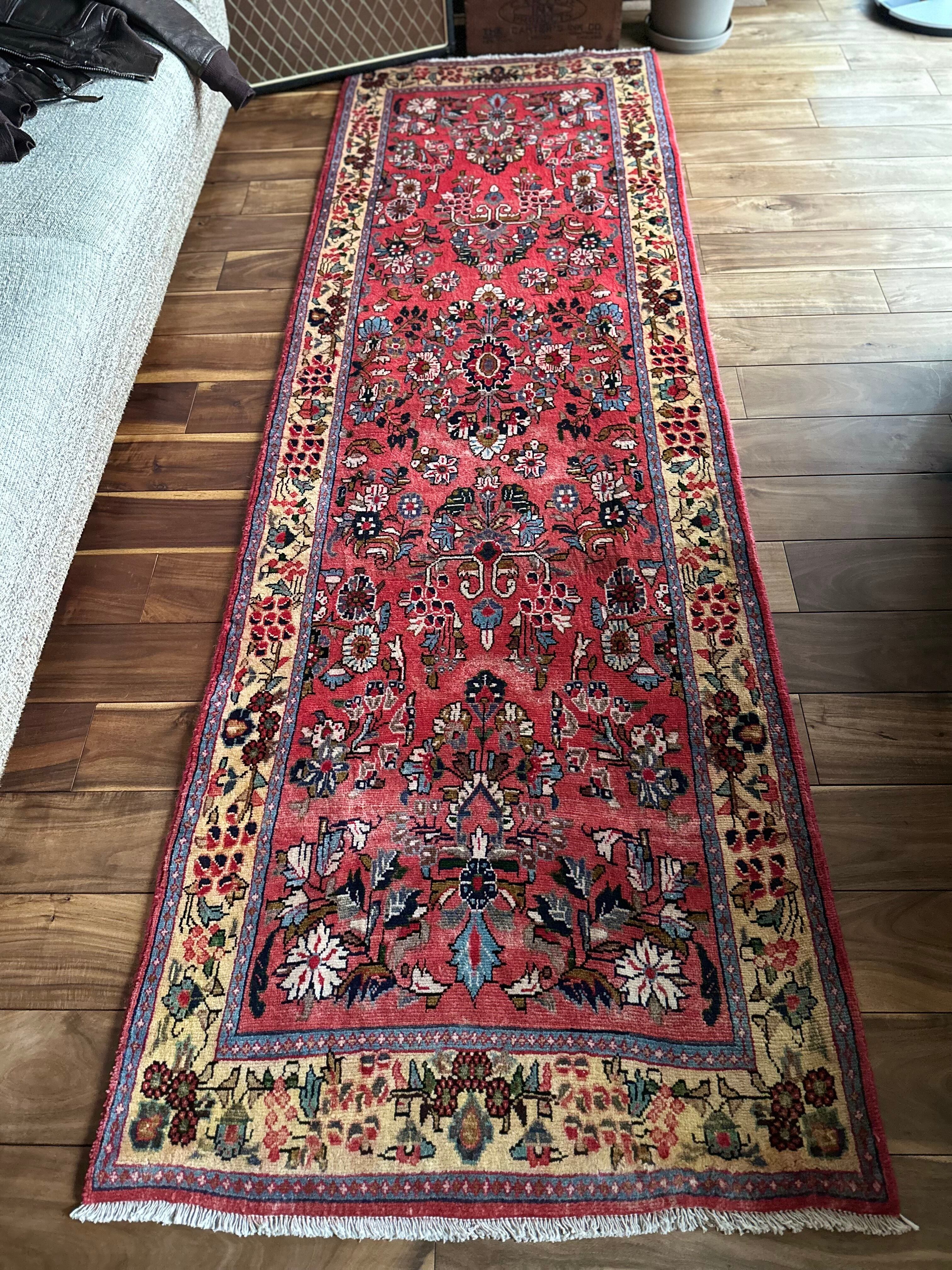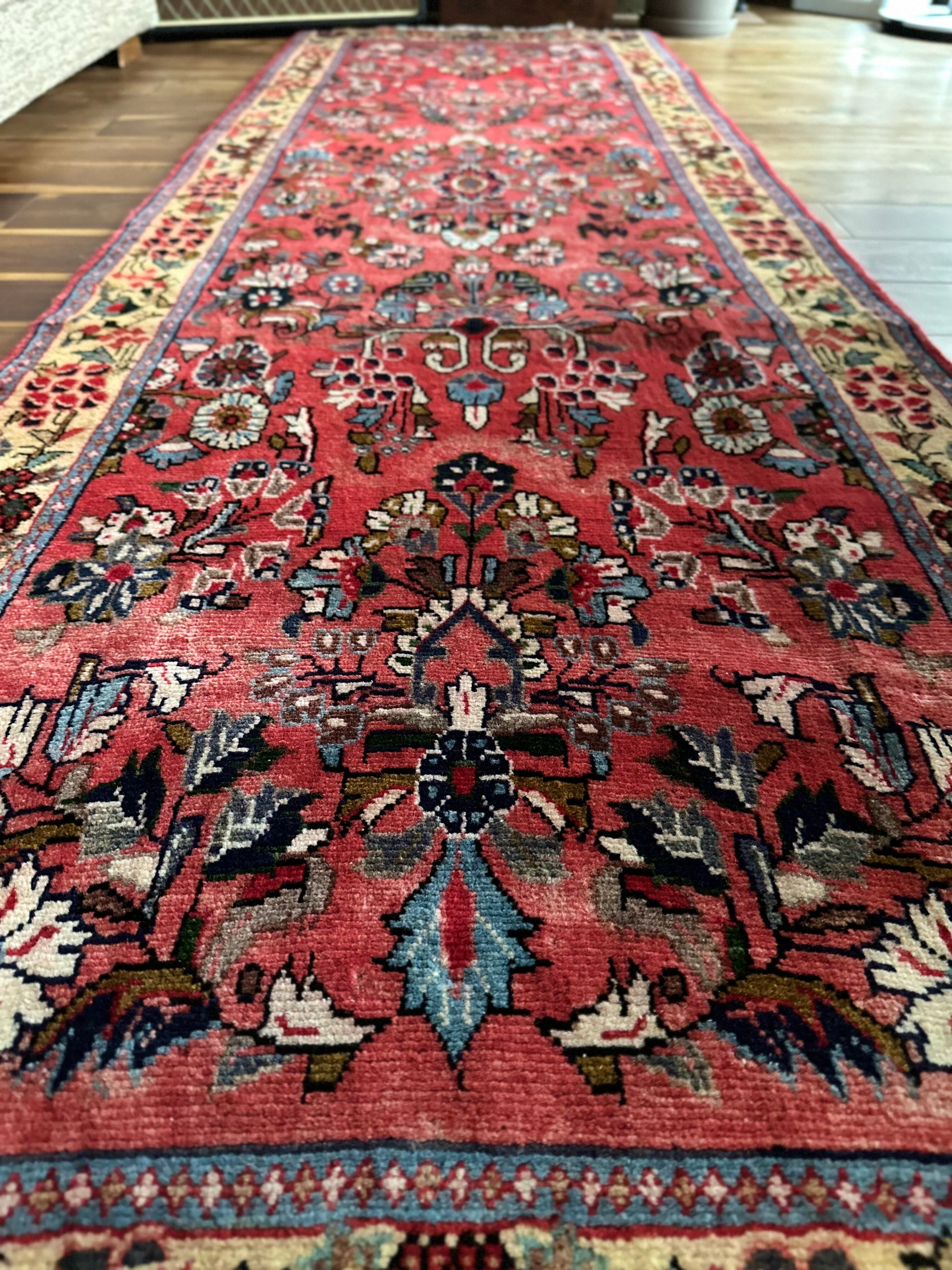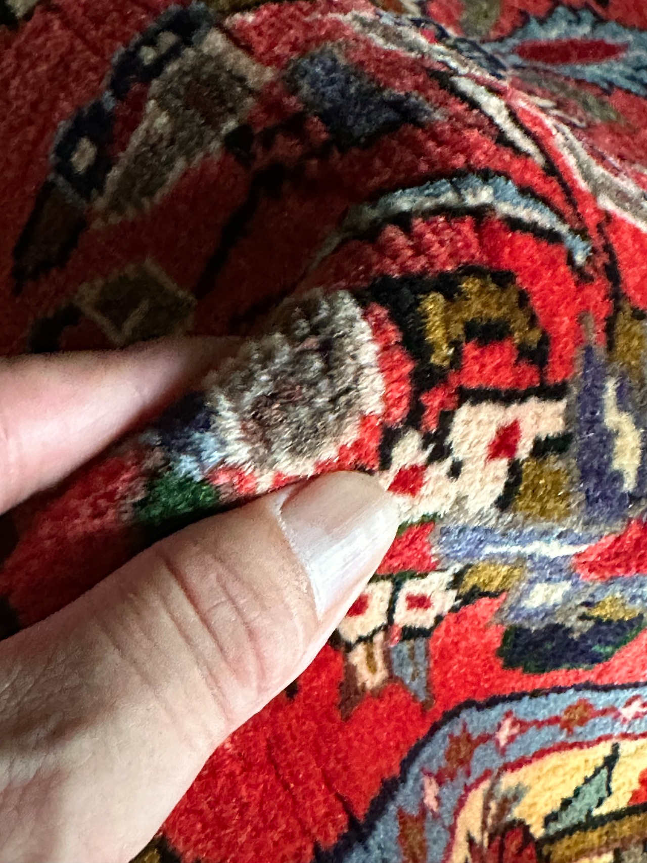 経年としては30〜40年ほど前のヴィンテージラグになり、日本の住宅事情でも使いやすい2メートルを超えたランナーサイズが魅力的でしょうか。特に目立つリペアや汚れはありませんし、なんと言ってもこの気持ちの良いパイルの密度が素足には堪りませんよねと、全体的な雰囲気は下記URLのInstagramにて最後の動画(室内での自然光にて撮影)を参照して下さい。