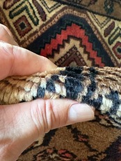 経年としては20〜30年ほど前となり、それなりの使用感はありますが、パイル自体は毛足もしっかりとしていて艶やかに、目立つ汚れはなくちょっとしたリペアにセルベッチの補修がありますので、全体的な雰囲気は下記URLのInstagramにて最後の動画(室内での自然光にて撮影)を参照して下さい。