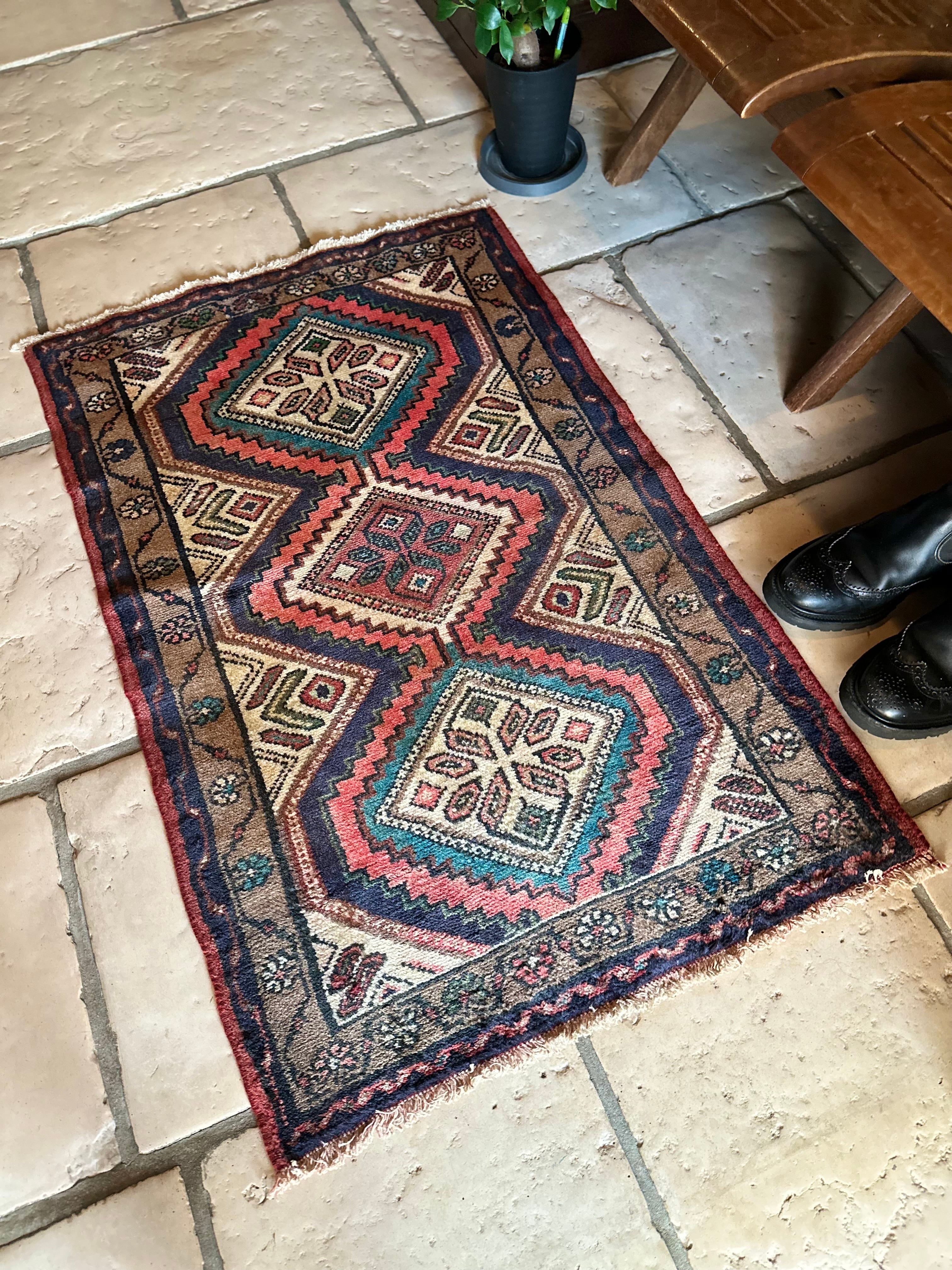 その色調が玄関マットな要素?を充分に満たしてくれそうなハマダン近郊で織られたヴィレッジラグになります。