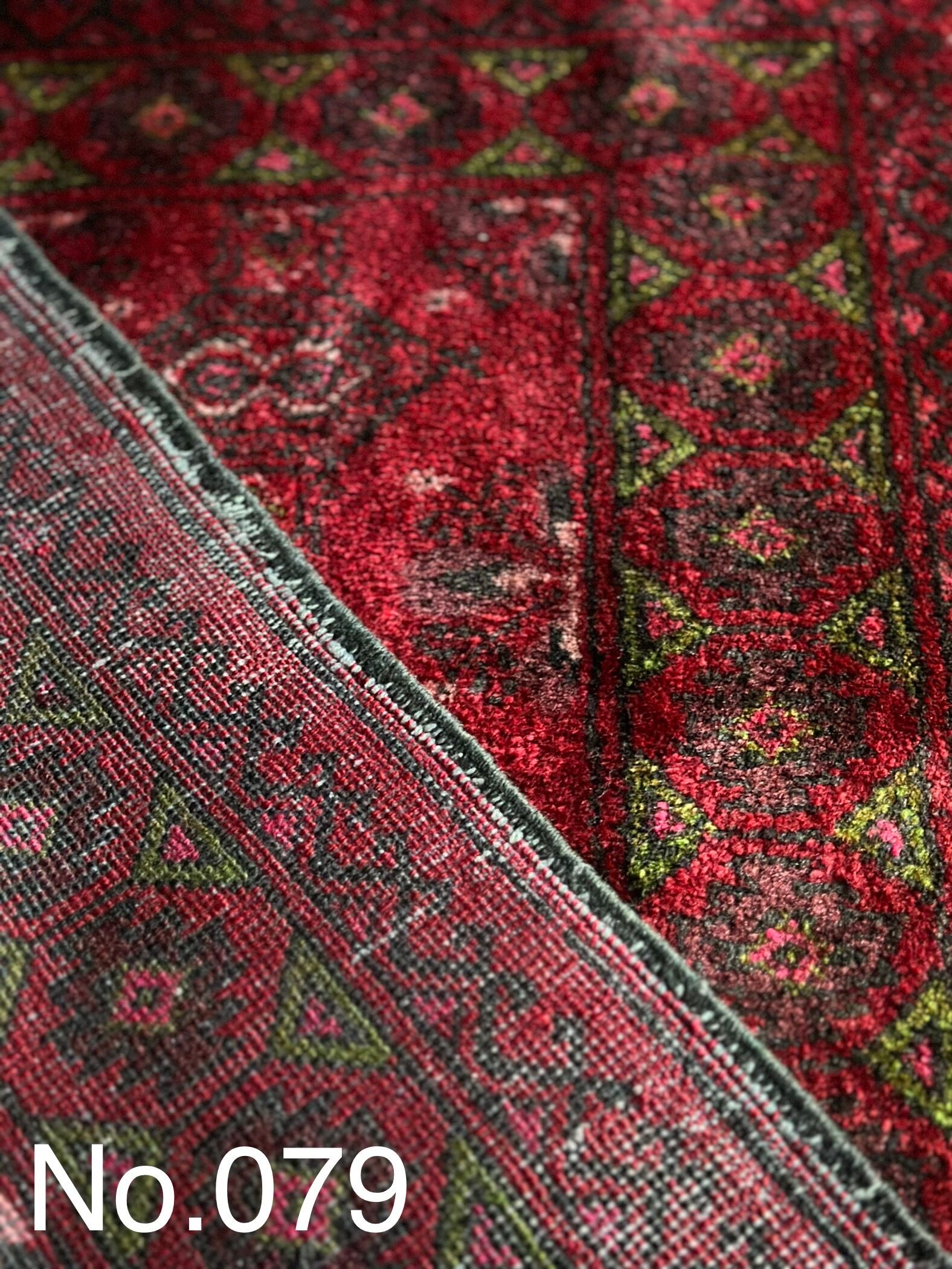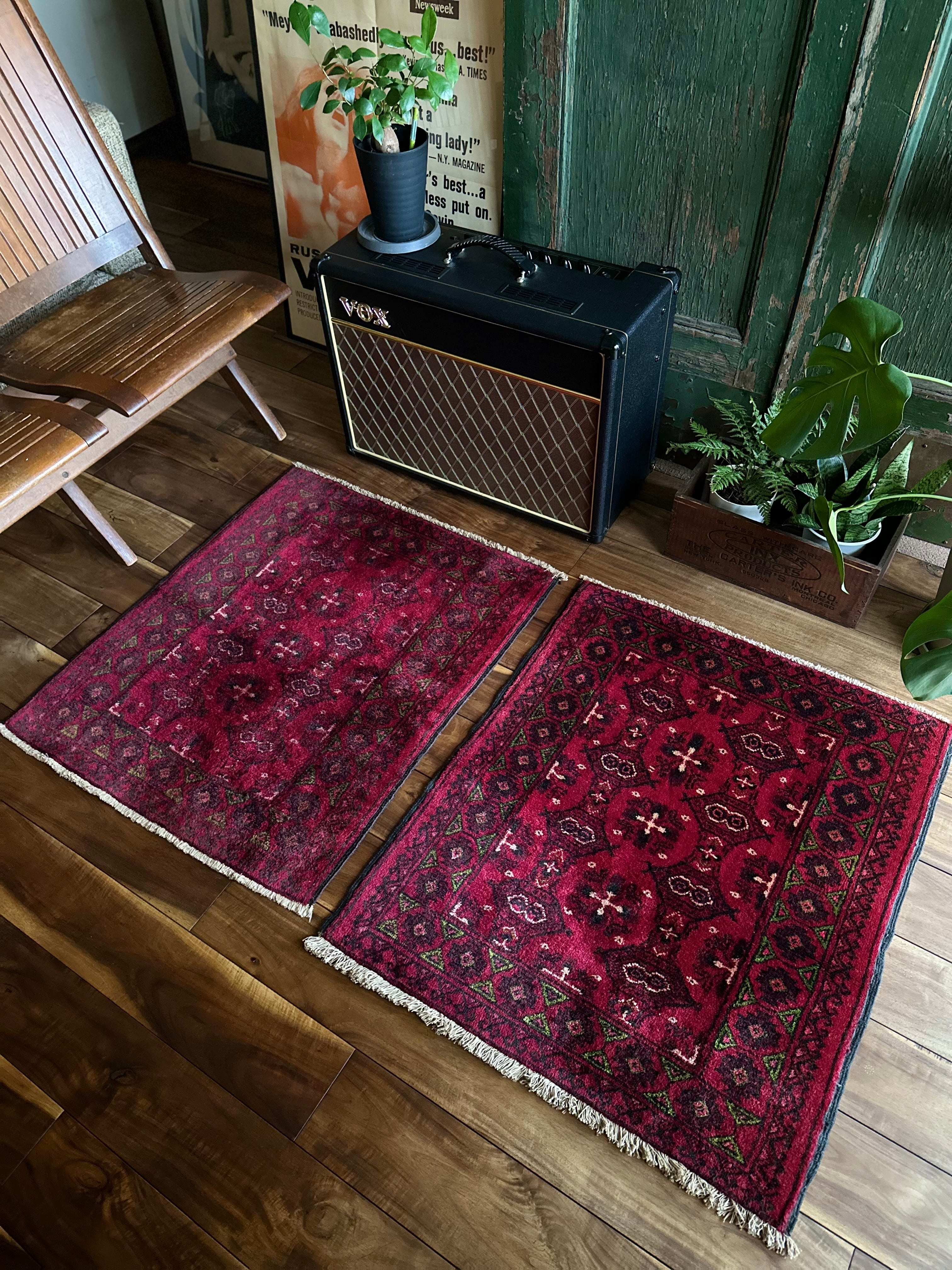 深紅な色合いに絵柄的にもバルーチ族と思わせる細かな織りで、しなやかな上に厚みもありますので、もちろん床敷きでも問題なくご使用いただけるでしょうか、ペットのちょっとしたくつろぎスペースとしても良いですね。