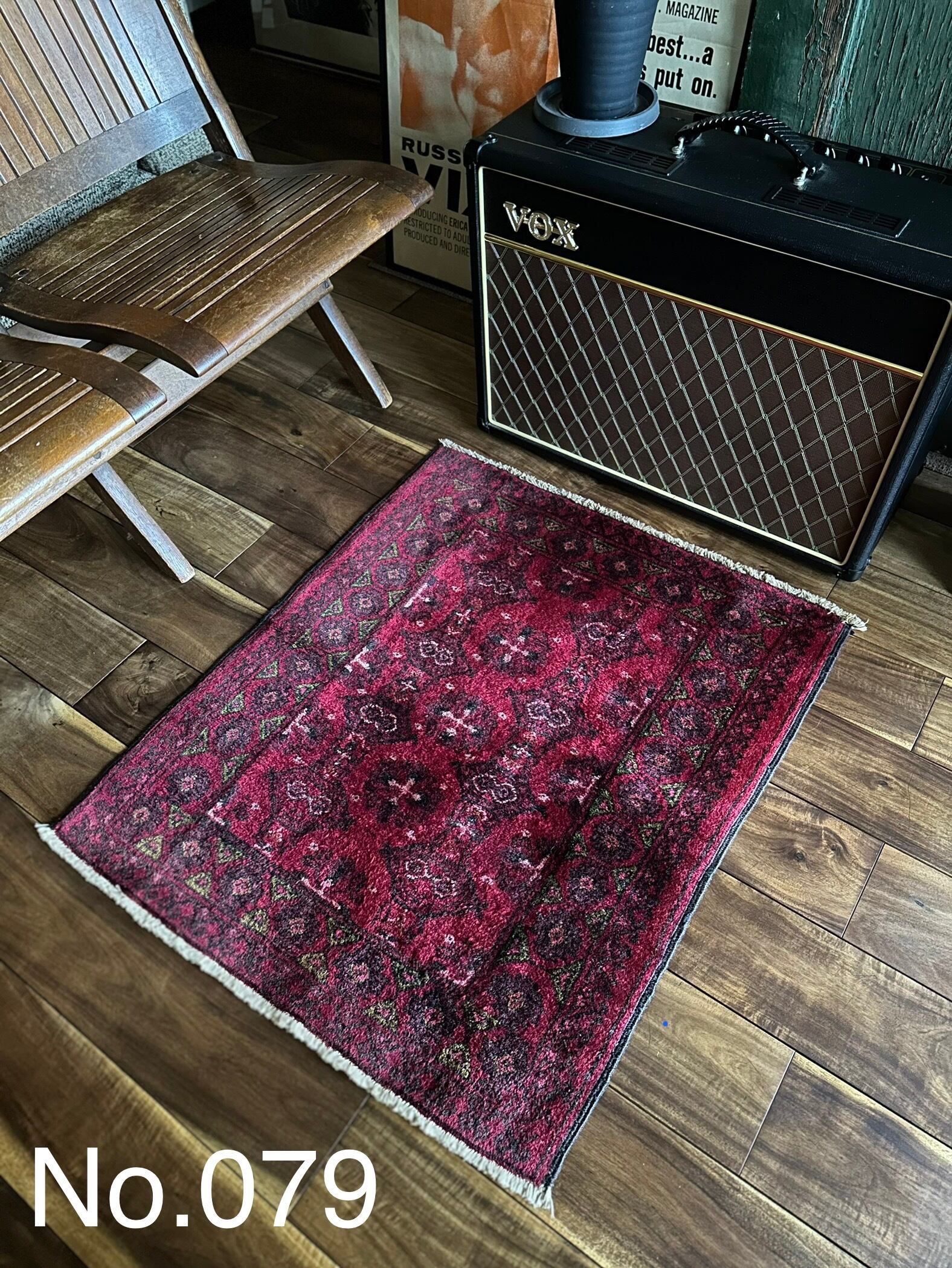 またラグそのものに関しては羊毛特有の匂いがあり手織りによる歪みや経年劣化、草木染めによる色ムラなどがありますが、それもまたトライバルラグの魅力かとご理解ください。