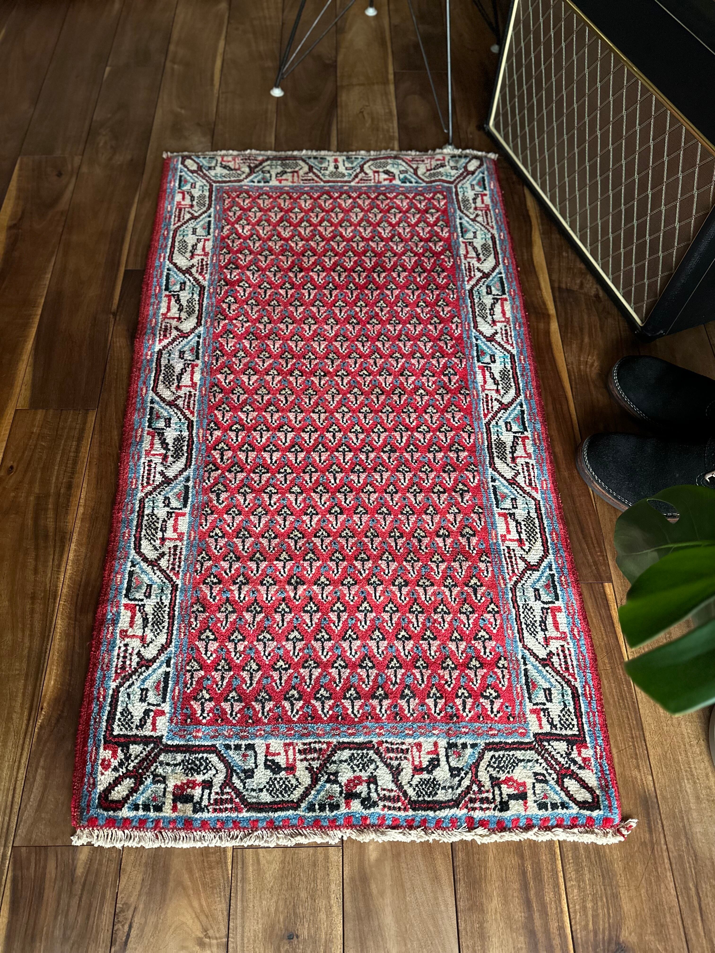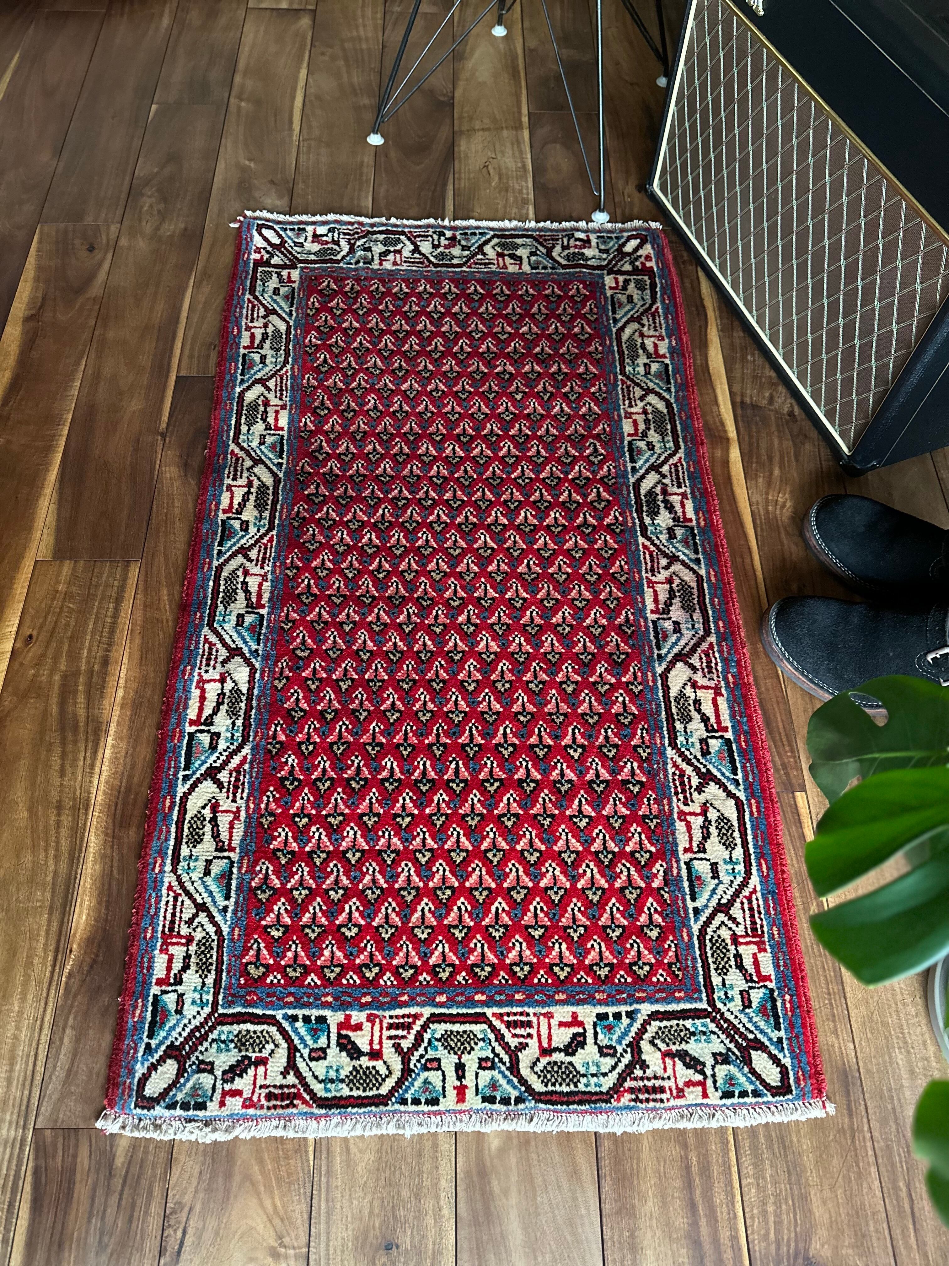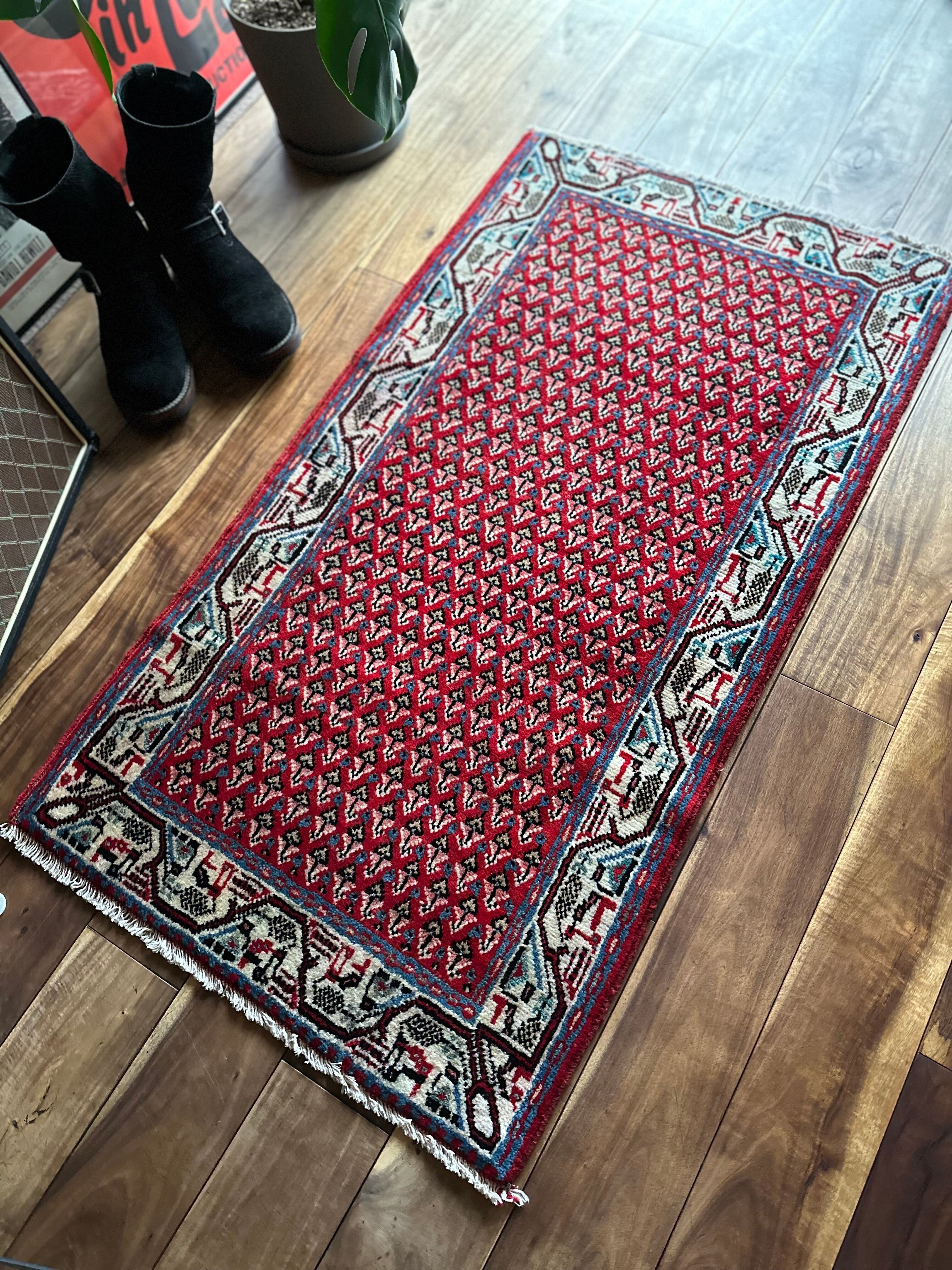 経年としては20〜30年ほど前のヴィンテージラグになり、マンションの玄関としては少し大きめですが、個人的には写真のようにギターアンプの前に敷いて個人レッスンする様が浮かんでくる弾き語りサイズでしょうか。特に目立つリペアや汚れはありませんし、なんと言ってもこの気持ちの良いパイルの密度が素足には堪りませんと、全体的な雰囲気は下記URLのInstagramにて最後の動画(室内での自然光にて撮影)を参照して下さい。
