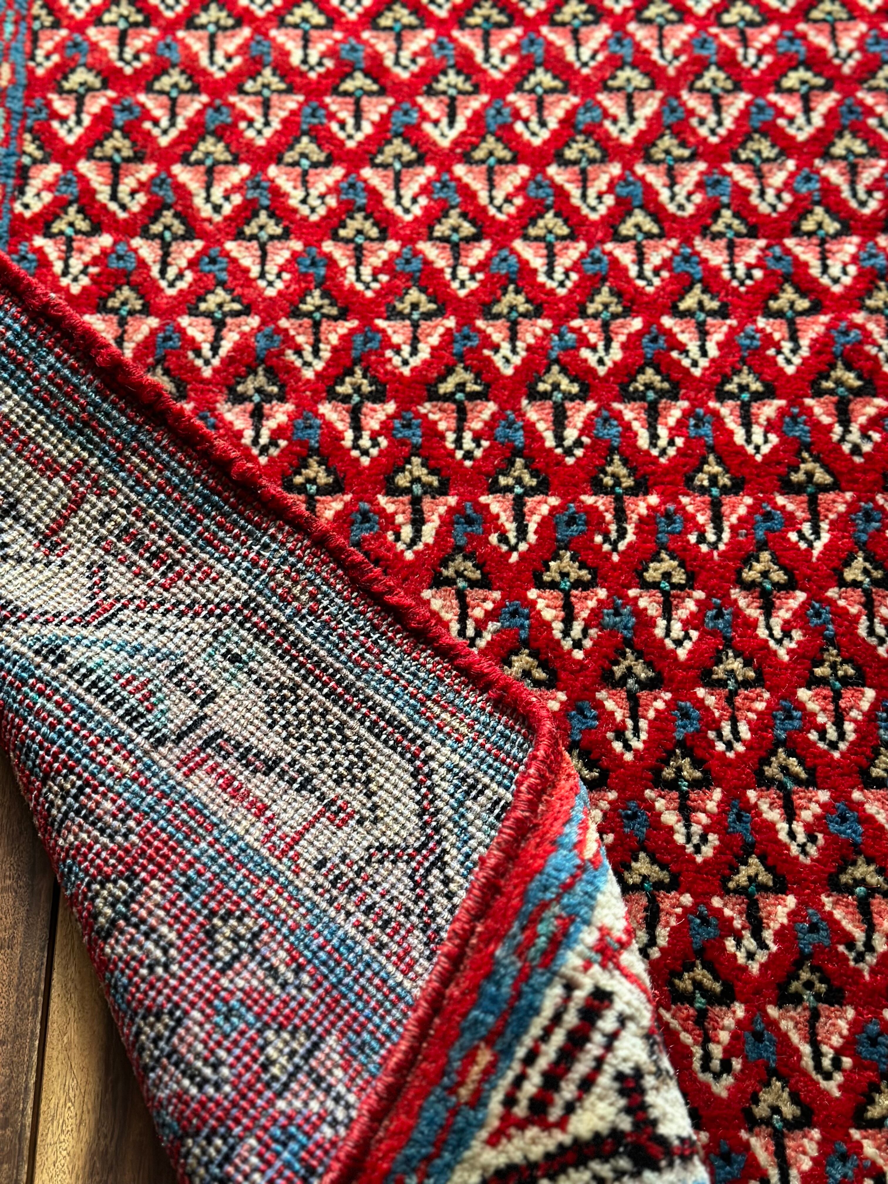 ペルシャ絨毯の集積地として古来から貿易の拠点とされたハマダン近郊にあるアラクという村で手織りされたヴィレッジラグになります。