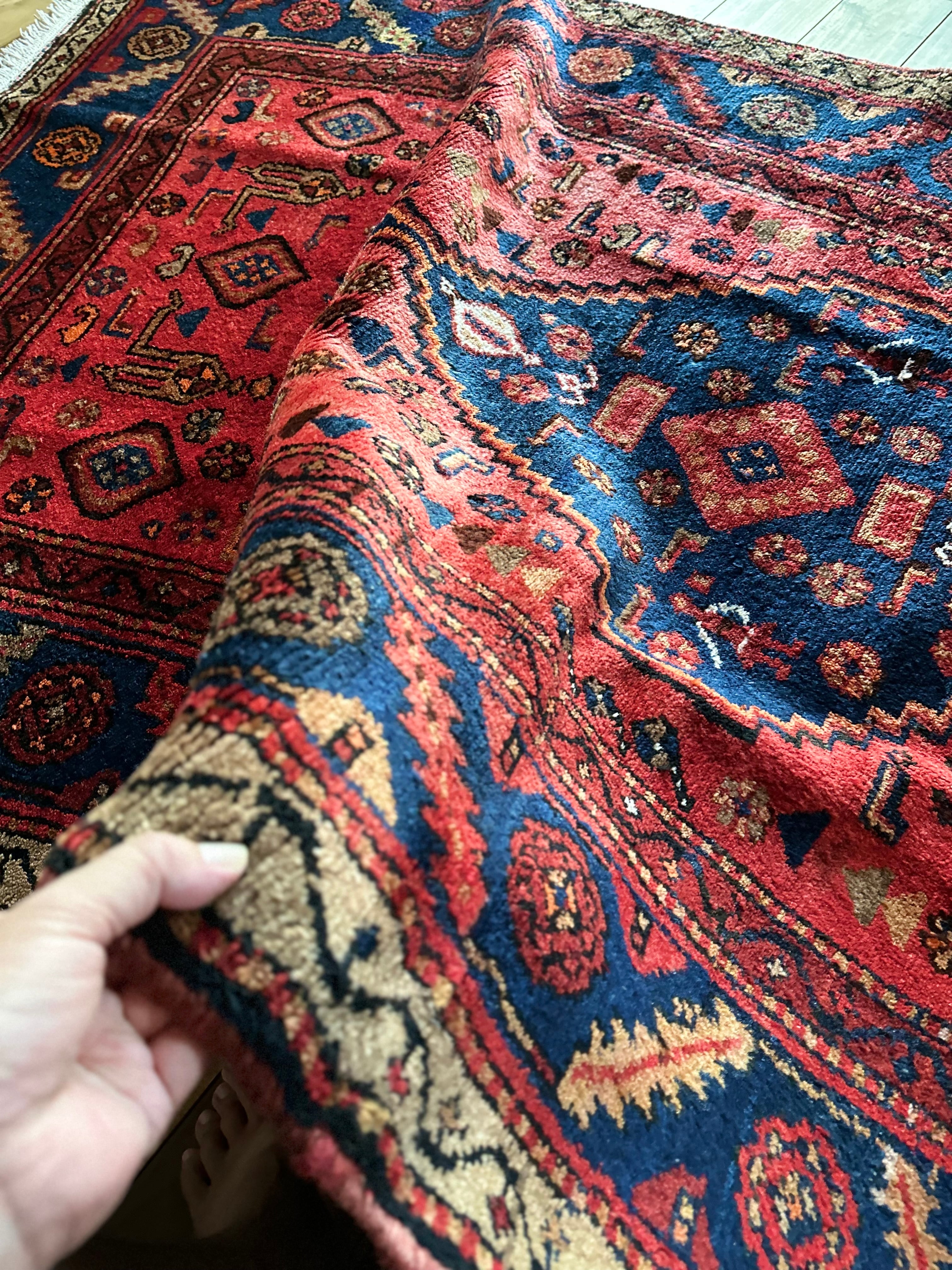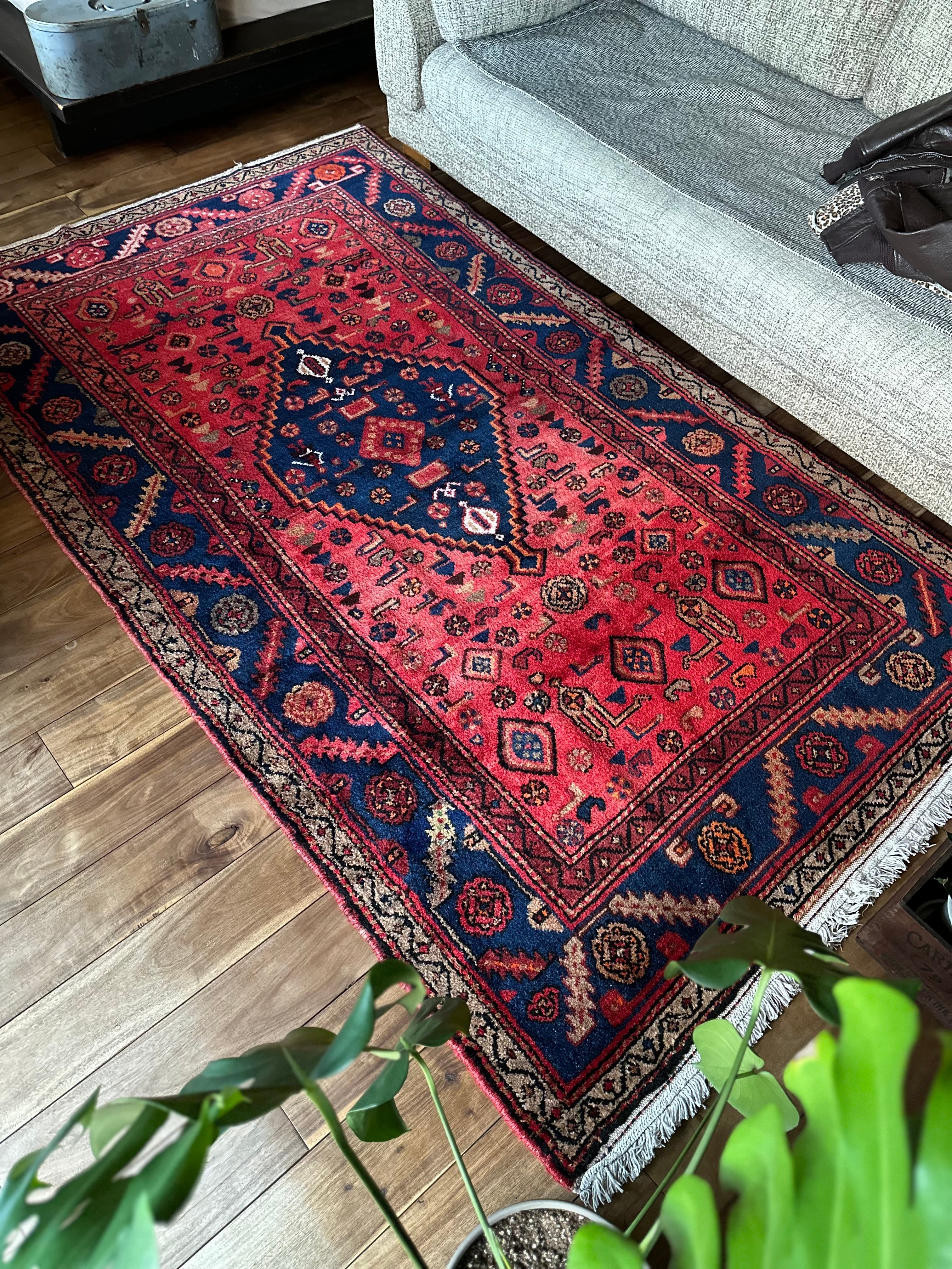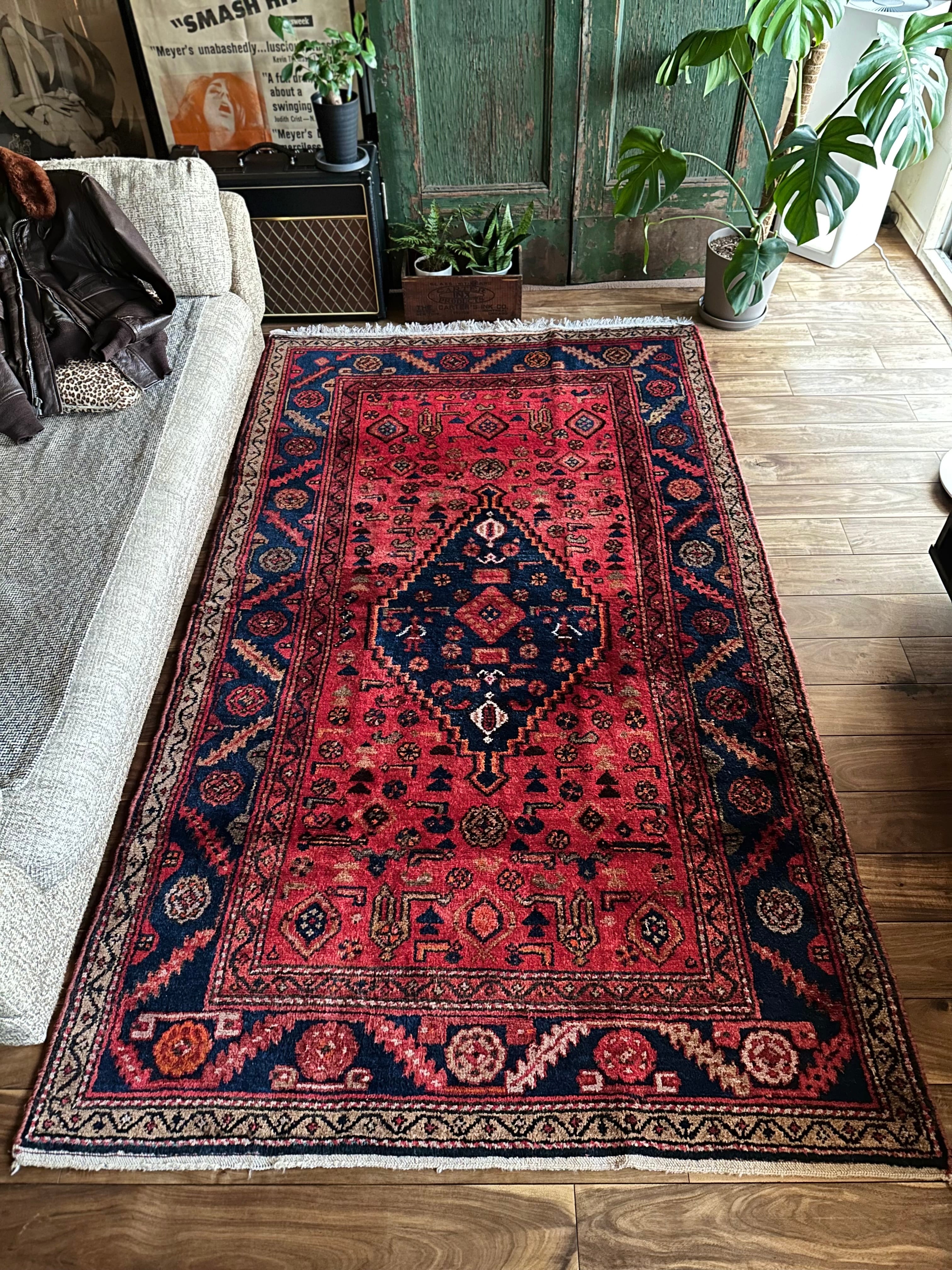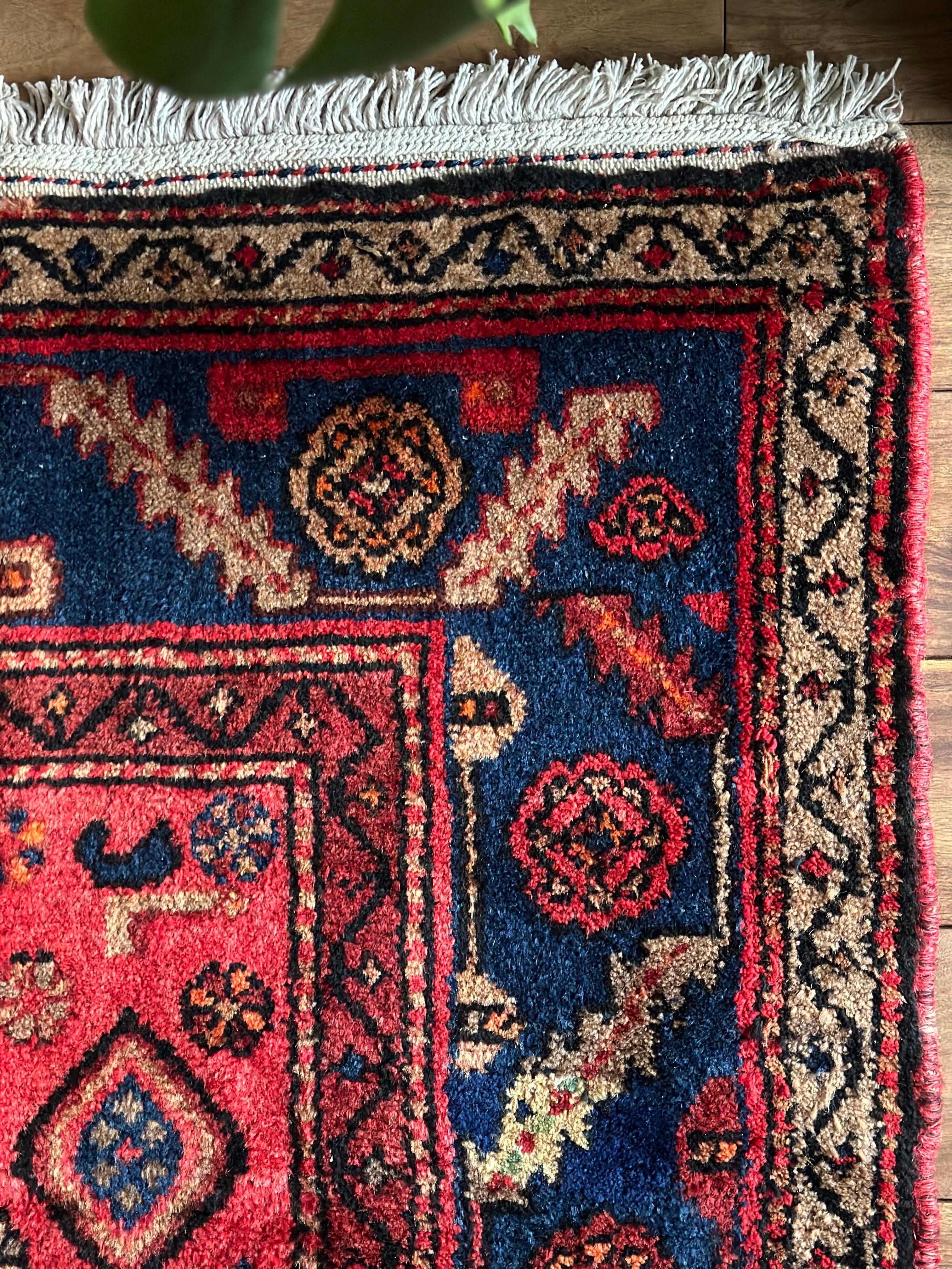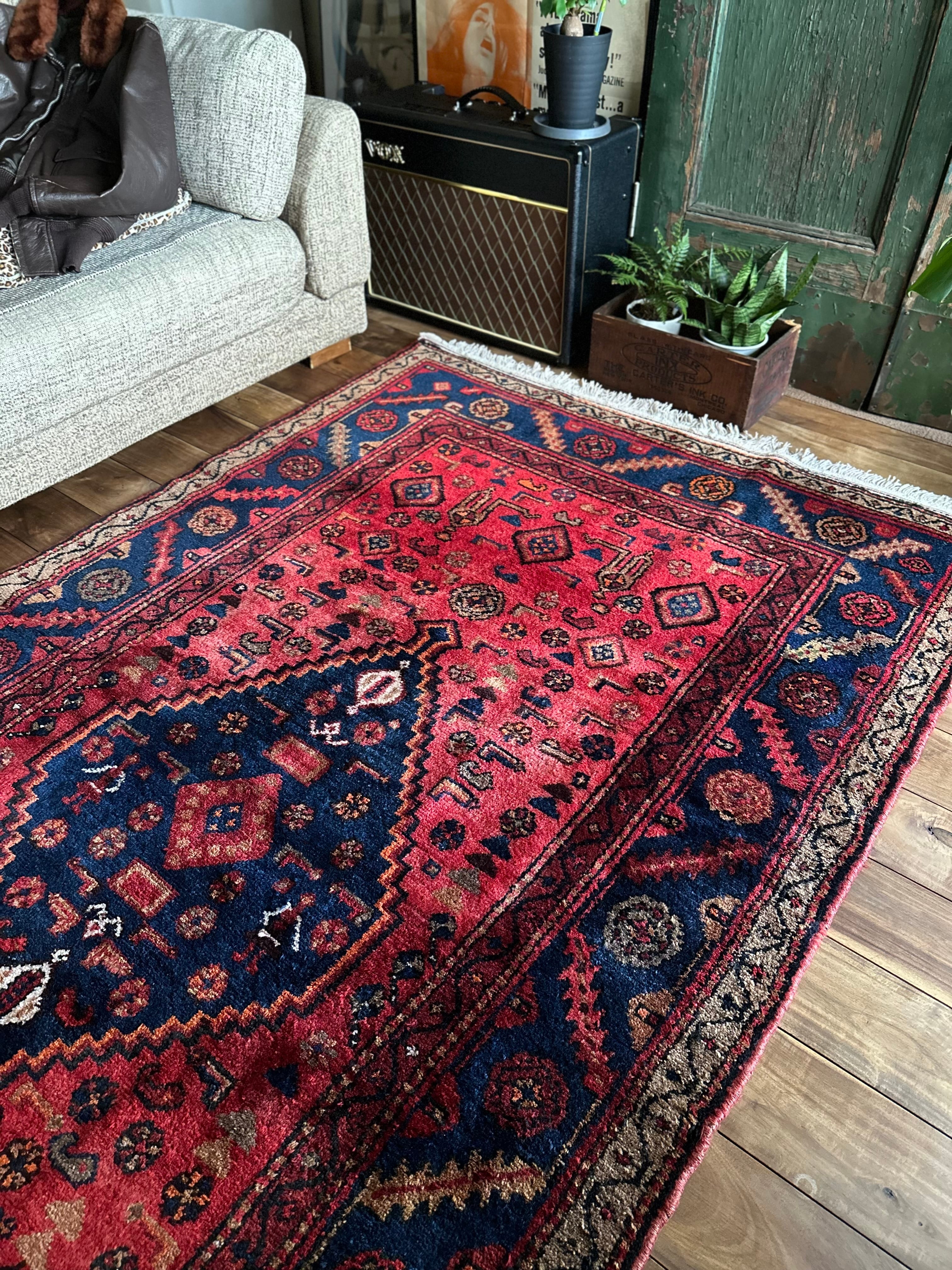 ペルシャ絨毯の中でも比較的に手に取りやすいハマダン産のヴィンテージラグになります。