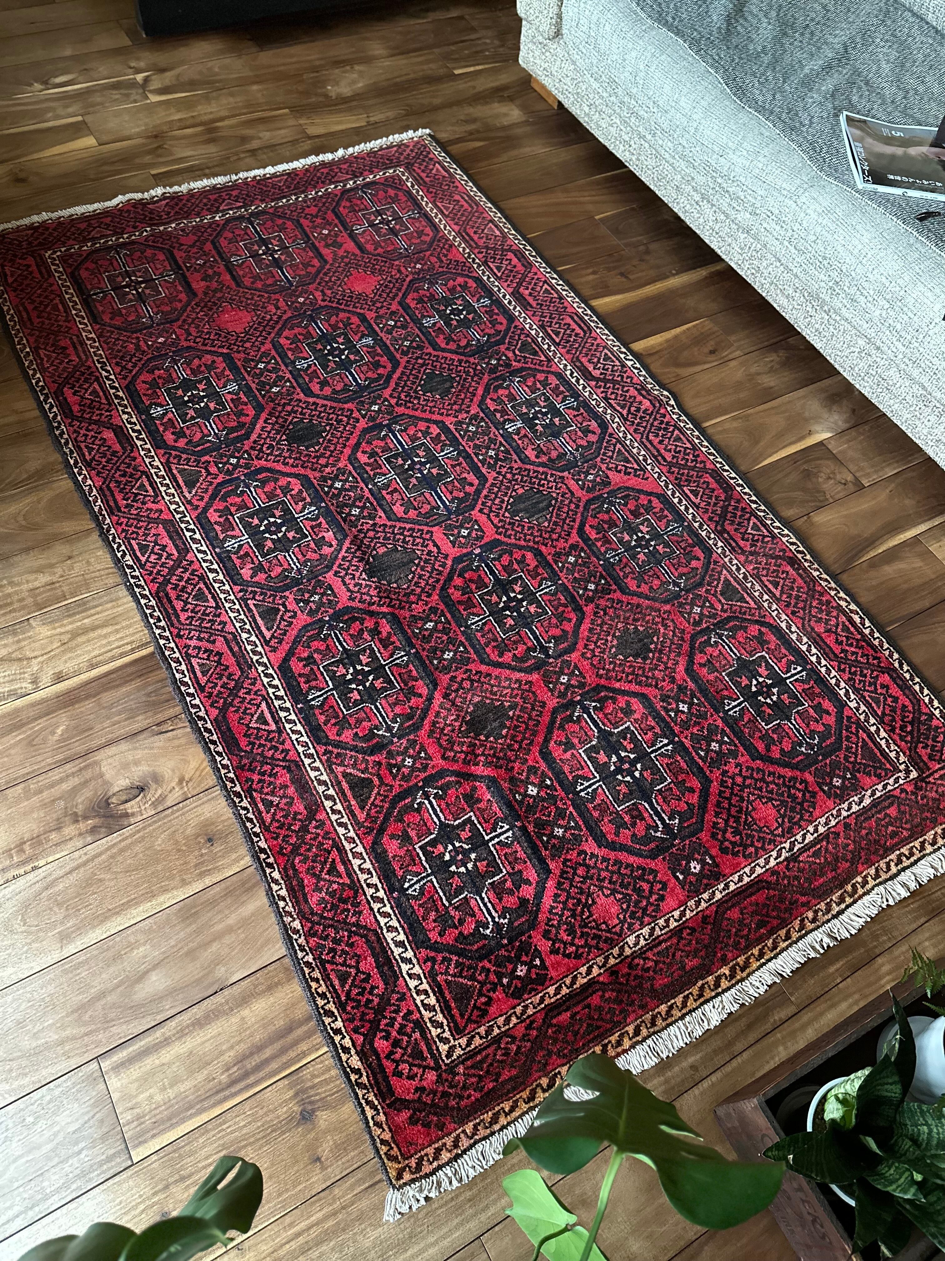 また大きさ的にもバルーチによくあるザロニム・サイズで、ソファ前やベッドサイドに使えるアクセントラグと、全体的な雰囲気は下記URLのInstagramにて最後の動画(室内での自然光にて撮影)を参照して下さい。
