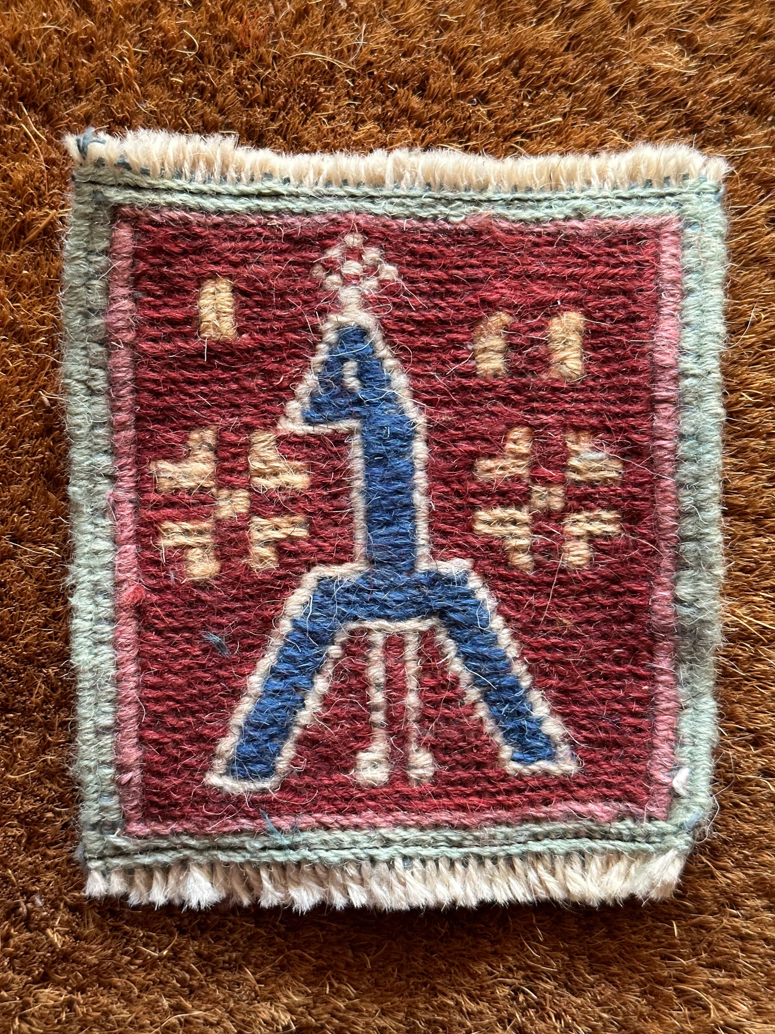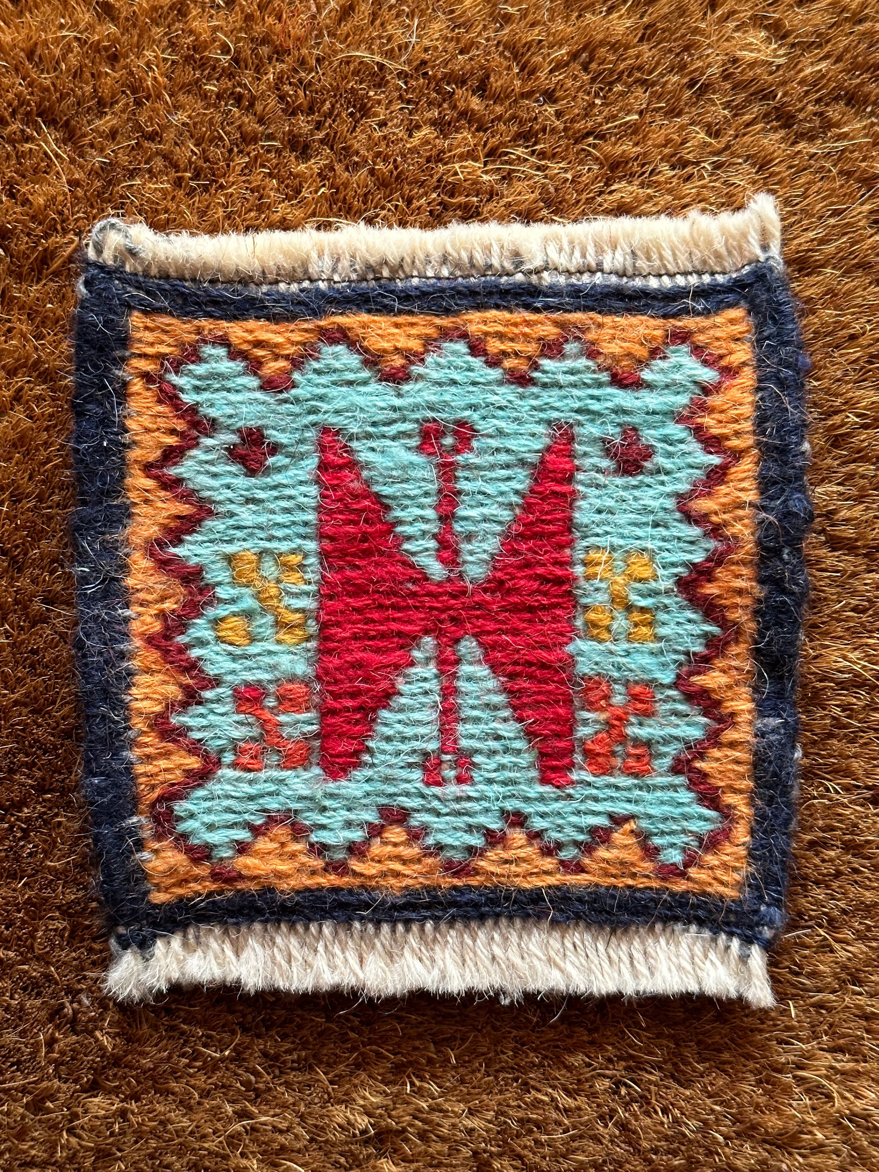 イラン北西部はアゼルバイジャン地方にあるアルダビールの村周辺で手織りされたスマック織りヴァルニキリムの新品コースターになります。