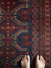 またラグそのものに関しては羊毛特有の匂いがあり、手織りならではの歪みに水洗いクリーニングによる縮み、また草木染めによる経年劣化の色ムラなどがありますが、それもまたヴィンテージラグの魅力かとご理解ください。