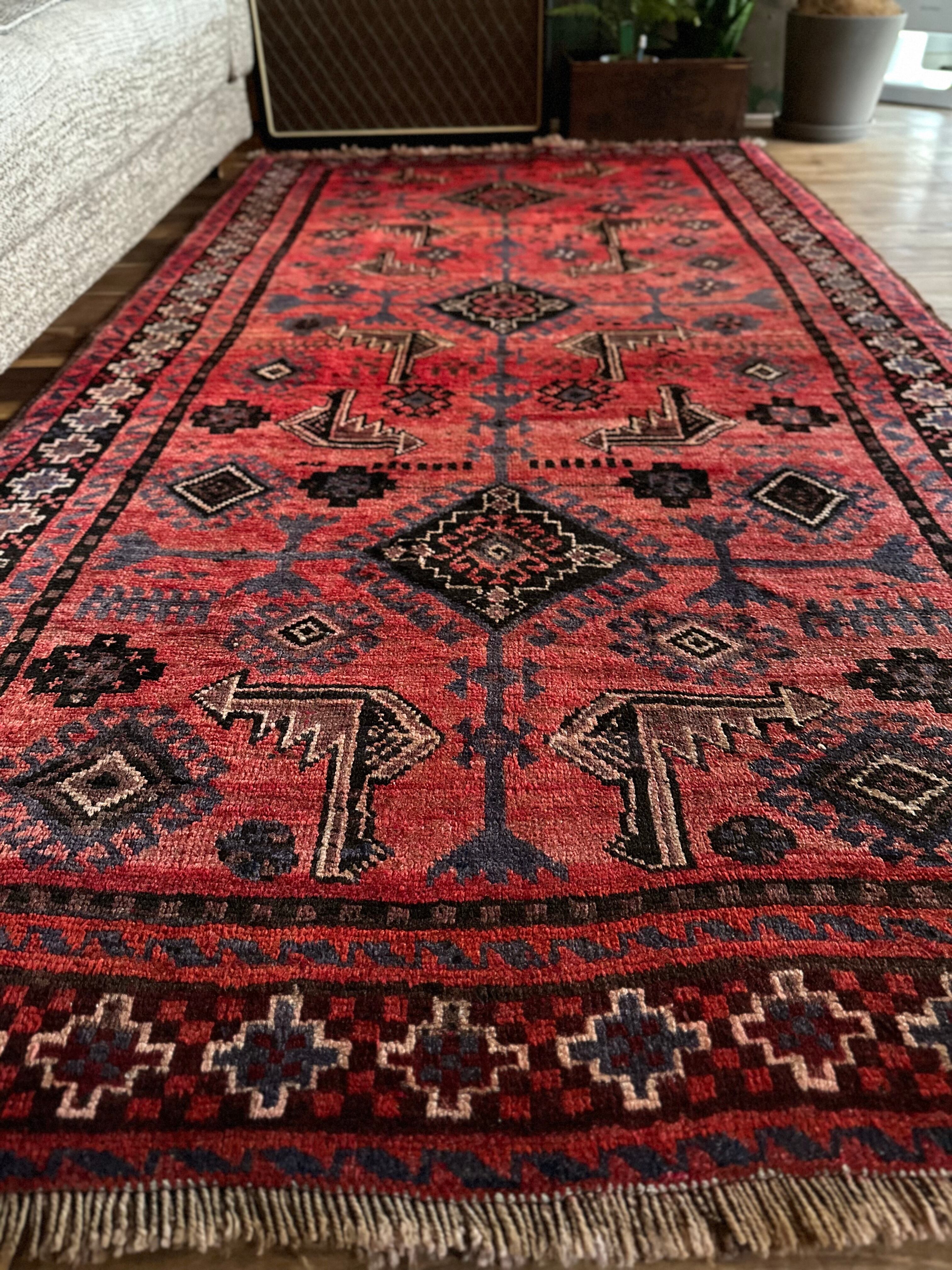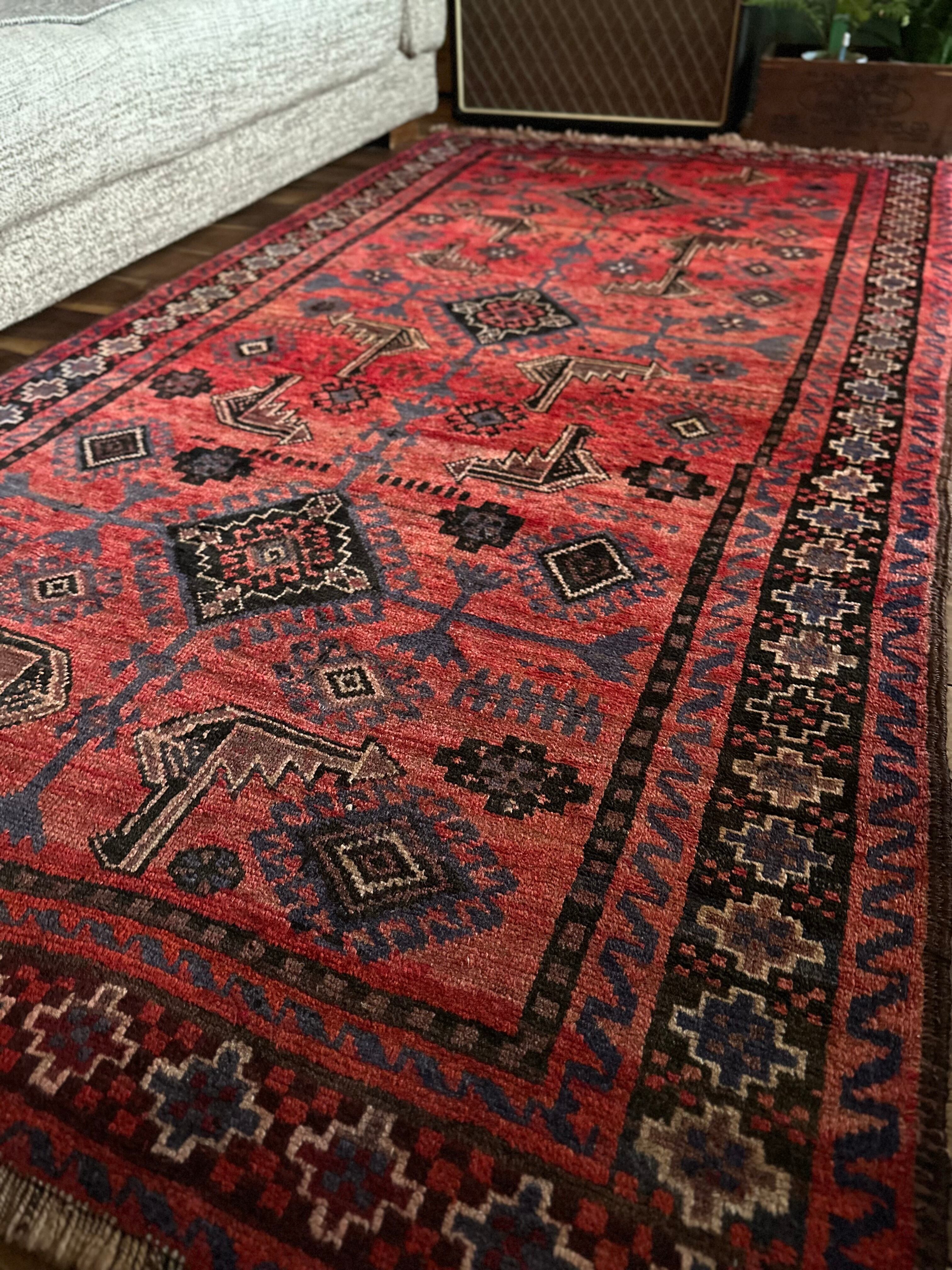 モチーフとして雄牛を表現したフックドメダリオンが随所にあしらわれていて力強さを感じる男前な1枚でしょうか。オールドならではのウールの経糸がヴィンテージラグ好きには堪りません。