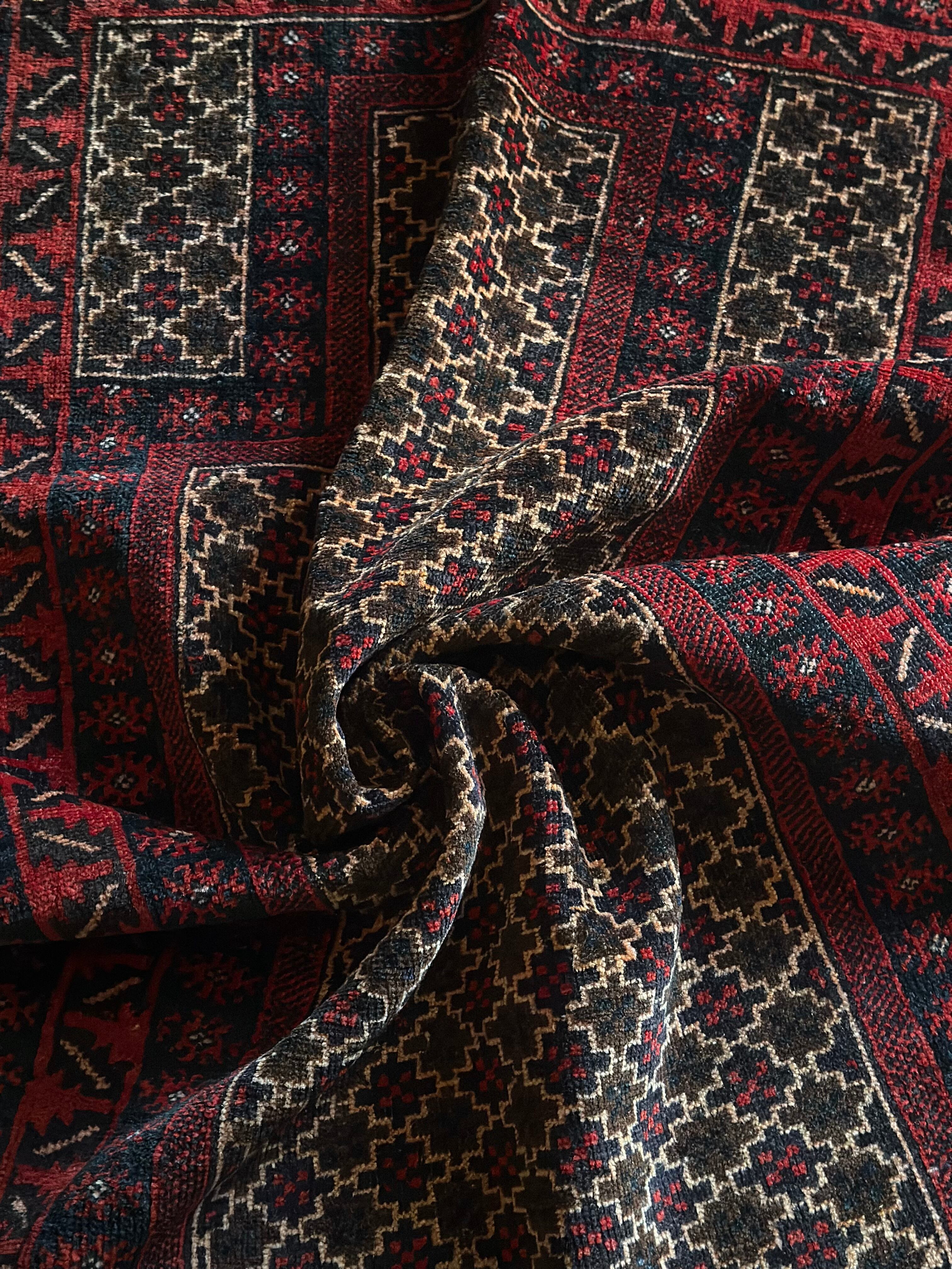 他の部族でも同じような趣向で織られたトライバルラグの一種ですが、常に持ち歩くことを考えられていて、通常のパイルラグよりも薄くて軽いというのが特徴的です。