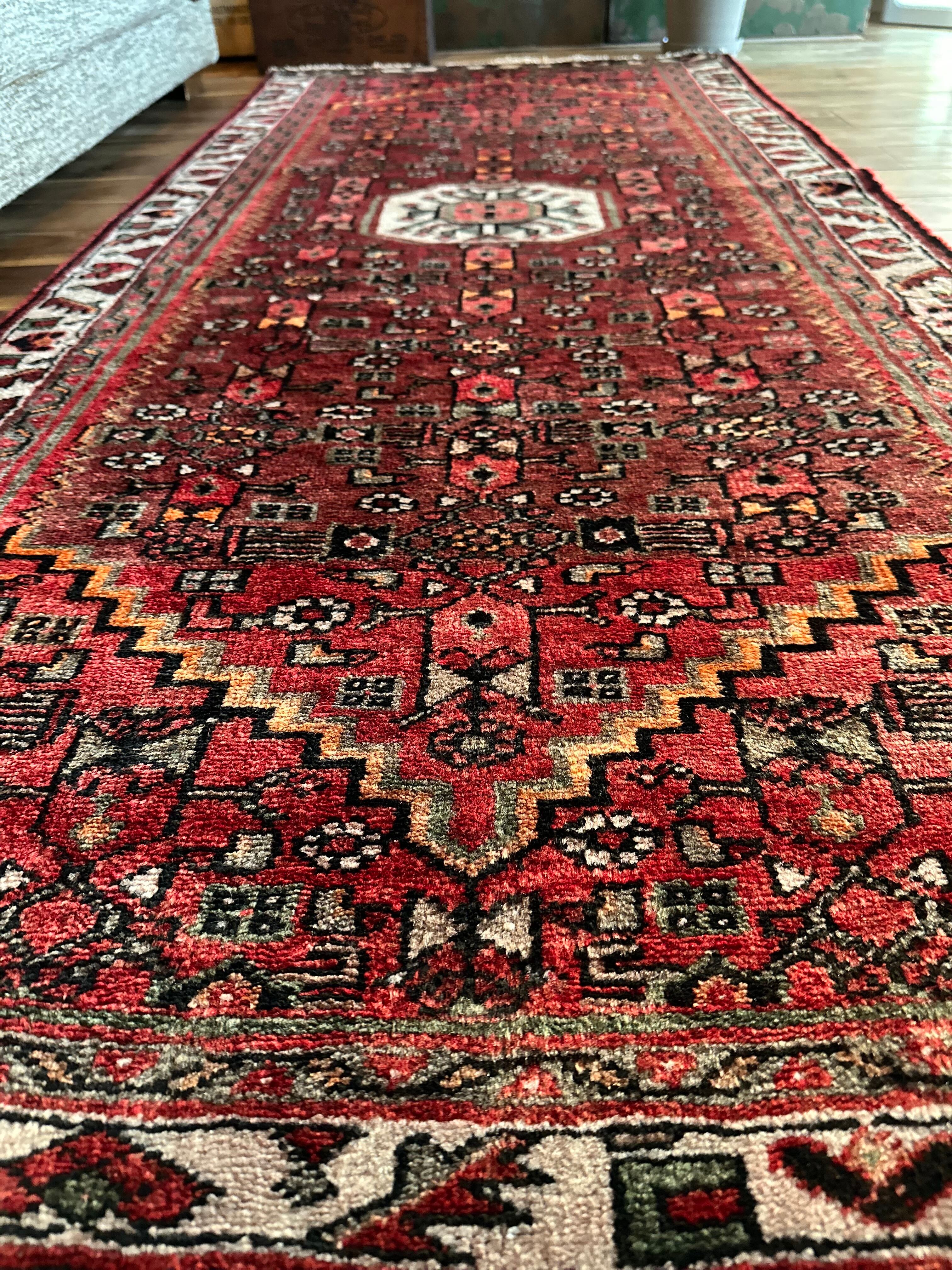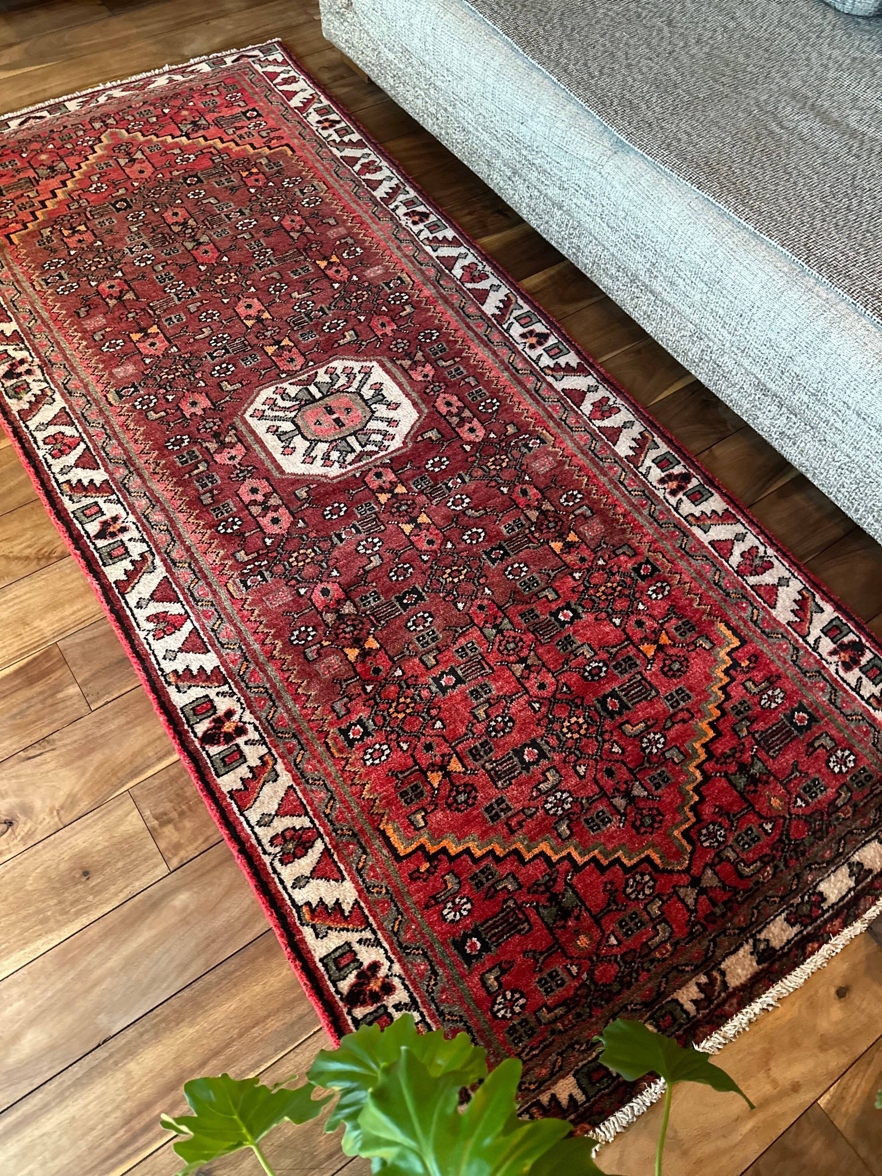 大きさ的には長さがありますのでランナーっぽく広めの廊下でも差し支えありませんが、リビングのソファ前でもしっくりとくるでしょうか。ハマダンとしてはパイルの毛足が長めなのがおすすめです。