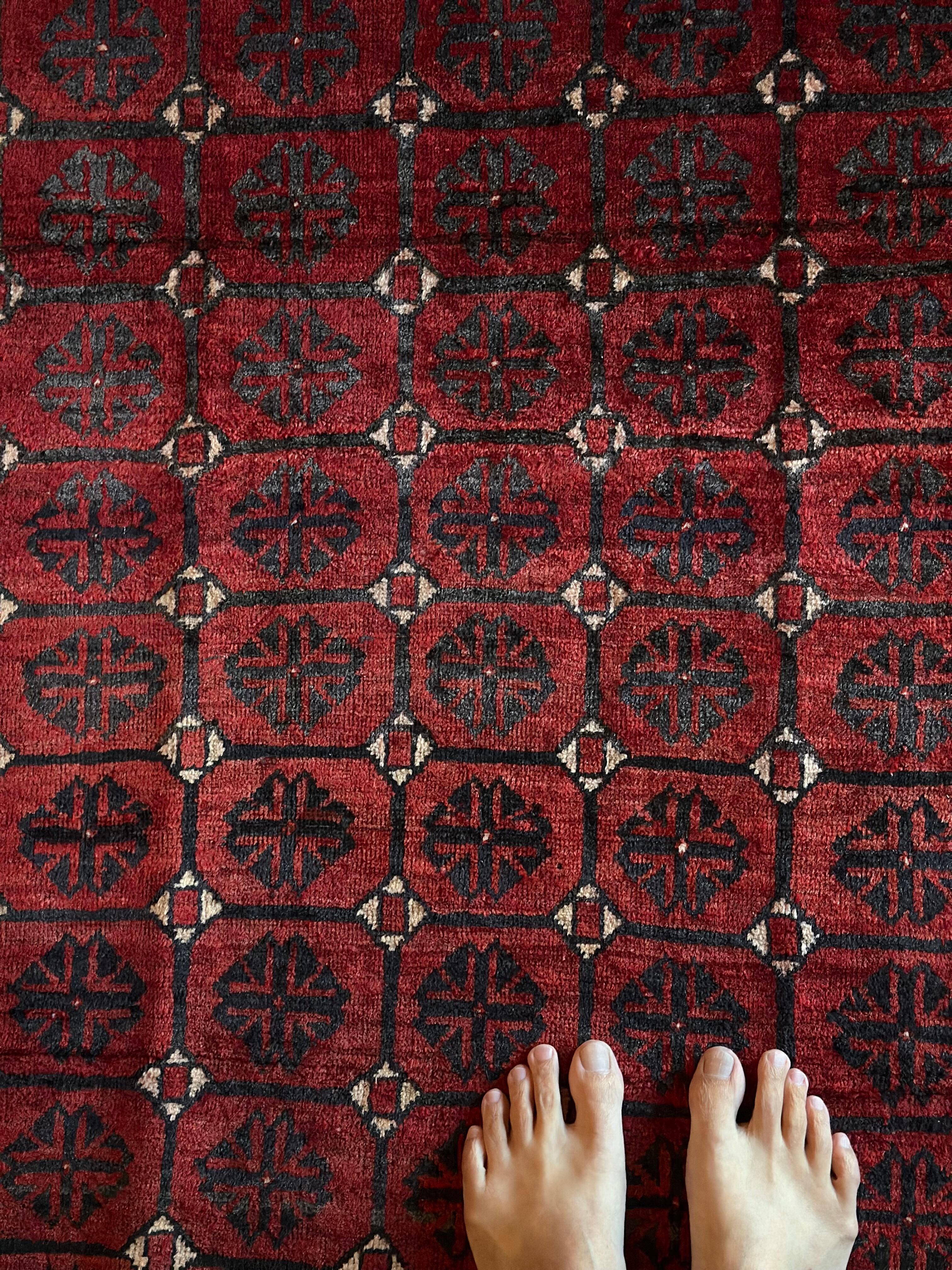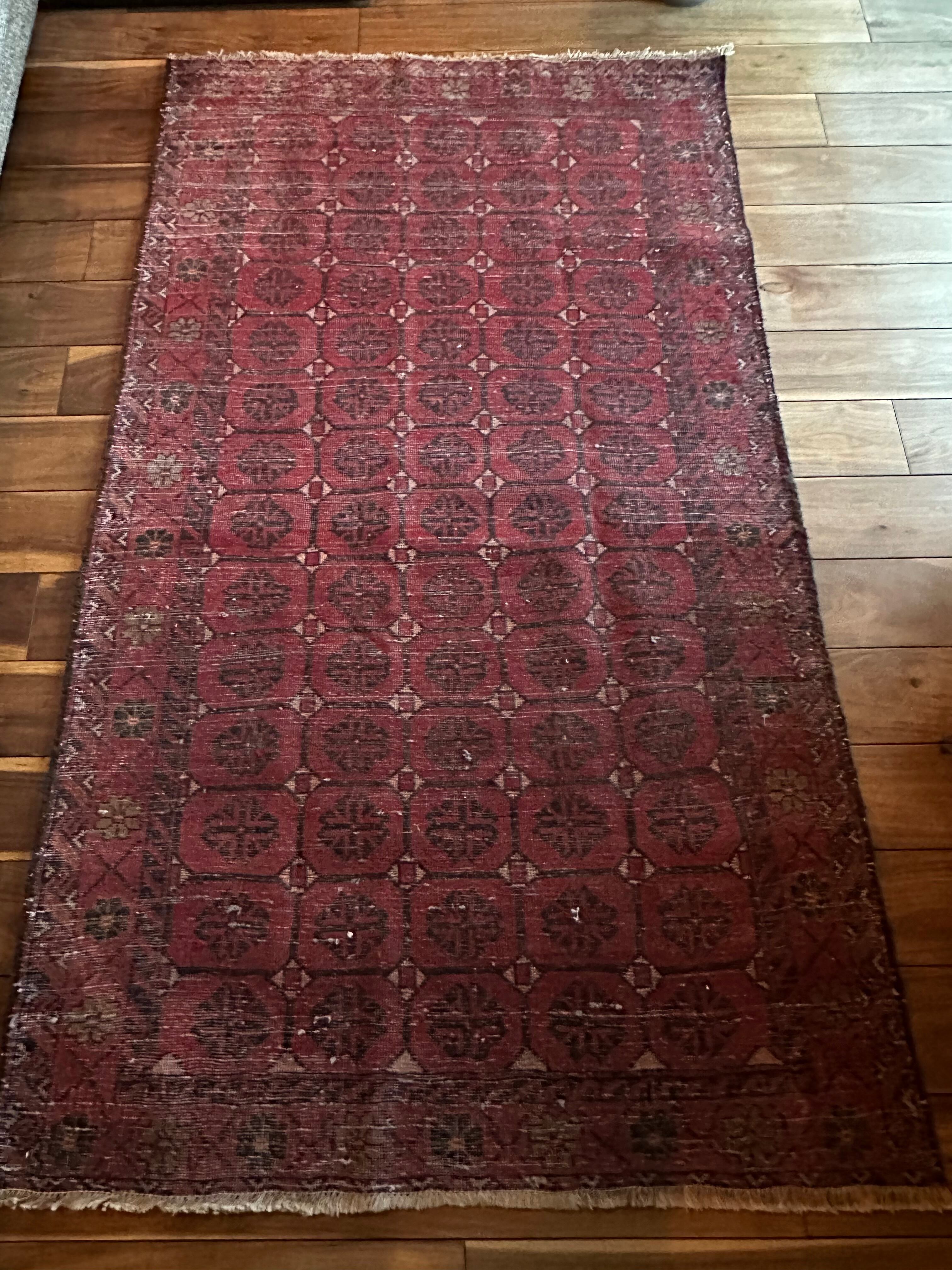 経年劣化しては50年くらいと思しきこちらは、それなりの使用感に経年劣化として細かなパイル抜けがありますが、それがヴィンテージラグの雰囲気かと。それら以外に特に目立つダメージはありませんが、所々に細かなリペアが見受けられますので、全体的な雰囲気は下記URLの Instagramにて最後の動画(室内での自然光にて撮影)を参照して下さい。