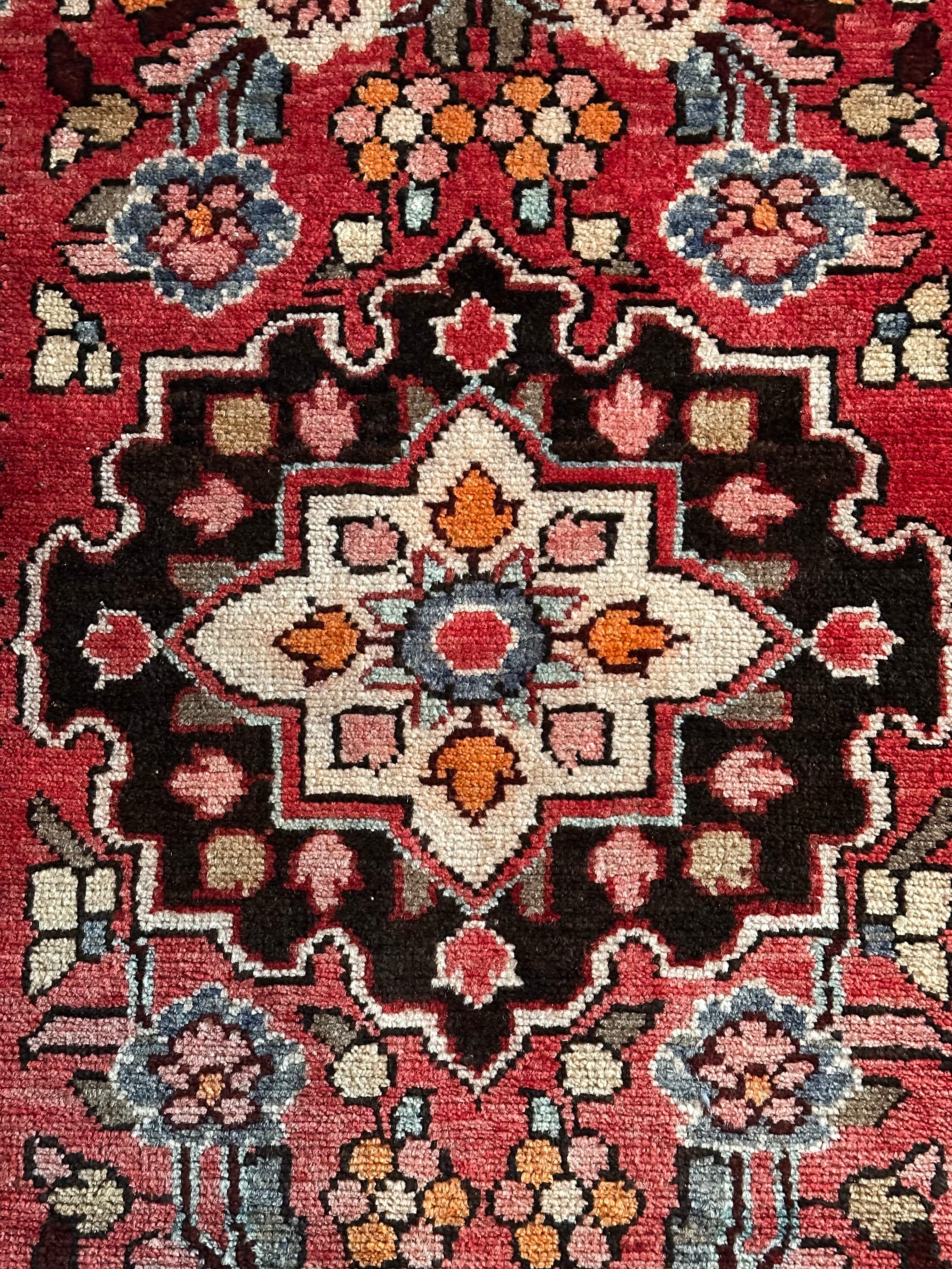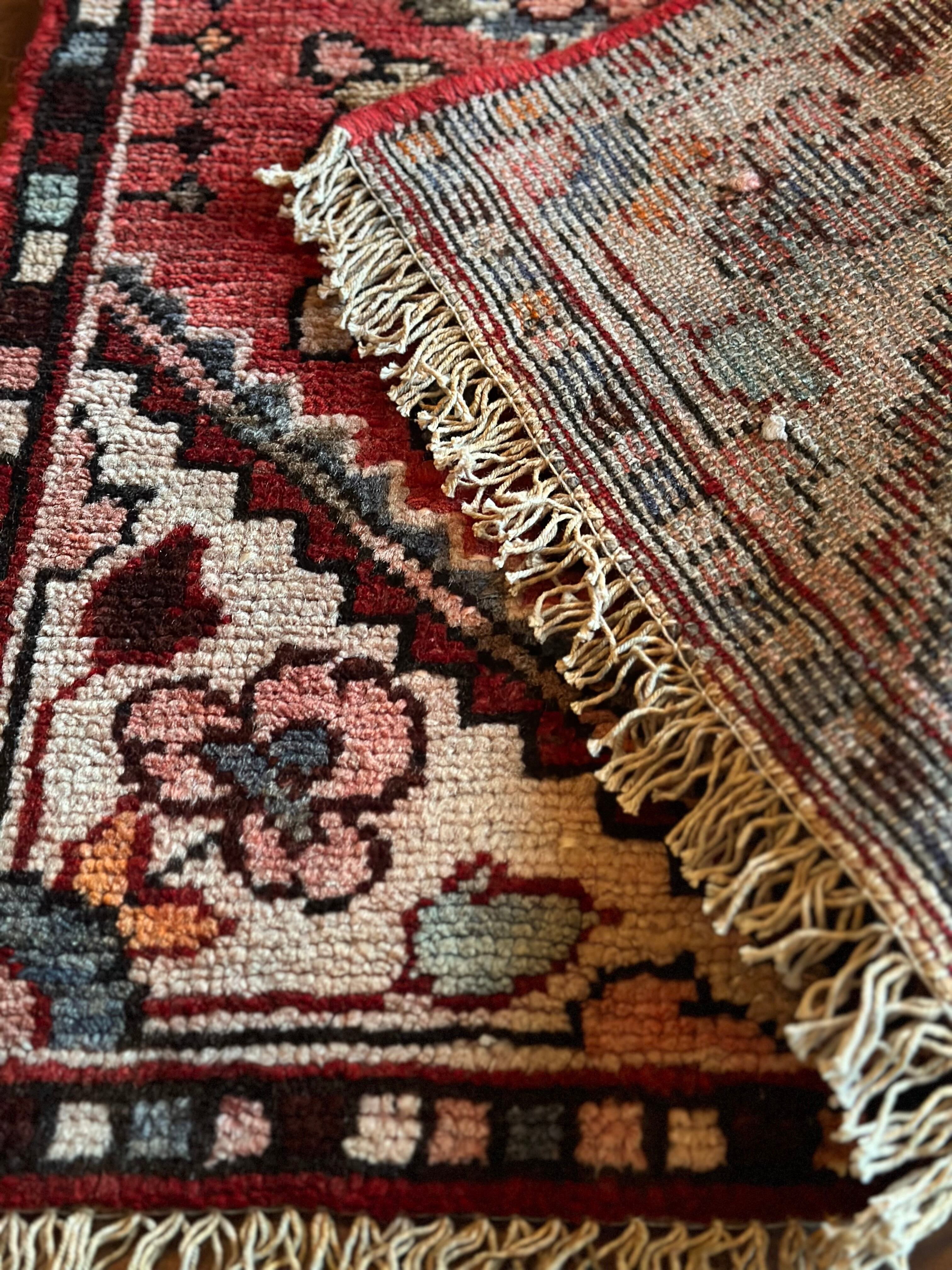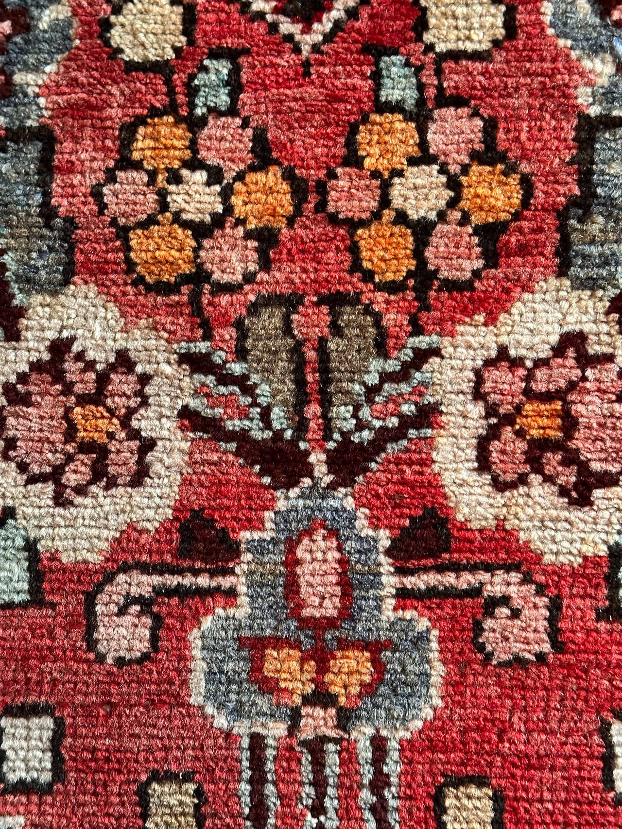 経年としては40年くらいと思しきこちらはそれなりの使用感はありますが、特に目立つダメージもなくパイルの毛足はハマダン特有の短めになります。また気になるリペアは見当たりませんので、全体的な雰囲気は下記URLの Instagramにて最後の動画(室内での自然光にて撮影)を参照して下さい。