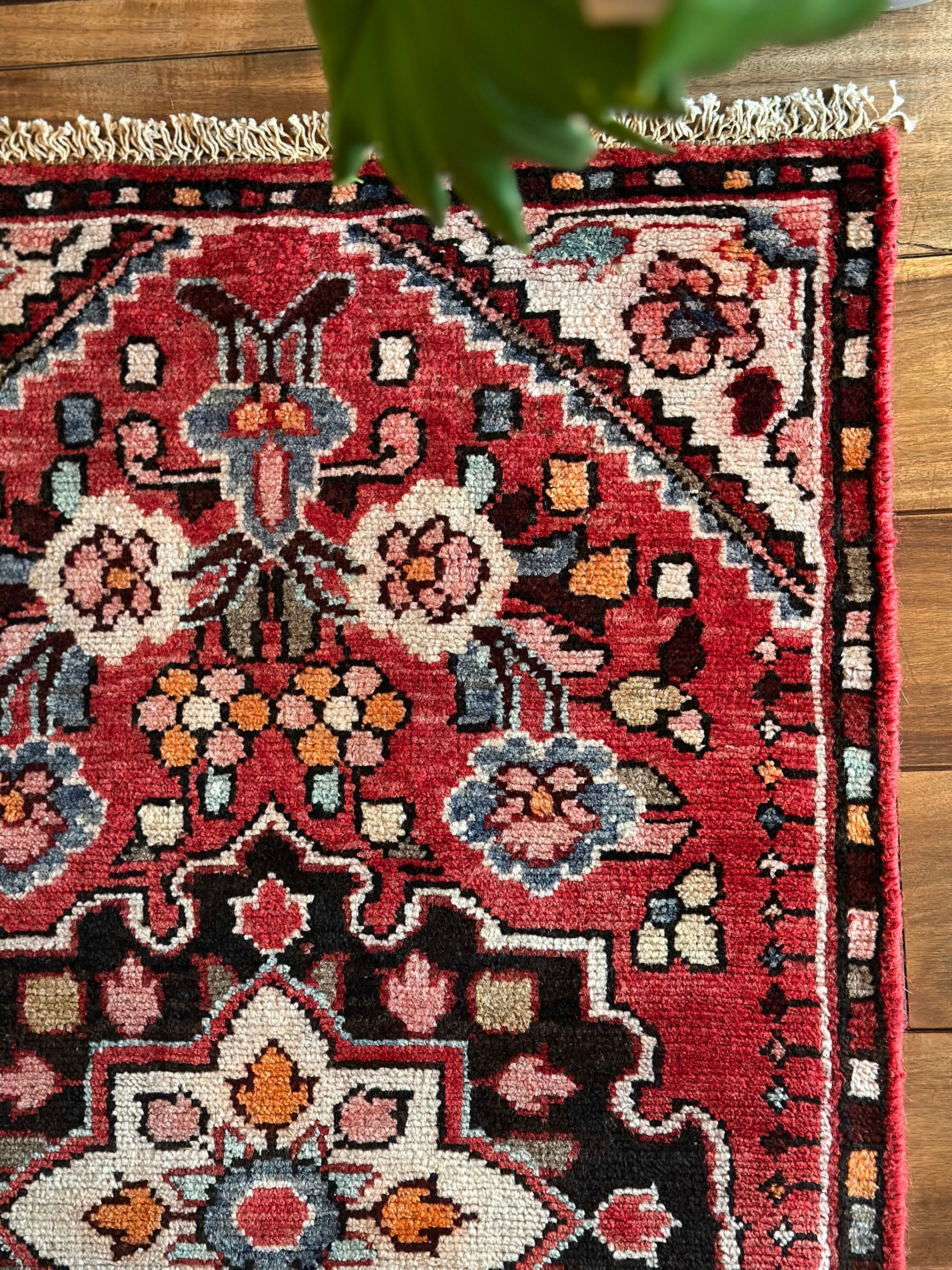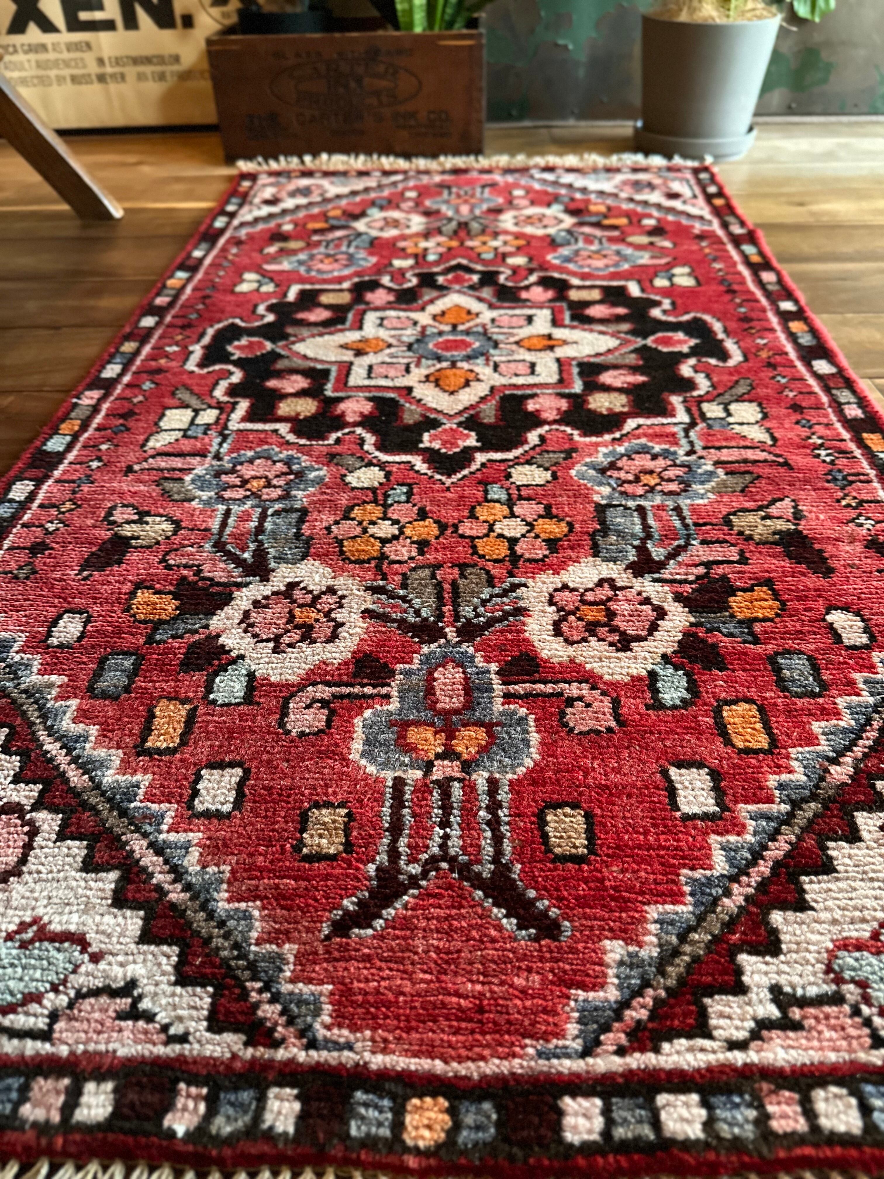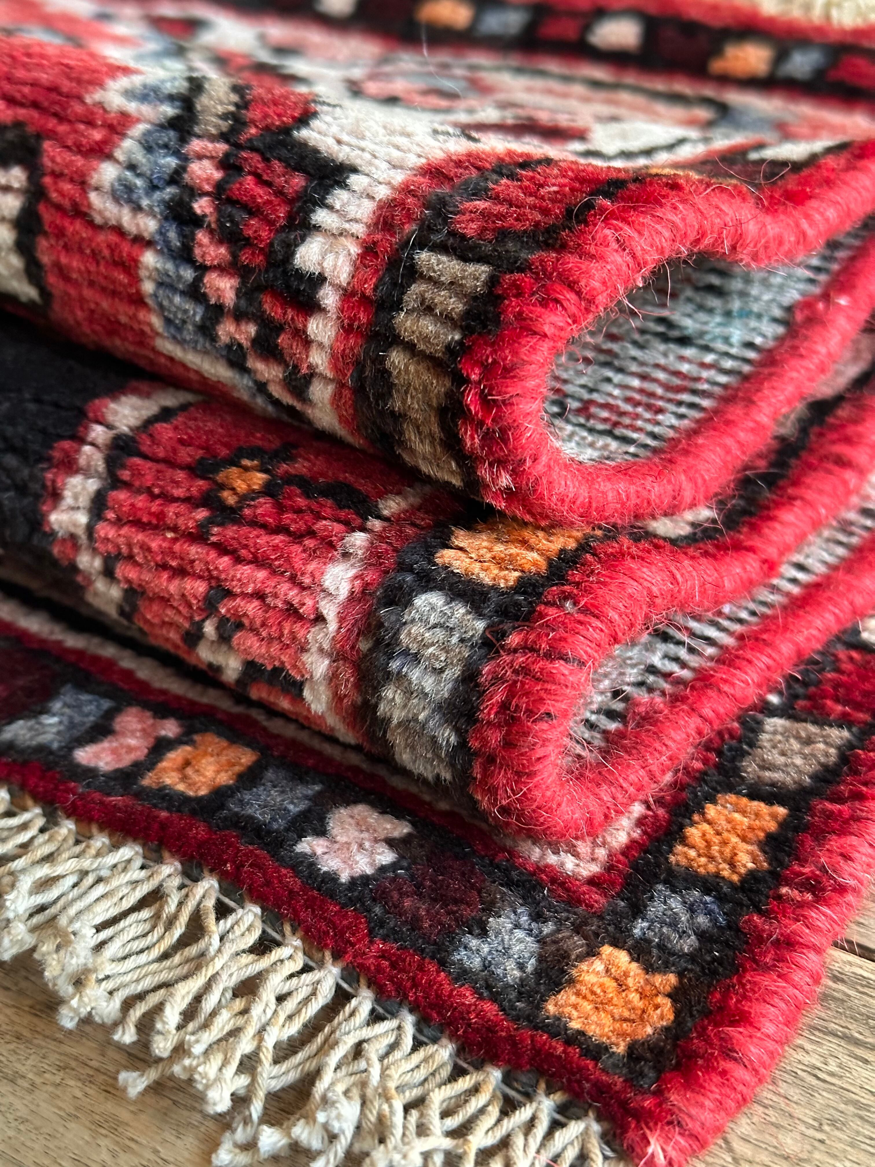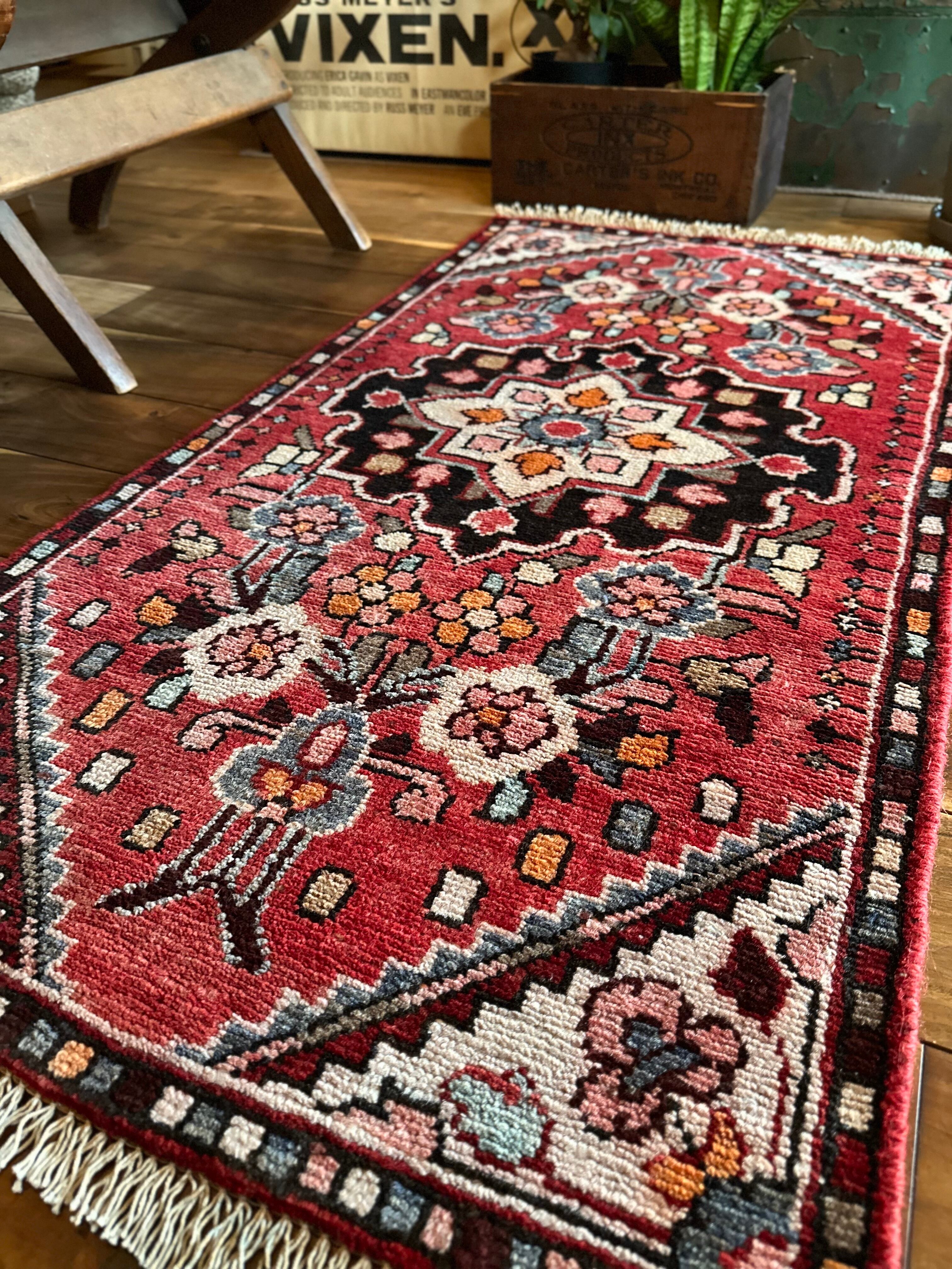 経年としては40年くらいと思しきこちらはそれなりの使用感はありますが、特に目立つダメージもなくパイルの毛足はハマダン特有の短めになります。また気になるリペアは見当たりませんので、全体的な雰囲気は下記URLの Instagramにて最後の動画(室内での自然光にて撮影)を参照して下さい。