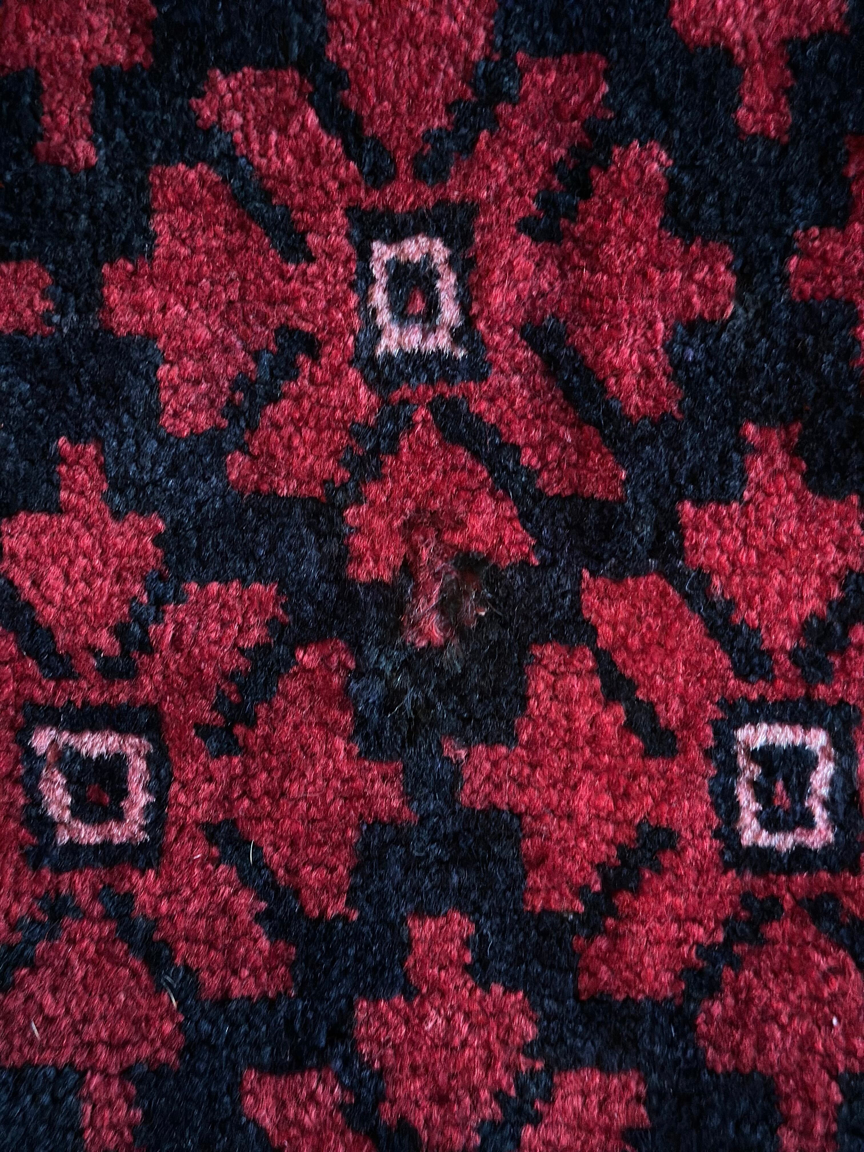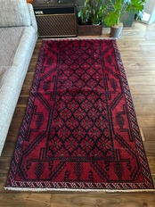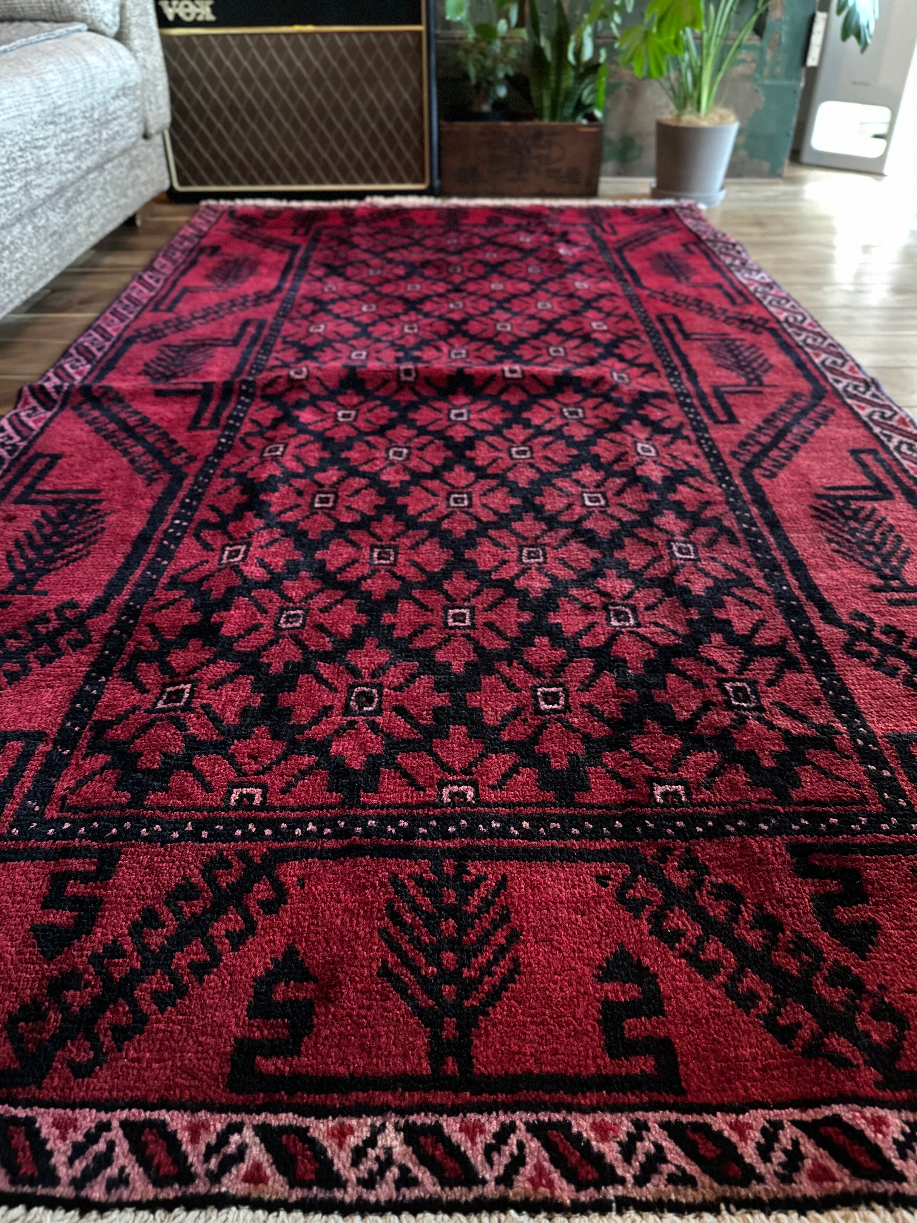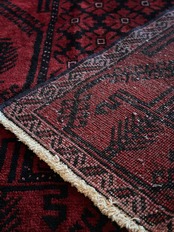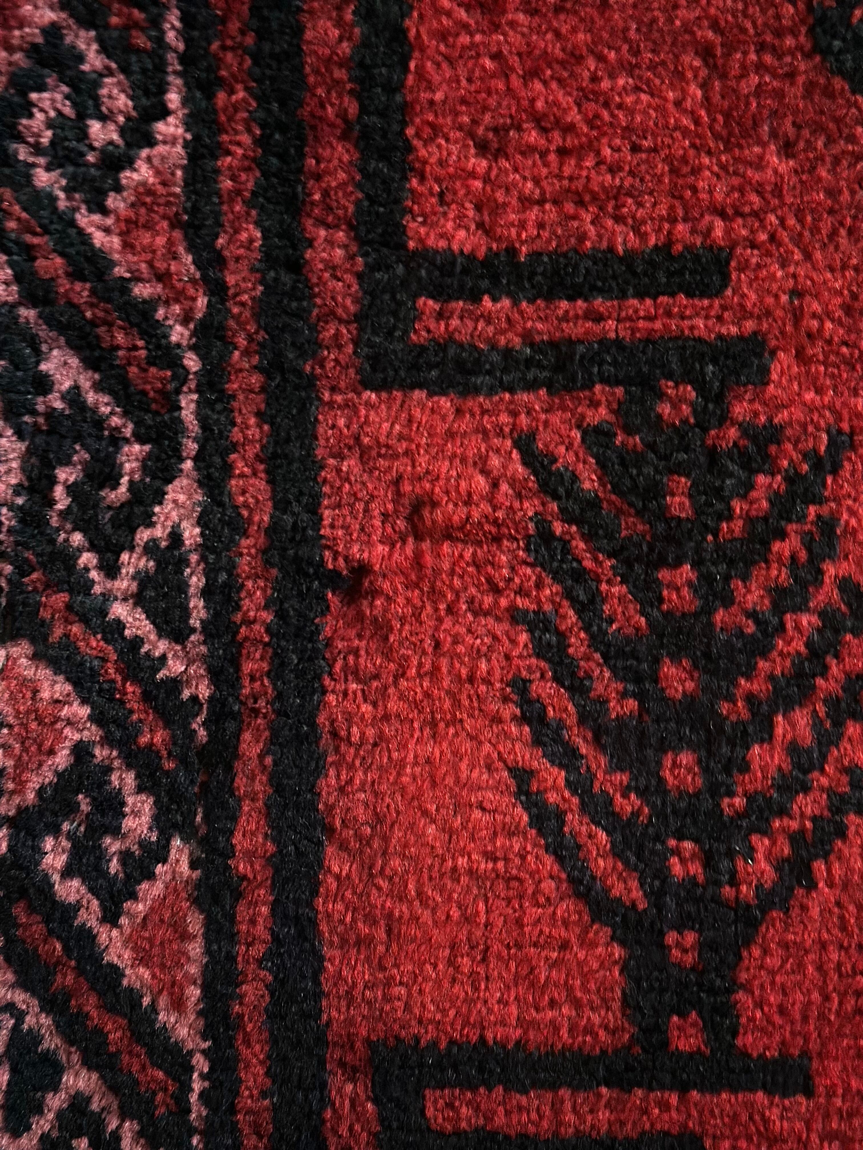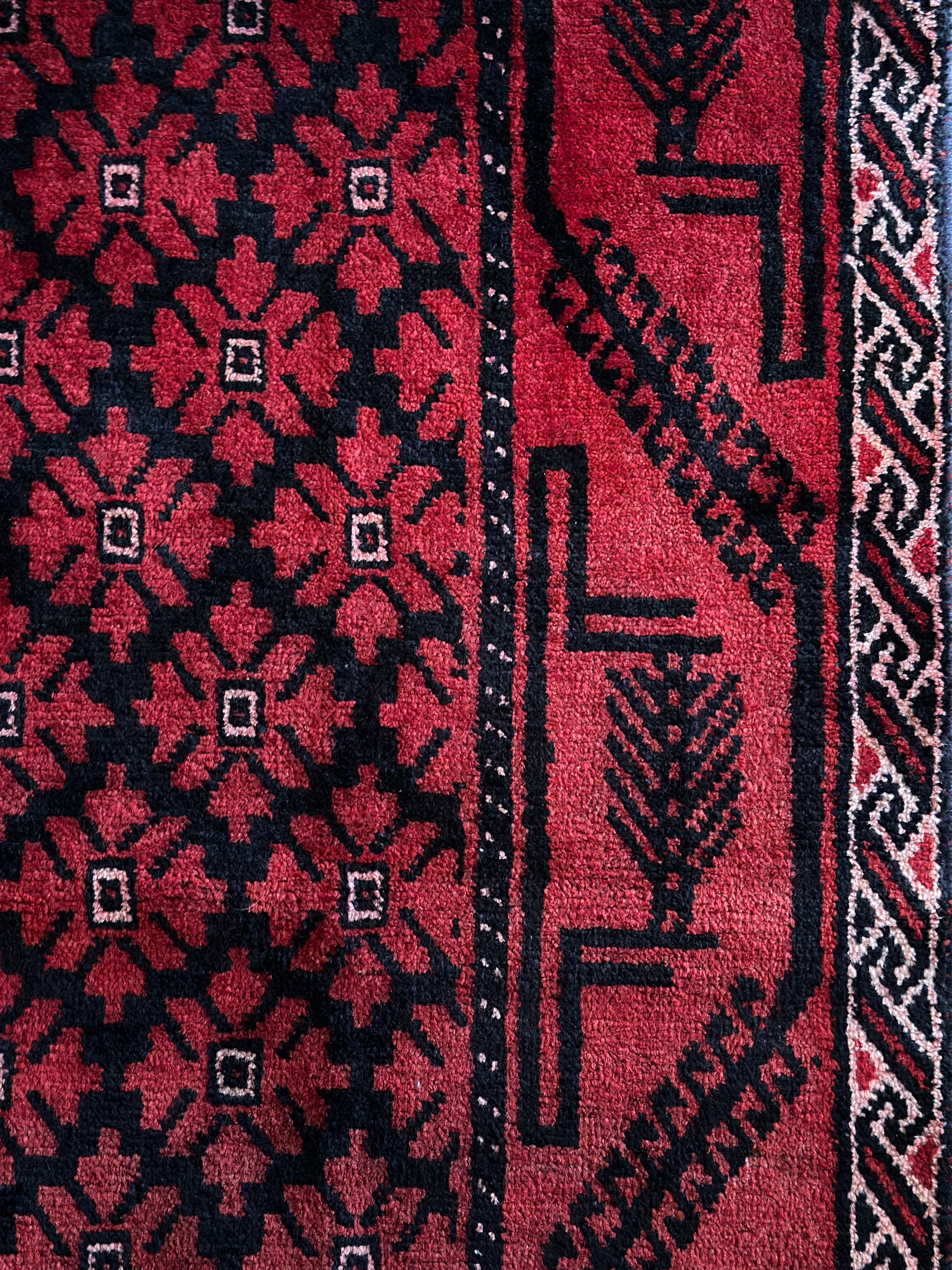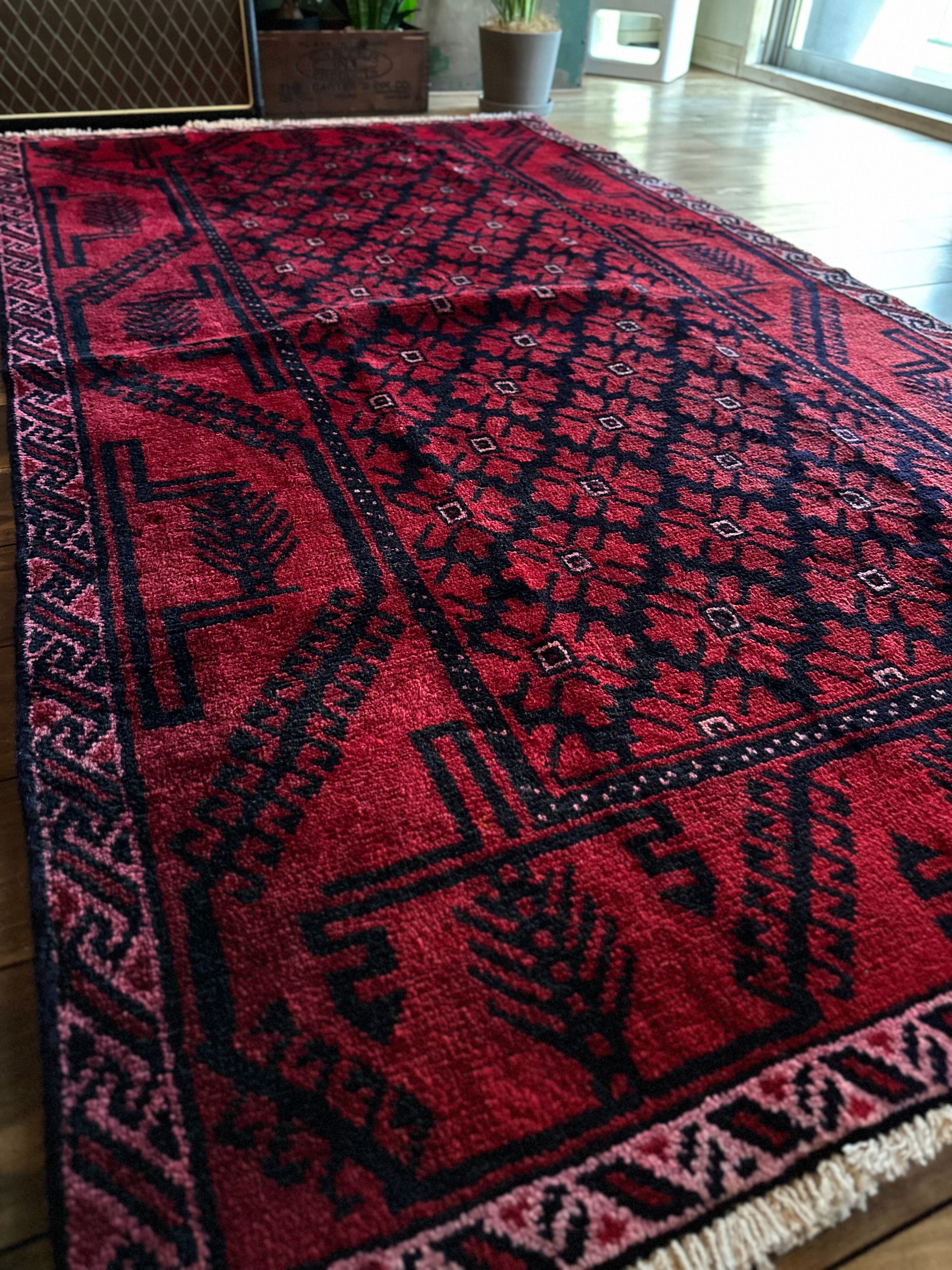 おそらくはクルド系のグーチャンによって織られたであろうバルーチ風の1枚で、イラン西部の国境付近では他民族によって模造されるのも総じてバルーチと呼ばれています。