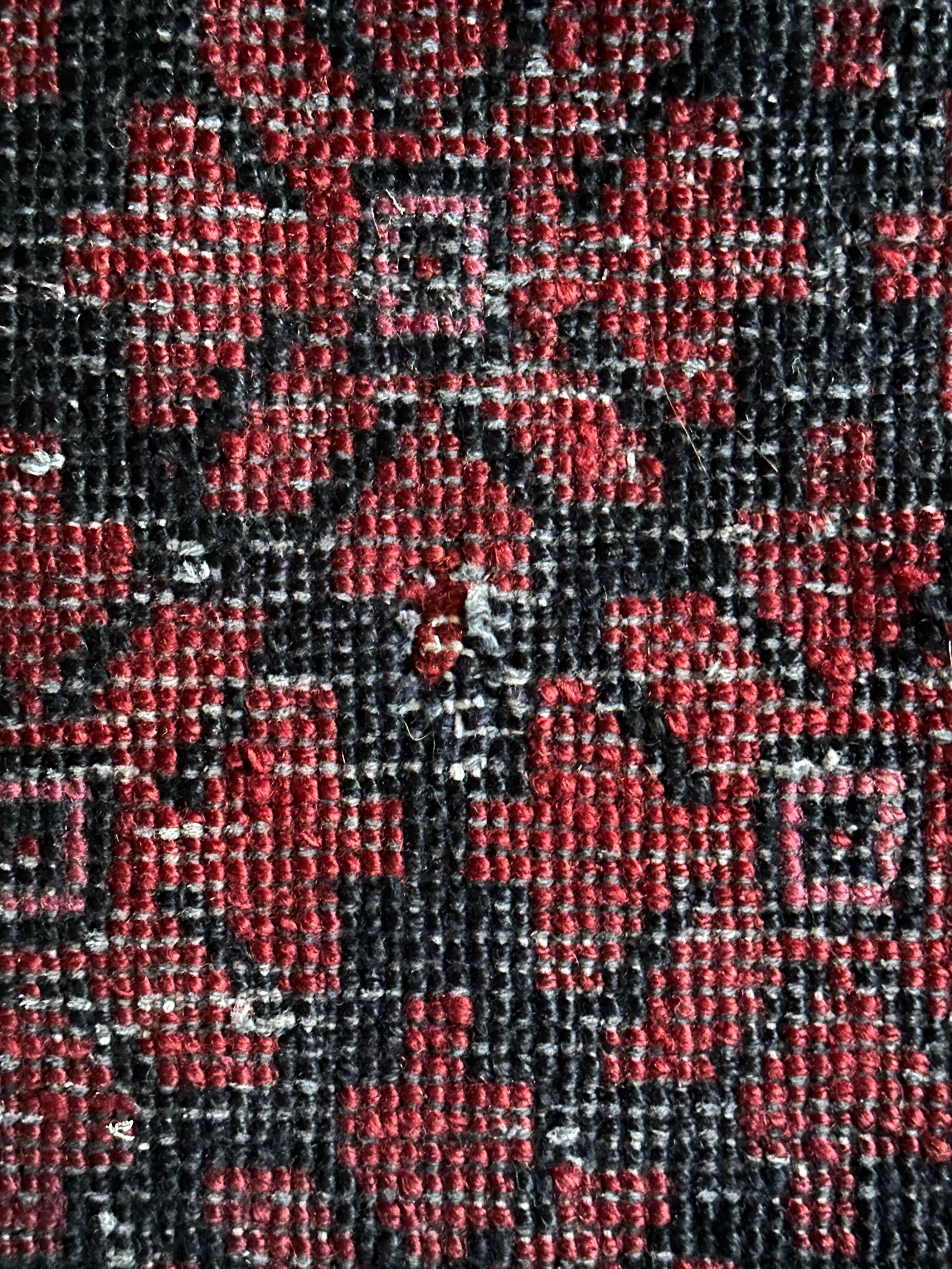 経年としてはさほど古くはない30年前と思しきこちらは、それなりの使用感はありますが、パイルの毛足もほどよく足触りも気持ち良い限りで、特に目立つダメージや気になるリペアはありませんが、所々に小さなパイル落ちに小さなリペアがありますので写真にてご確認下さい。
