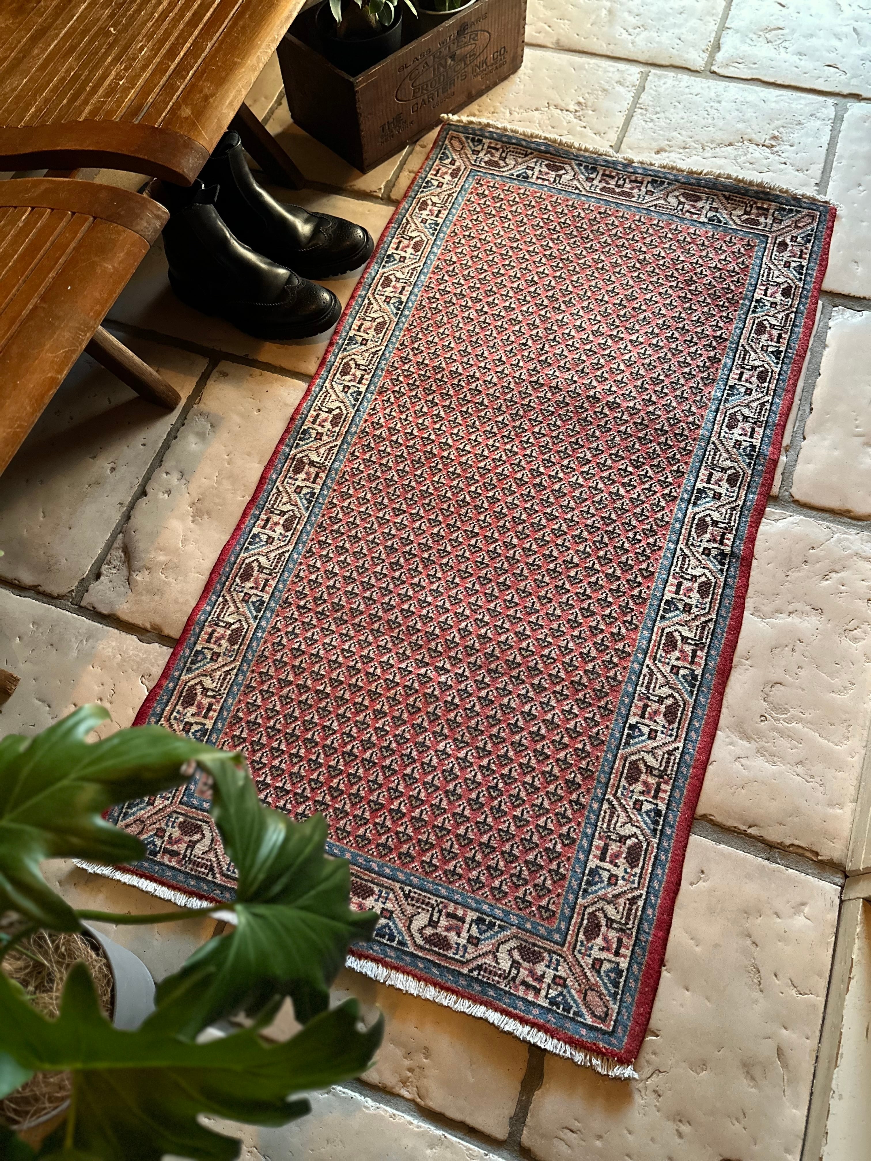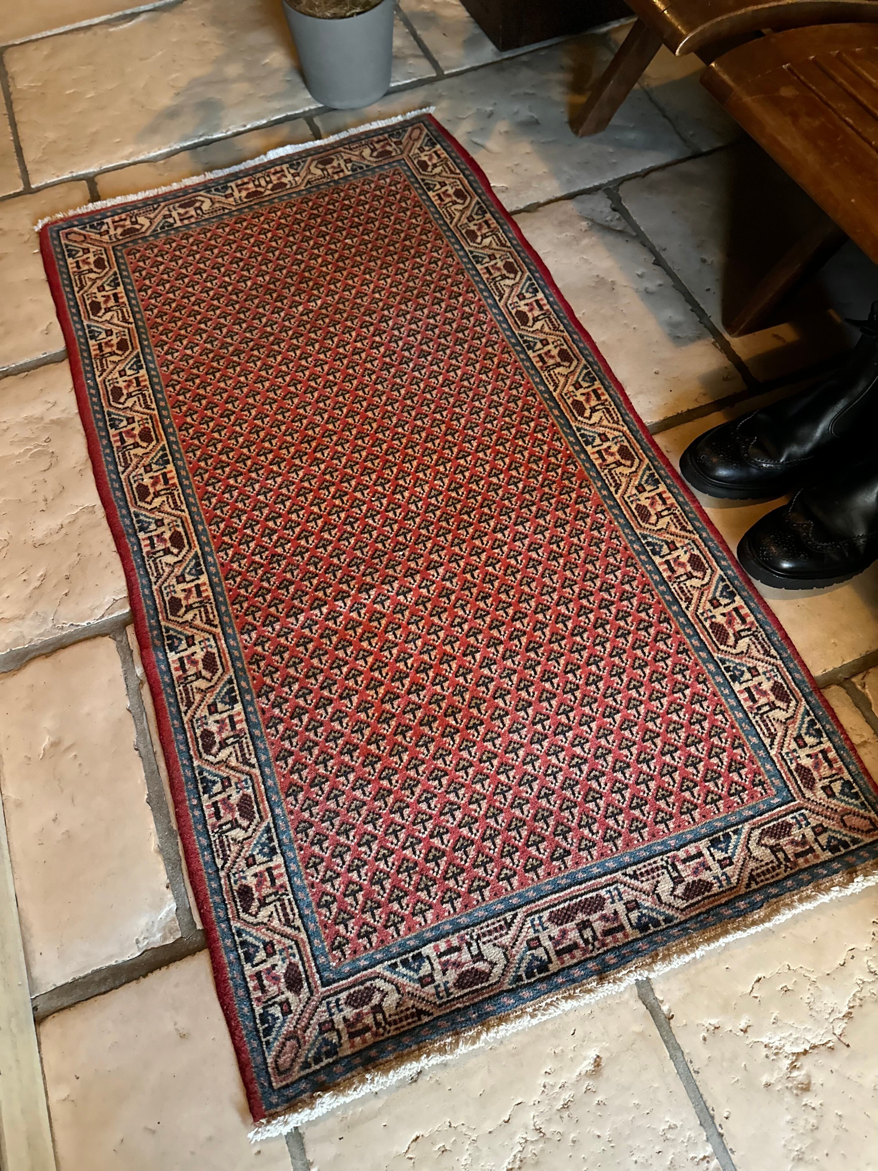 経年としては40年ほど前のヴィンテージラグになり、それなりの使用感に経年劣化での色褪せがありますが、特に目立つダメージや気になるリペアはありませんし、なんと言ってもこの気持ちの良いパイルの密度が素足には堪まらないでしょうか。全体的な雰囲気は下記URLの Instagramにて最後の動画(室内での自然光にて撮影)を参照して下さい。