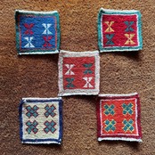 コースターとしてのご使用はもちろん、額装したりパッチワークにしたりと使い勝手のよいアイテムになり、大きさ的にはフリンジを含めて約10〜11cmほどになりますが、それよりも小さな個体差がありますのでセット内容の写真にてご判断ください。