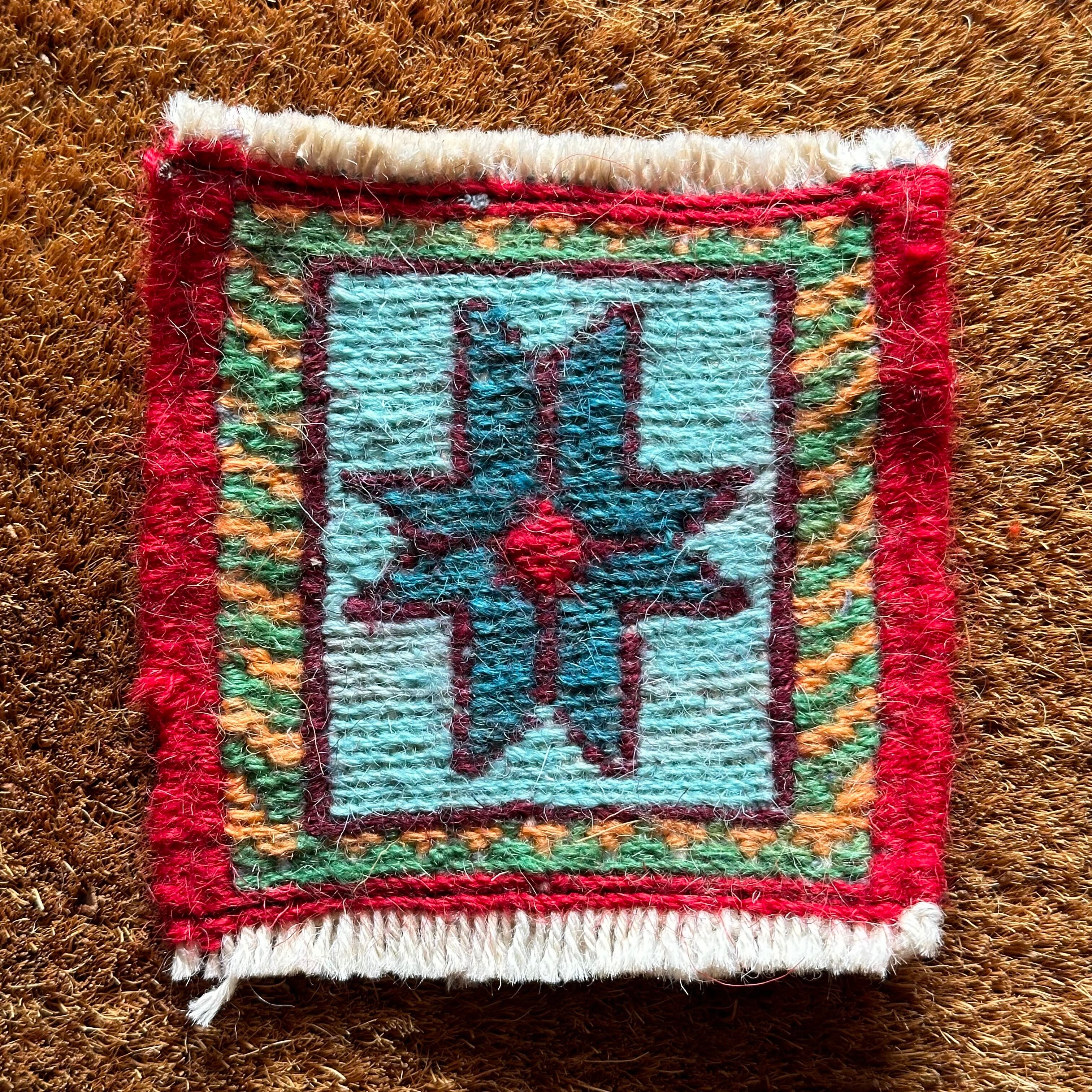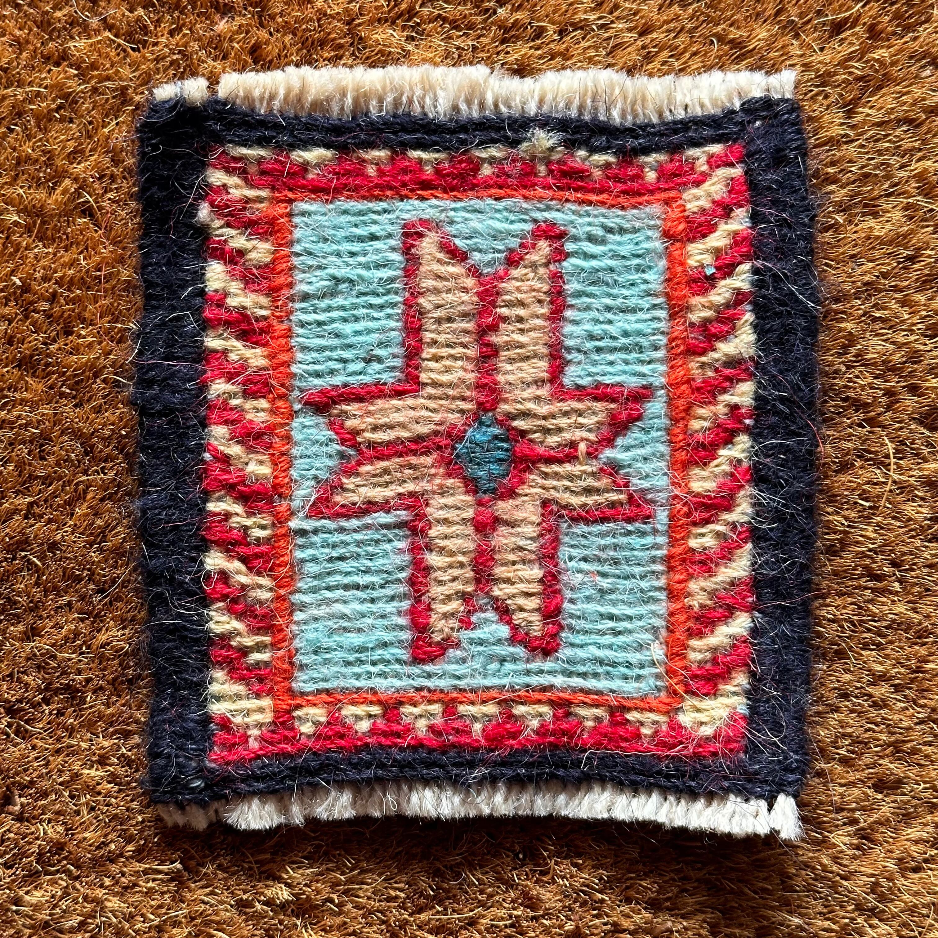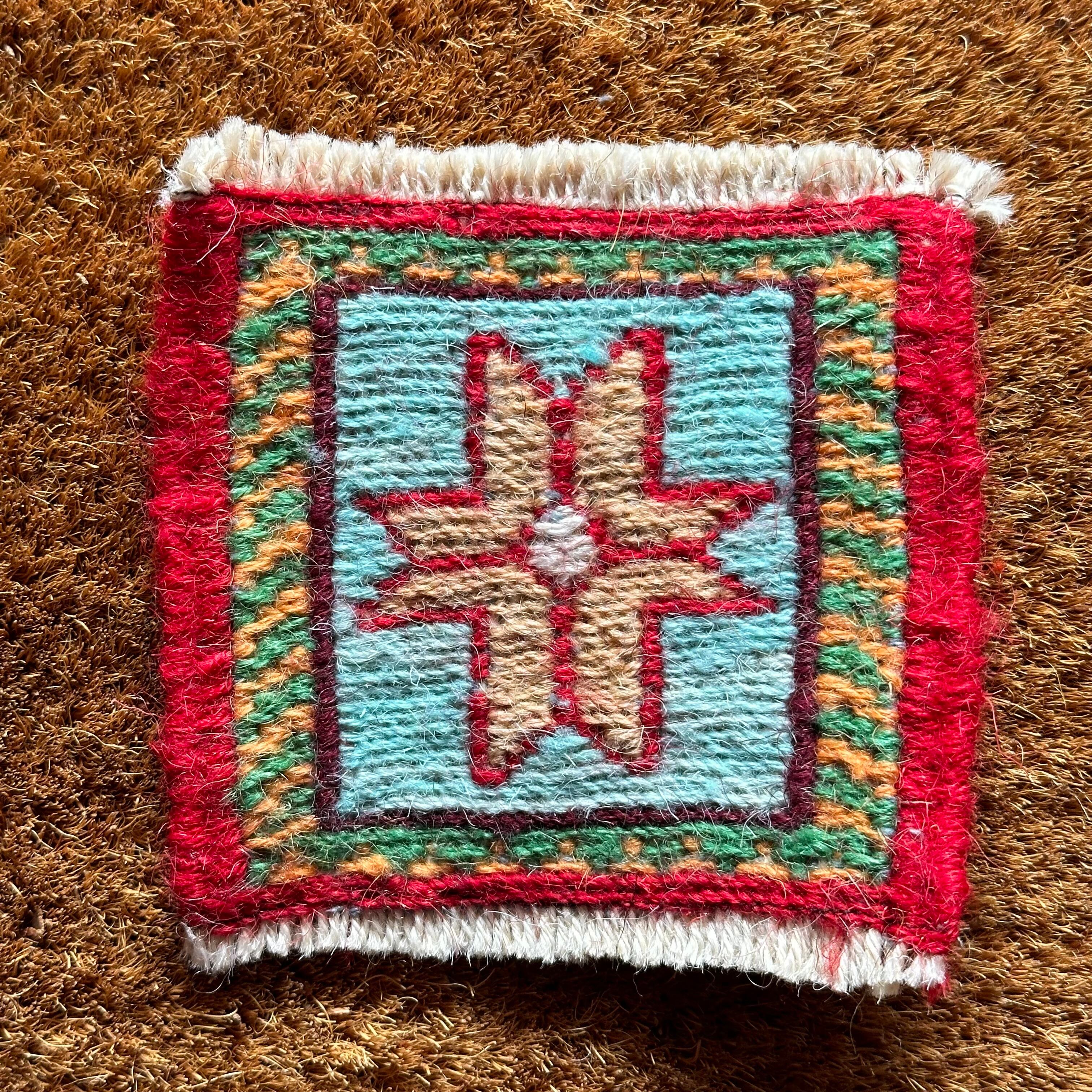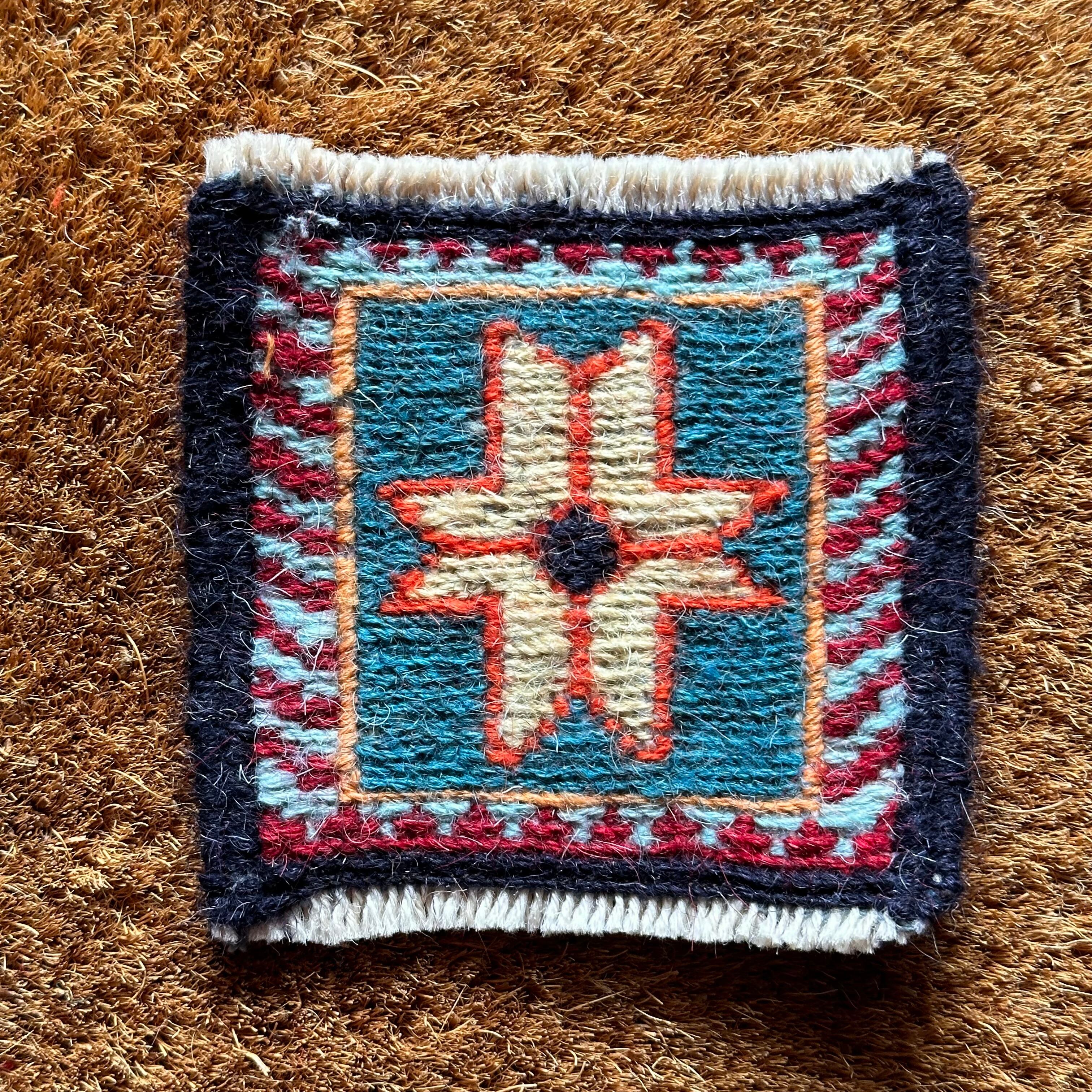 イラン北西部はアゼルバイジャン地方にあるアルダビールの村周辺で手織りされたスマック織りヴァルニキリムの新品コースターになります。