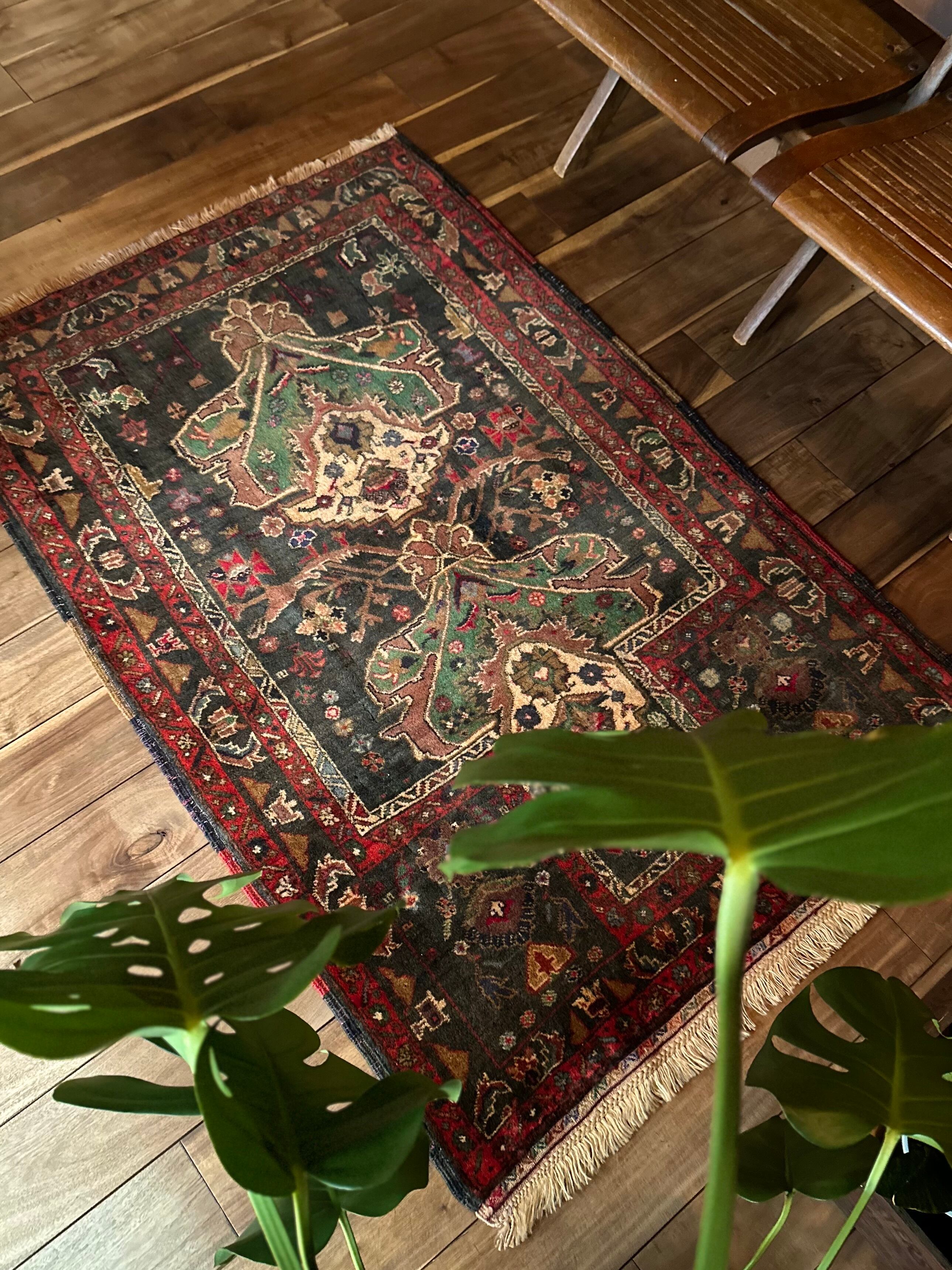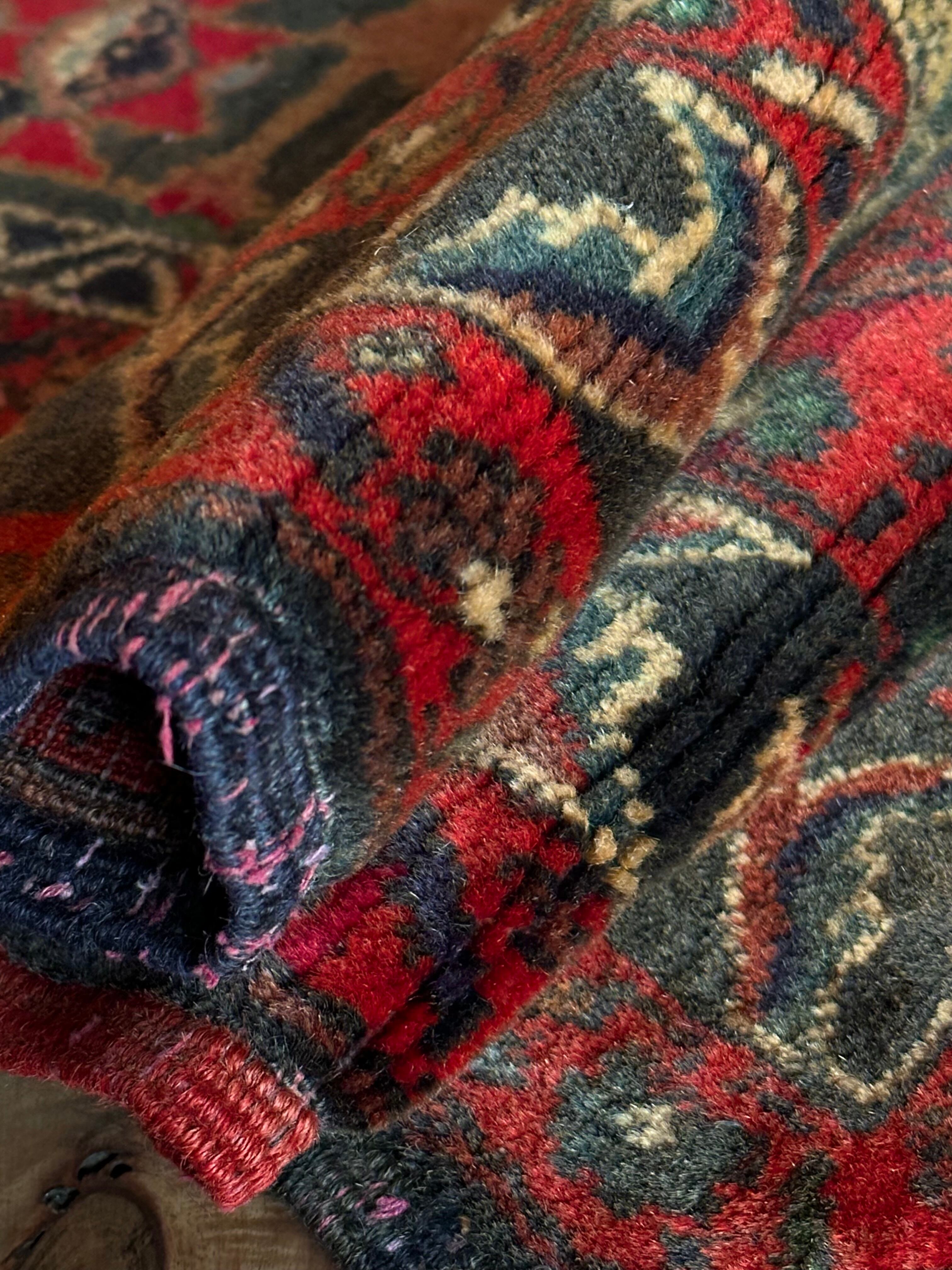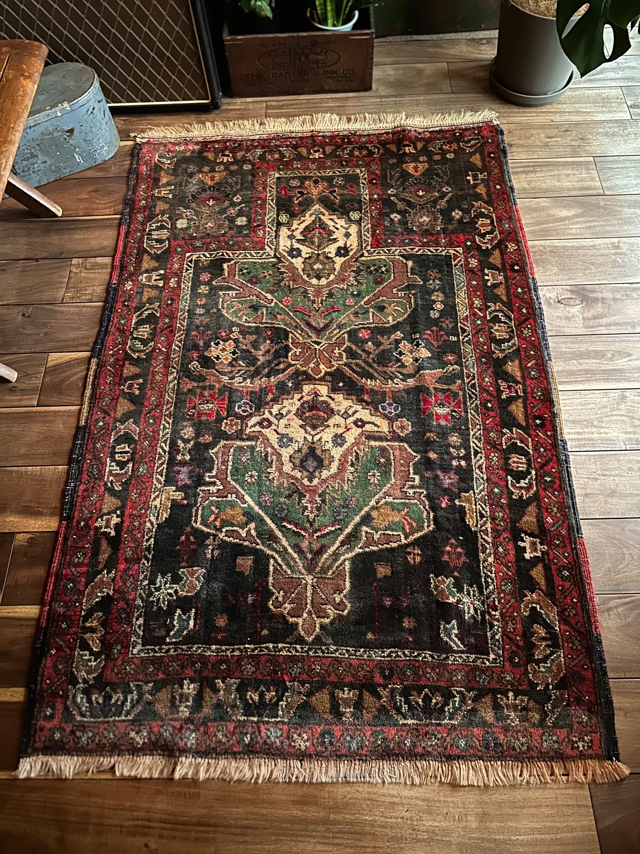 最後にラグそのものに関しては羊毛特有の匂いがあり、採寸は中央付近で計測していますが、手織りならではの歪みによる誤差や水洗いクリーニングによる縮み、また草木染めによる経年劣化の色ムラなどがありますが、それもまたヴィンテージラグの魅力かとご理解ください。