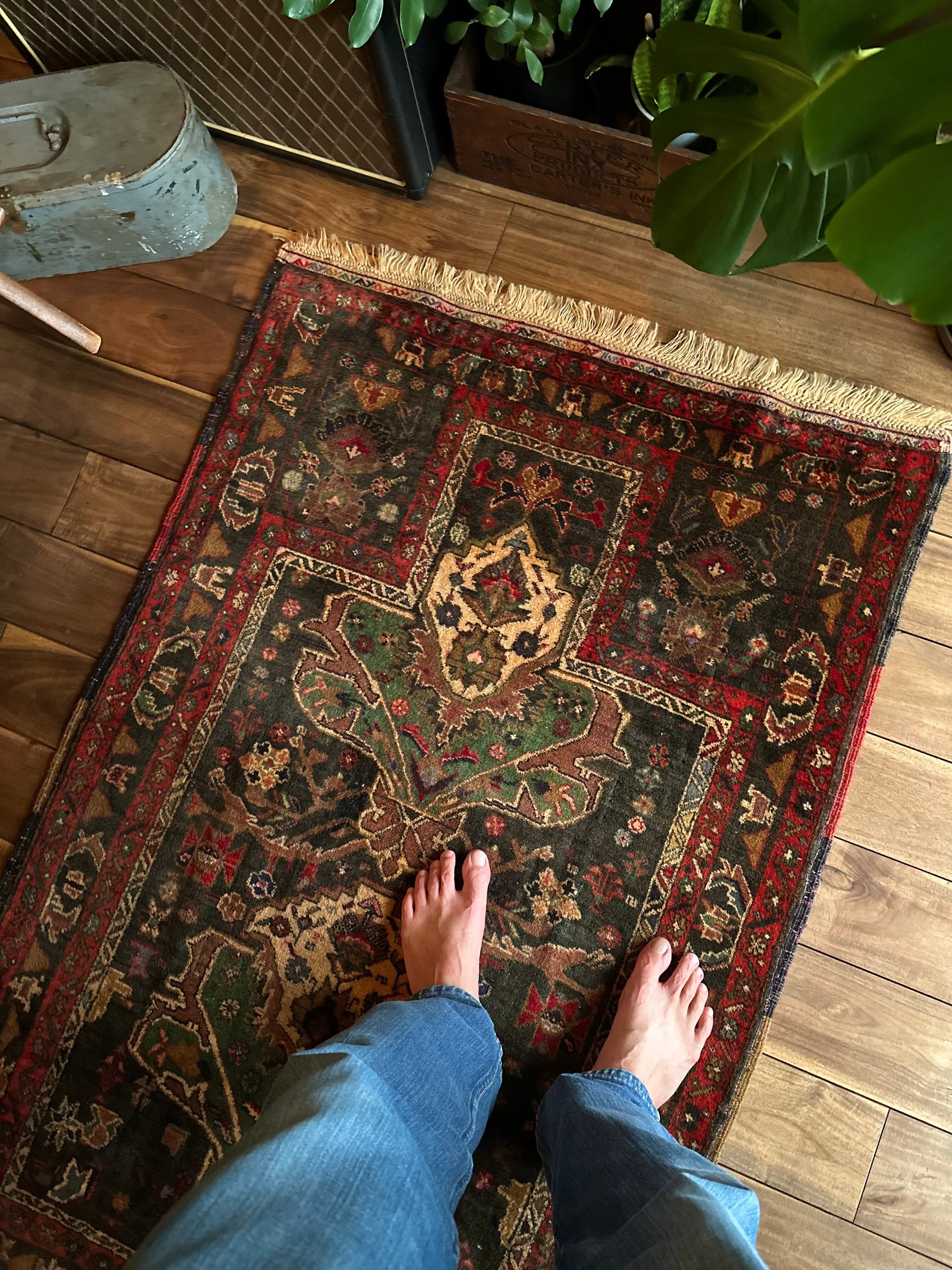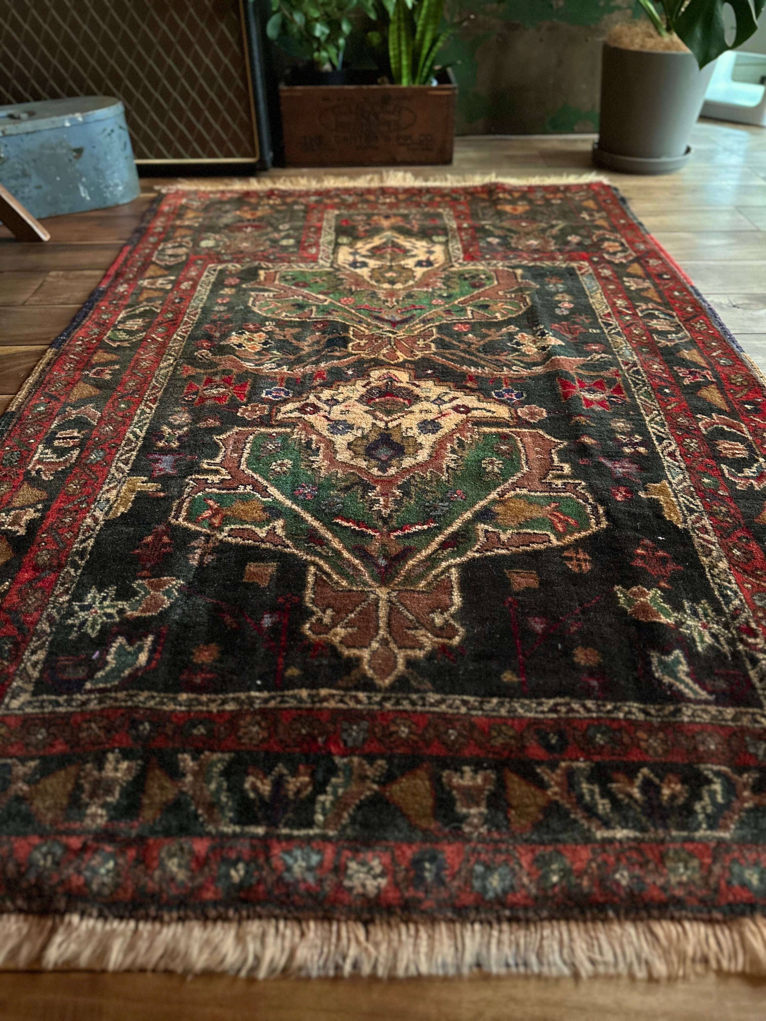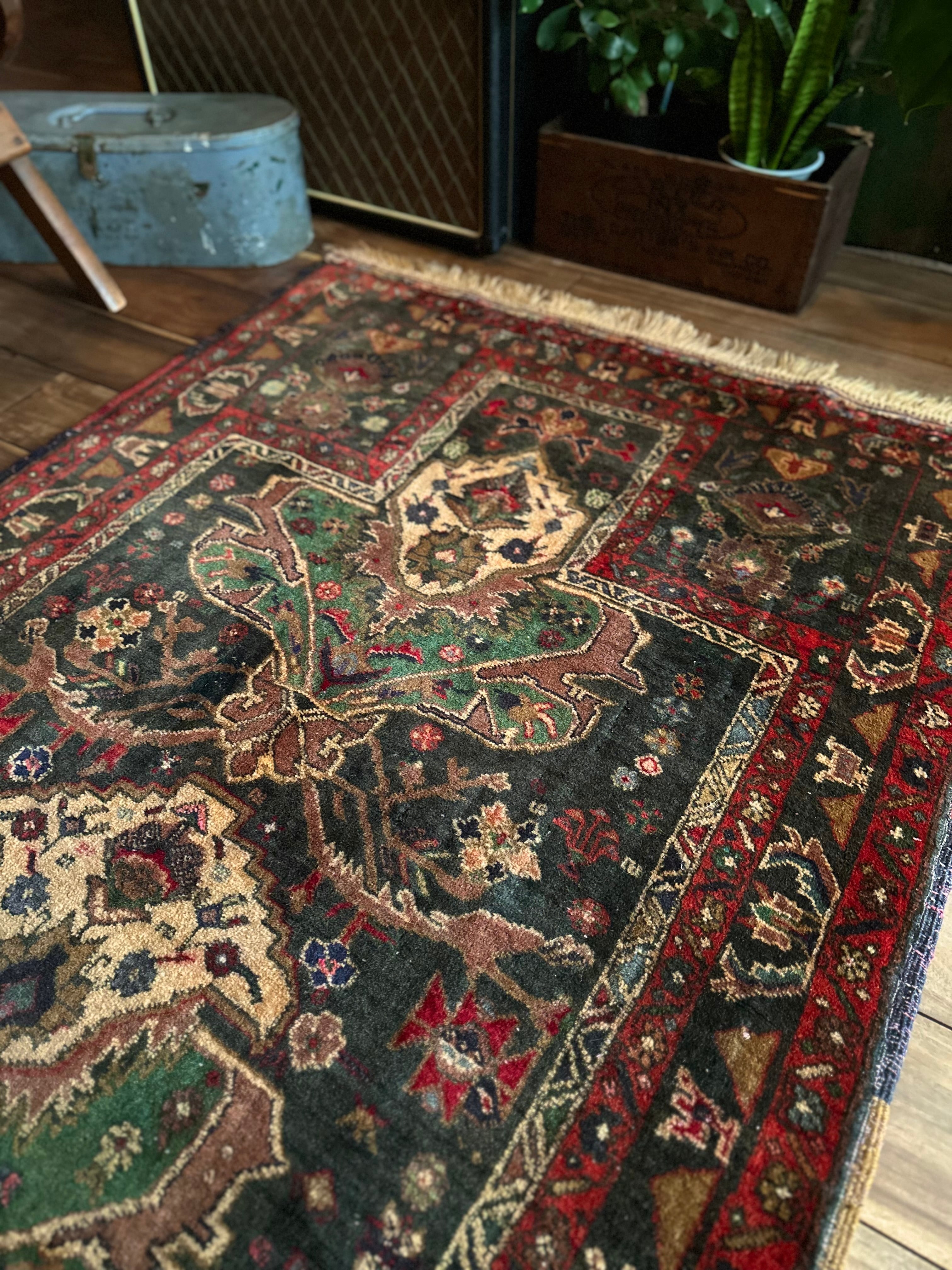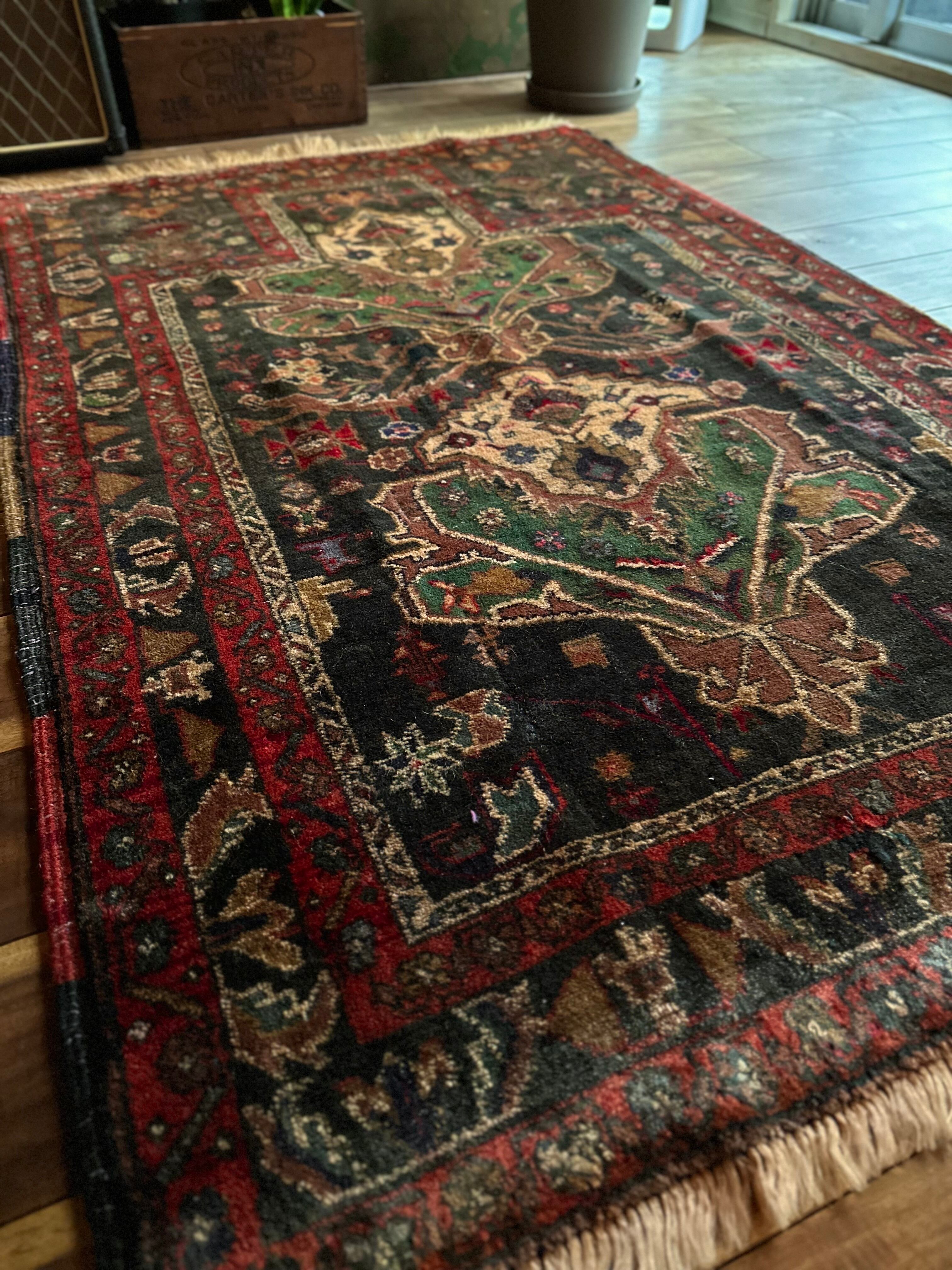 最後にラグそのものに関しては羊毛特有の匂いがあり、採寸は中央付近で計測していますが、手織りならではの歪みによる誤差や水洗いクリーニングによる縮み、また草木染めによる経年劣化の色ムラなどがありますが、それもまたヴィンテージラグの魅力かとご理解ください。