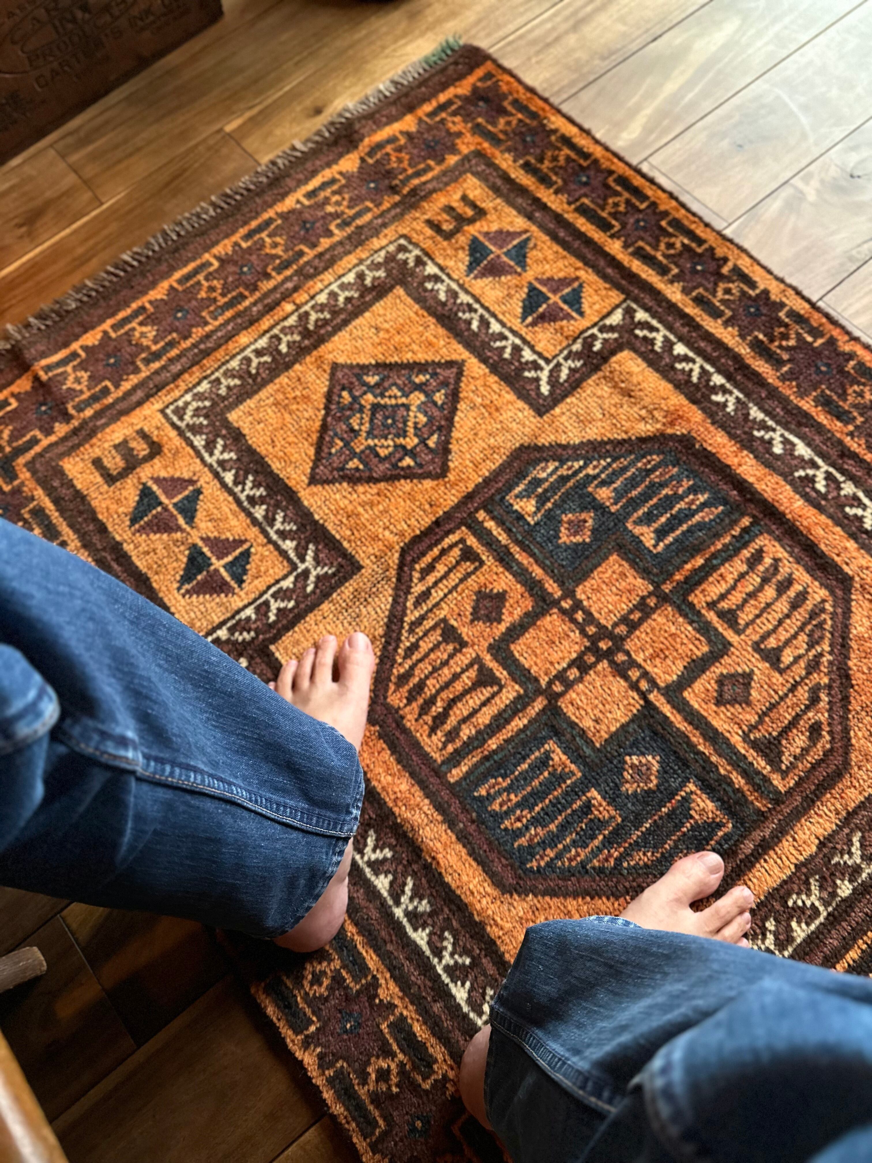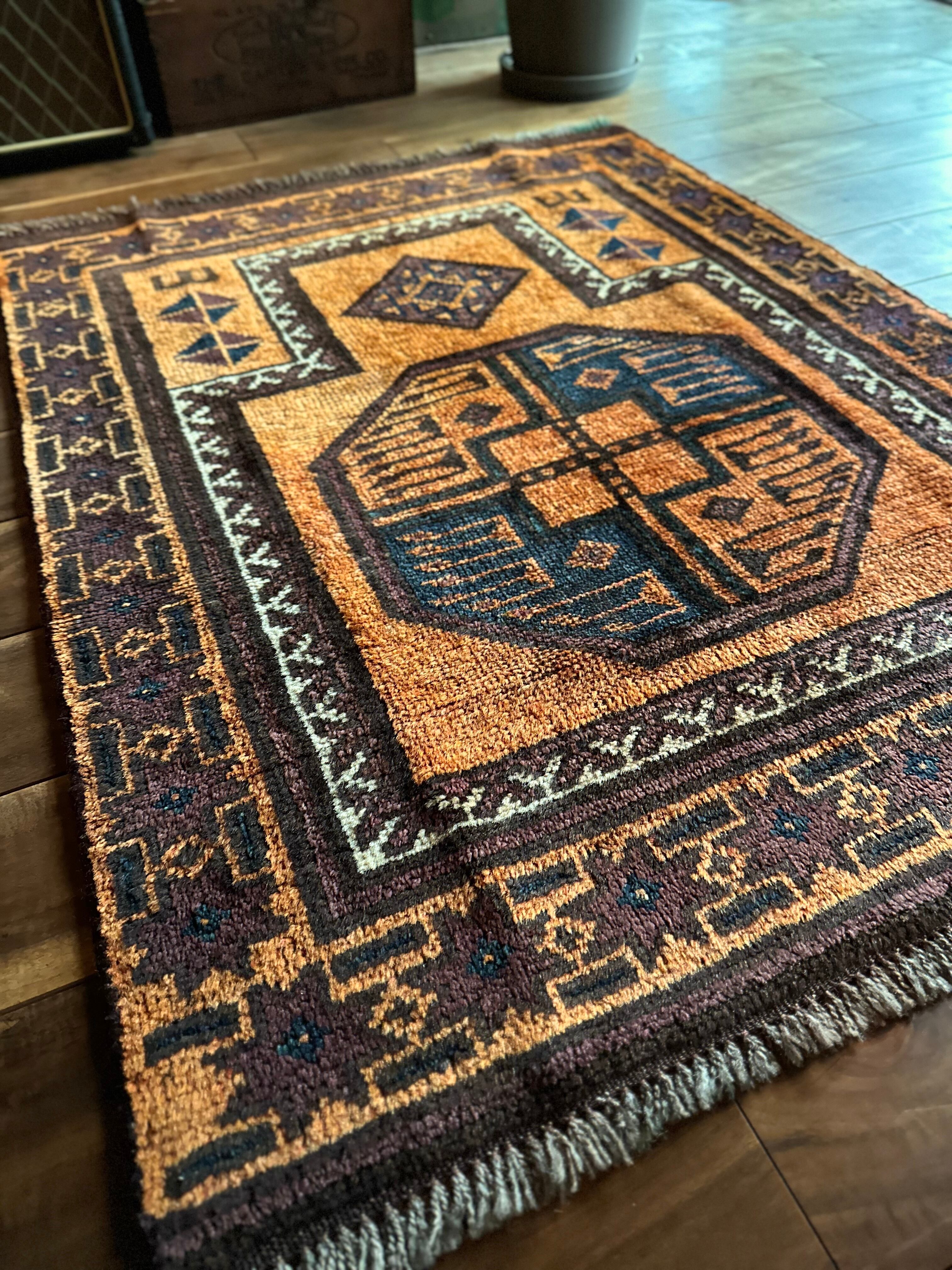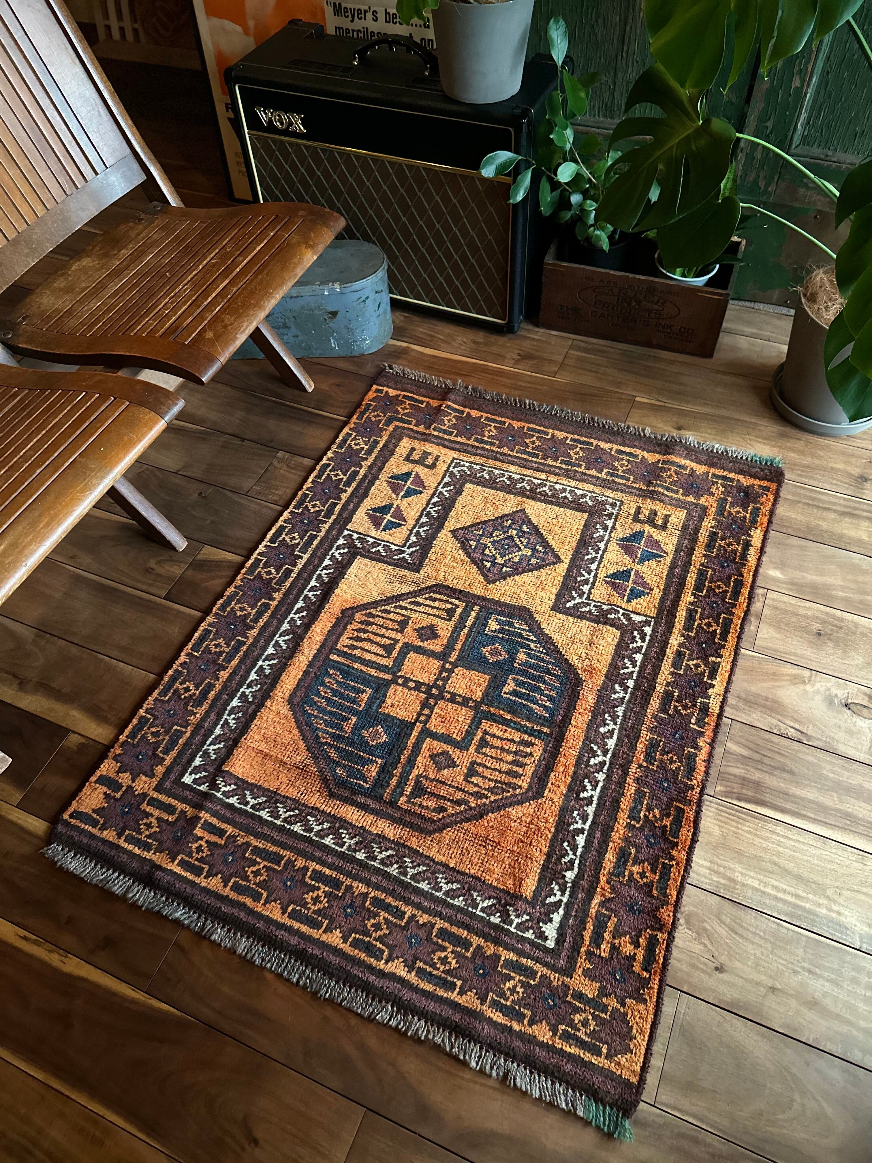 最後にラグそのものに関しては羊毛特有の匂いがあり、採寸は中央付近で計測していますが、手織りならではの歪みによる誤差や水洗いクリーニングによる縮み、また草木染めによる経年劣化の色ムラなどがありますが、それもまたヴィンテージラグの魅力かとご理解ください。
