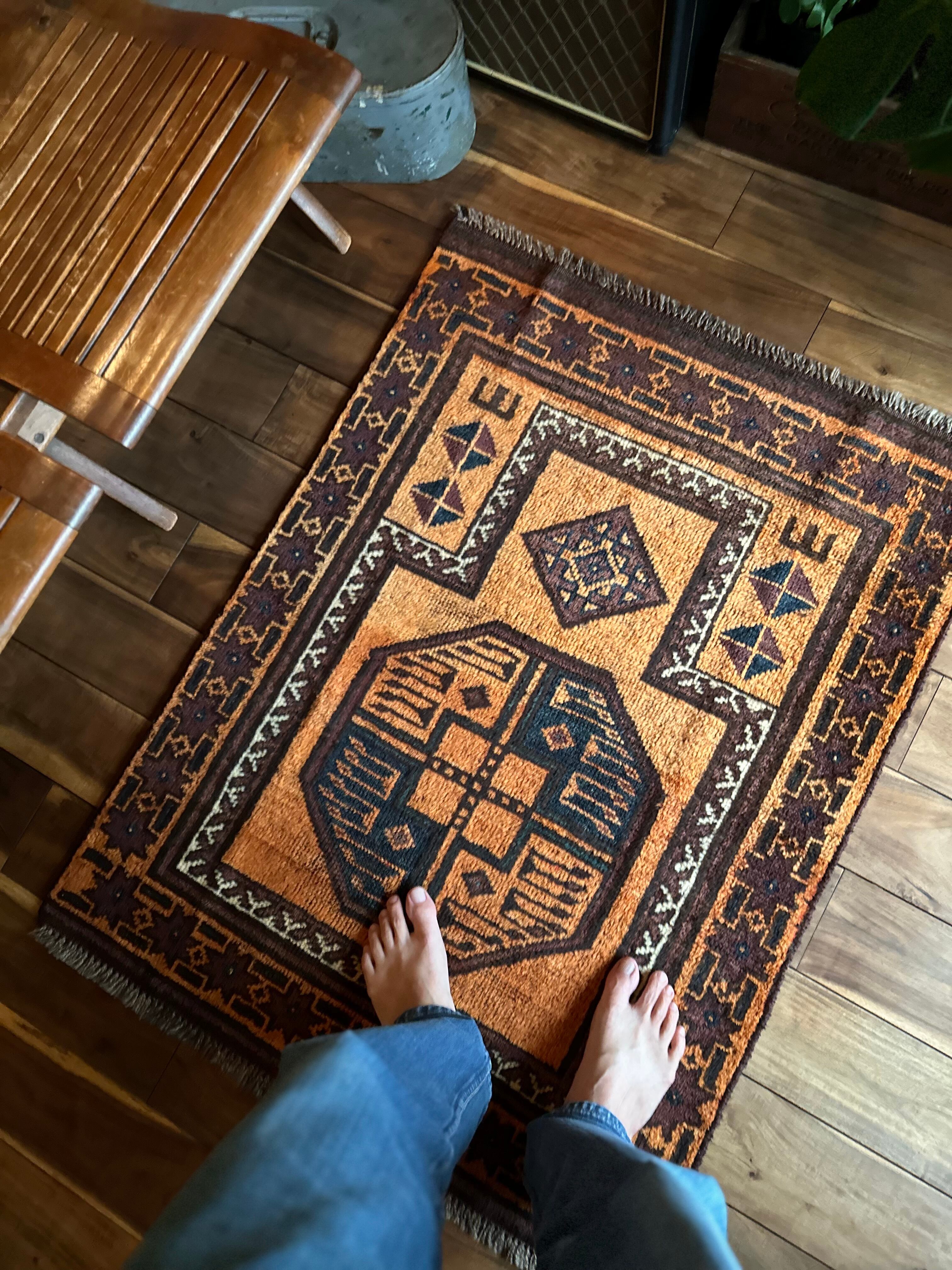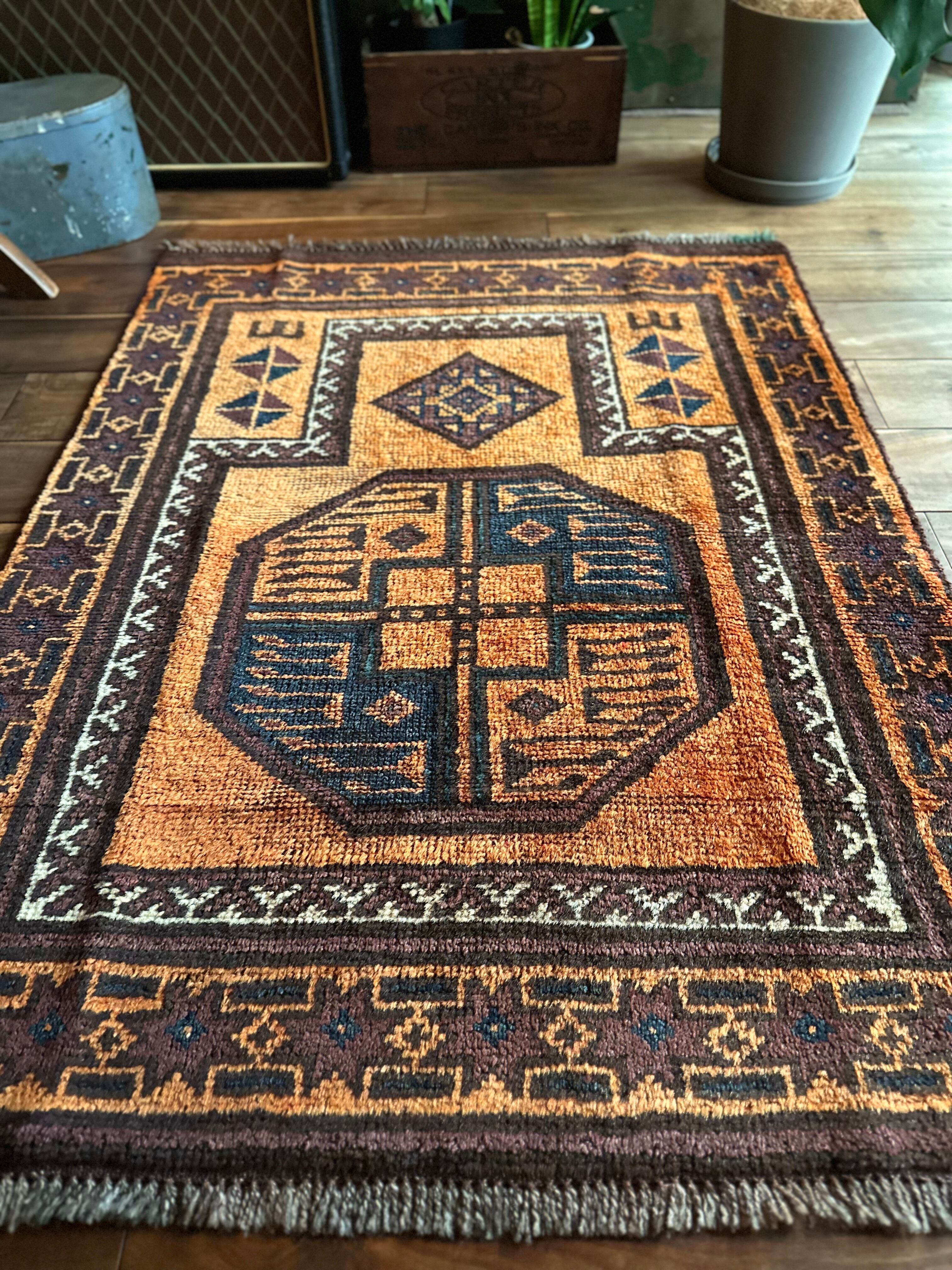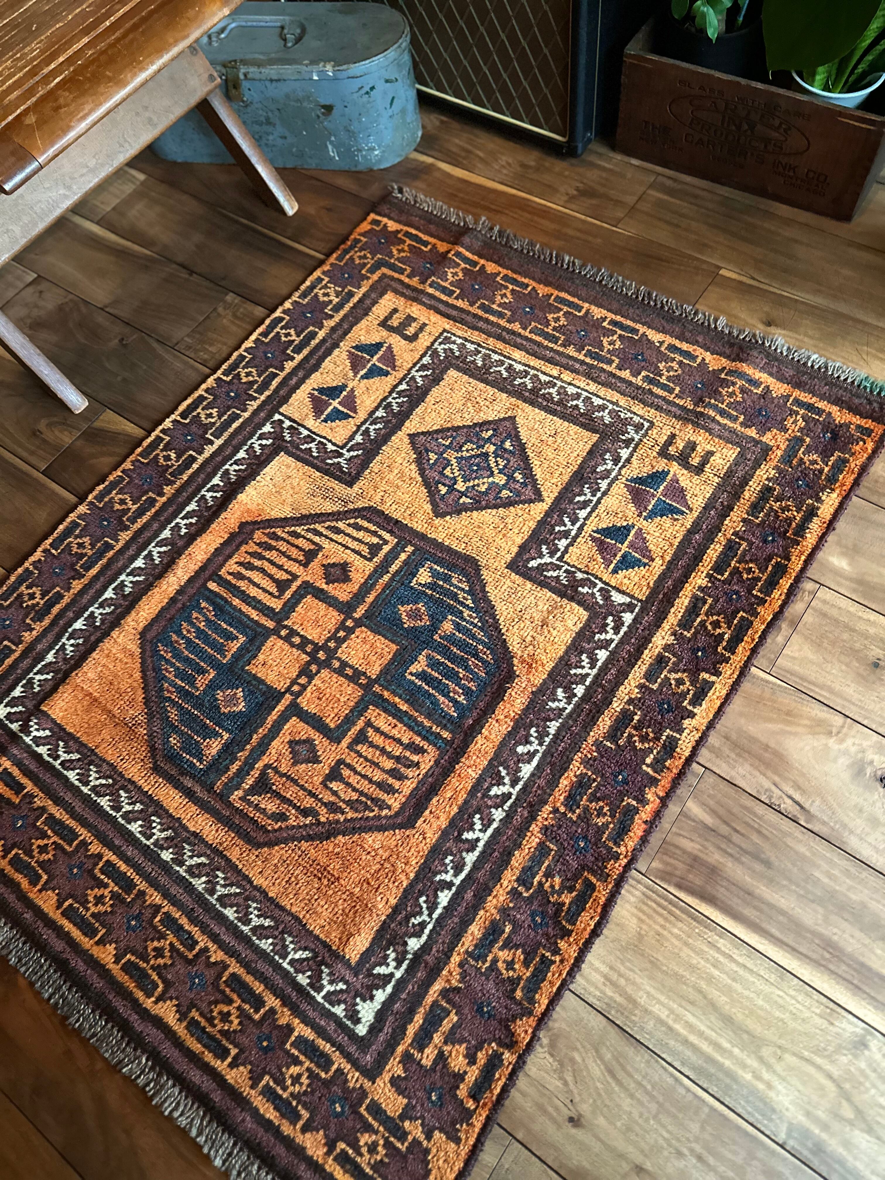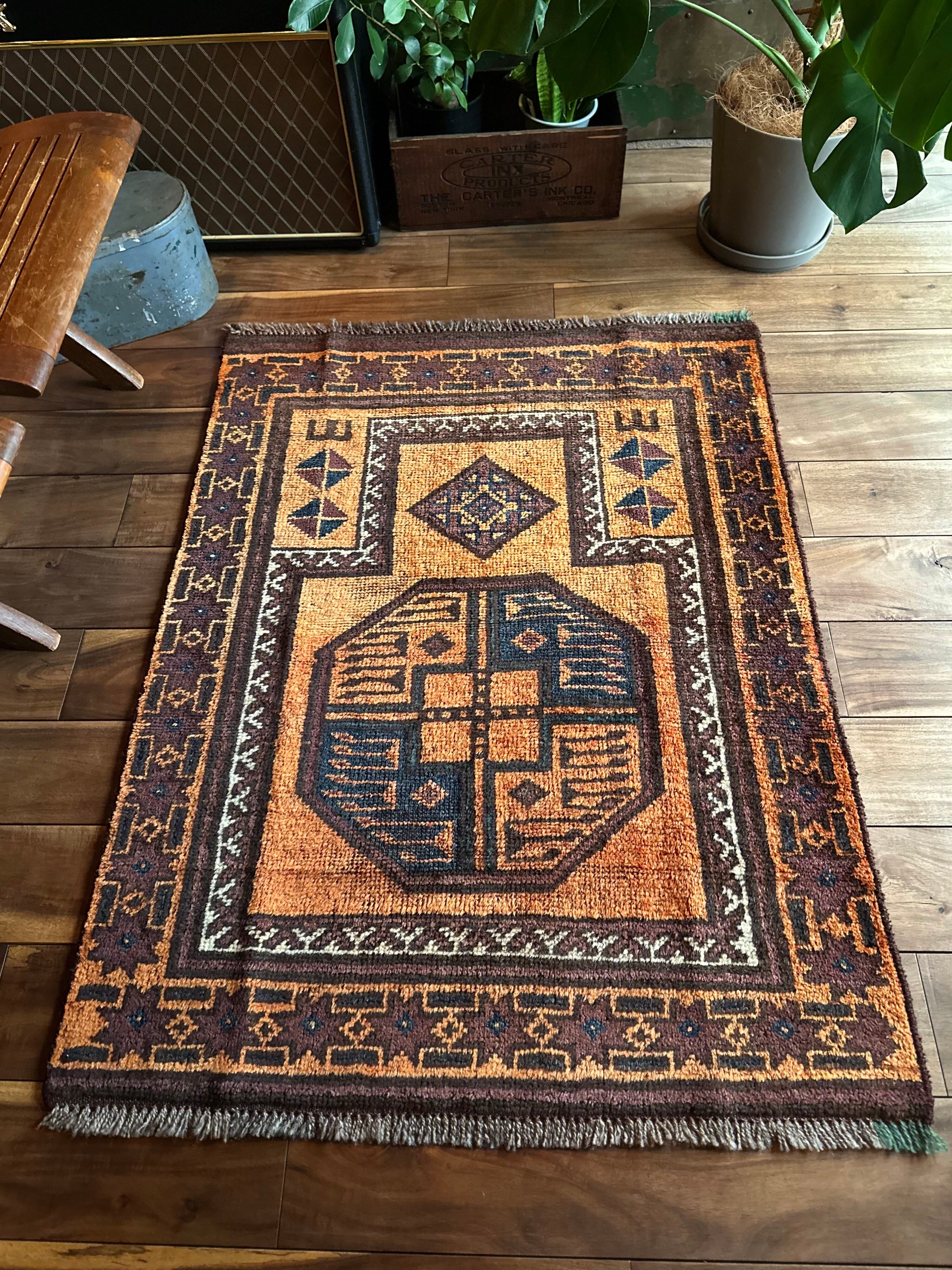 最後にラグそのものに関しては羊毛特有の匂いがあり、採寸は中央付近で計測していますが、手織りならではの歪みによる誤差や水洗いクリーニングによる縮み、また草木染めによる経年劣化の色ムラなどがありますが、それもまたヴィンテージラグの魅力かとご理解ください。