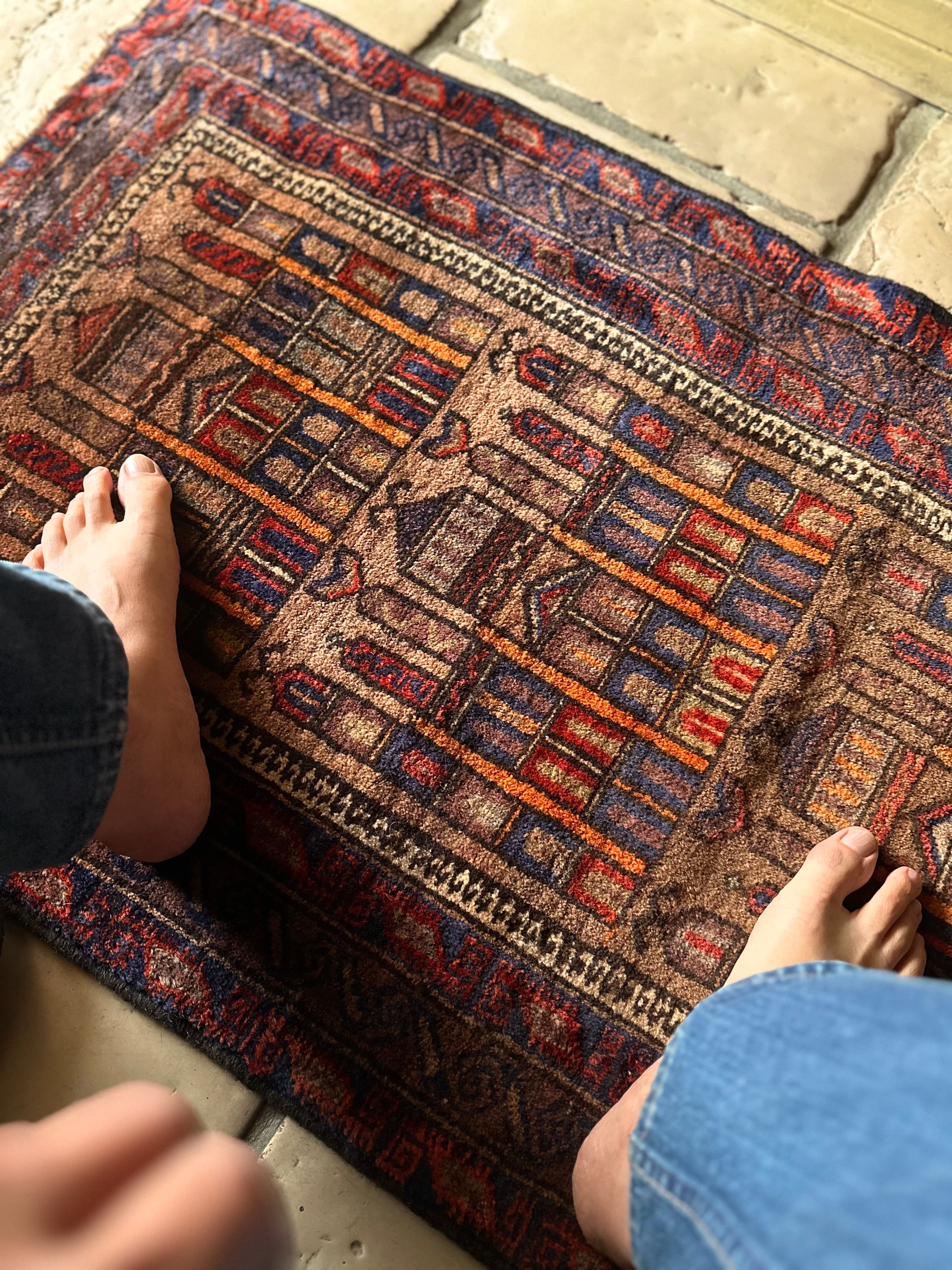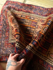 最後にラグそのものに関しては羊毛特有の匂いがあり、採寸は中央付近で計測していますが、手織りならではの歪みによる誤差や水洗いクリーニングによる縮み、また草木染めによる経年劣化の色ムラなどがありますが、それもまたヴィンテージラグの魅力かとご理解ください。