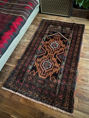 最後にラグそのものに関しては羊毛特有の匂いがあり、採寸は中央付近で計測していますが、手織りならではの歪みによる誤差や水洗いクリーニングによる縮み、また草木染めによる経年劣化の色ムラなどがありますが、それもまたヴィンテージラグの魅力かとご理解ください。