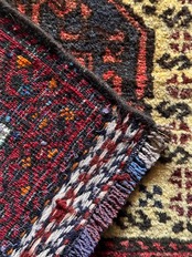 経年としては35年とそれなりのヴィンテージ品になりますが、バッグとして使用していた為に目立つ経年劣化もなく、密度のある織りでパイルもフカフカとした手触りにキリムエンドの装飾が際立つ1枚かと。また特に目立つダメージやリペア箇所が見当たらないグッドなコンディションで、トライバルラグ初心者の方でも気軽に取り入れてもらえます。