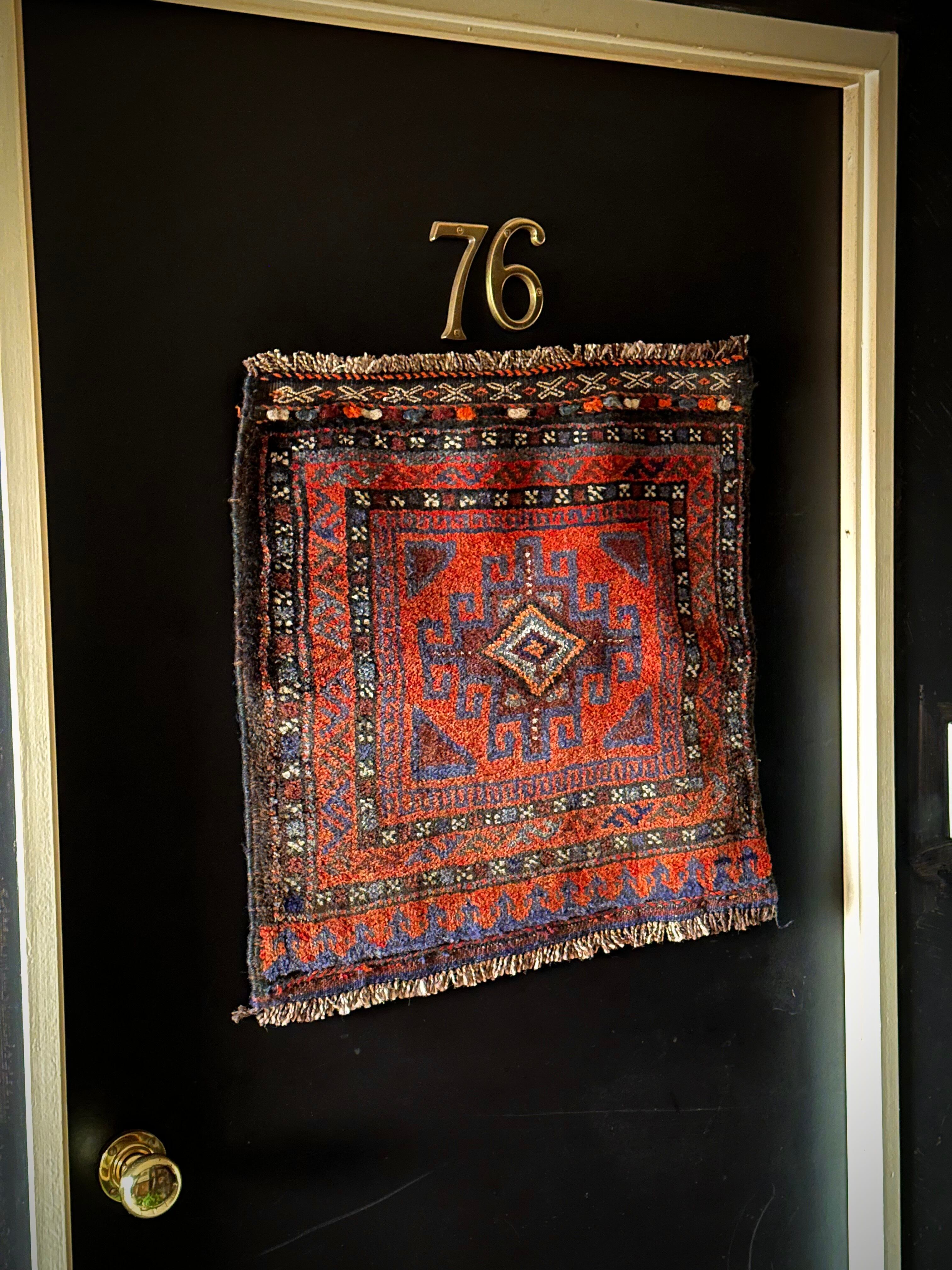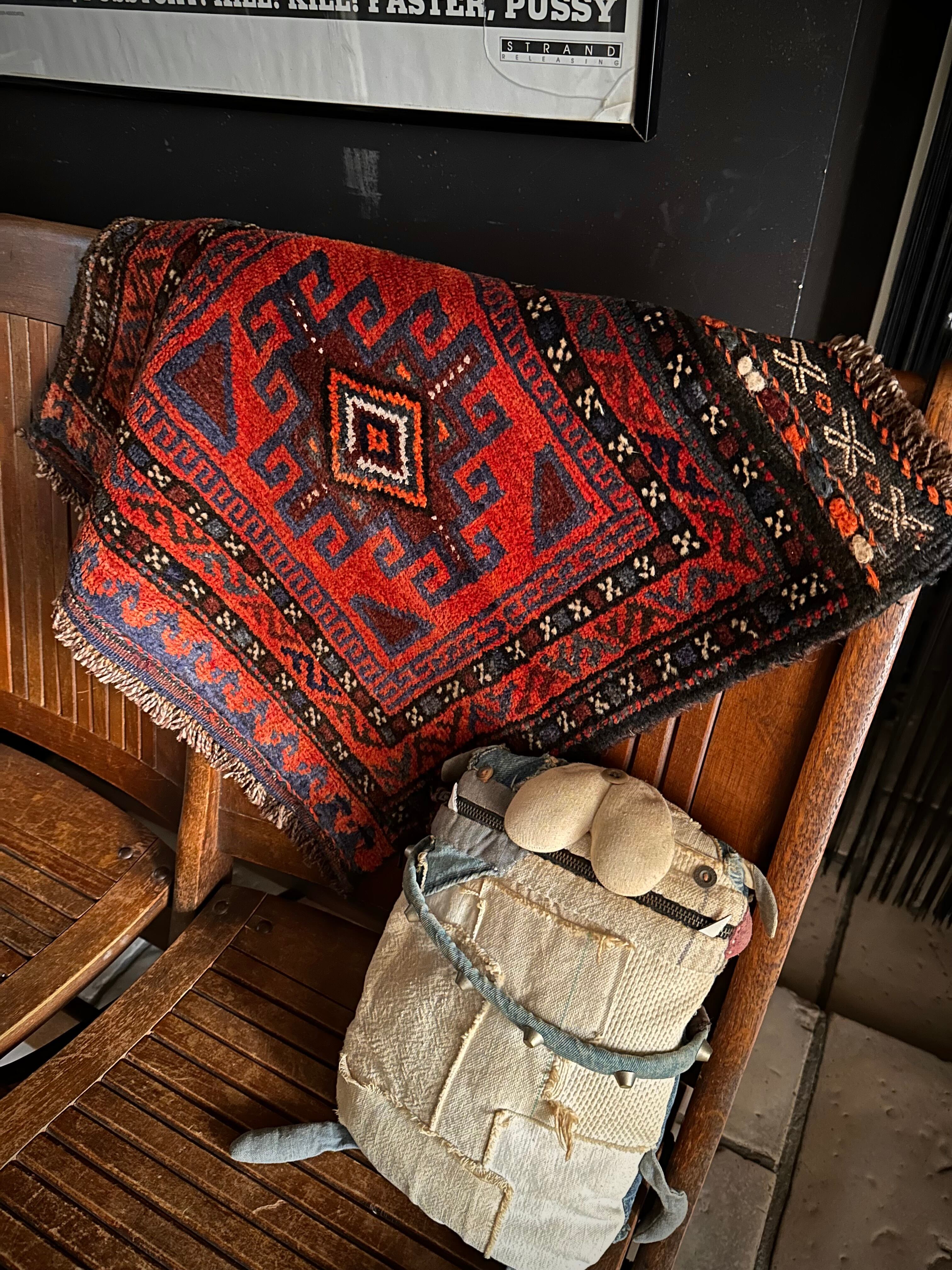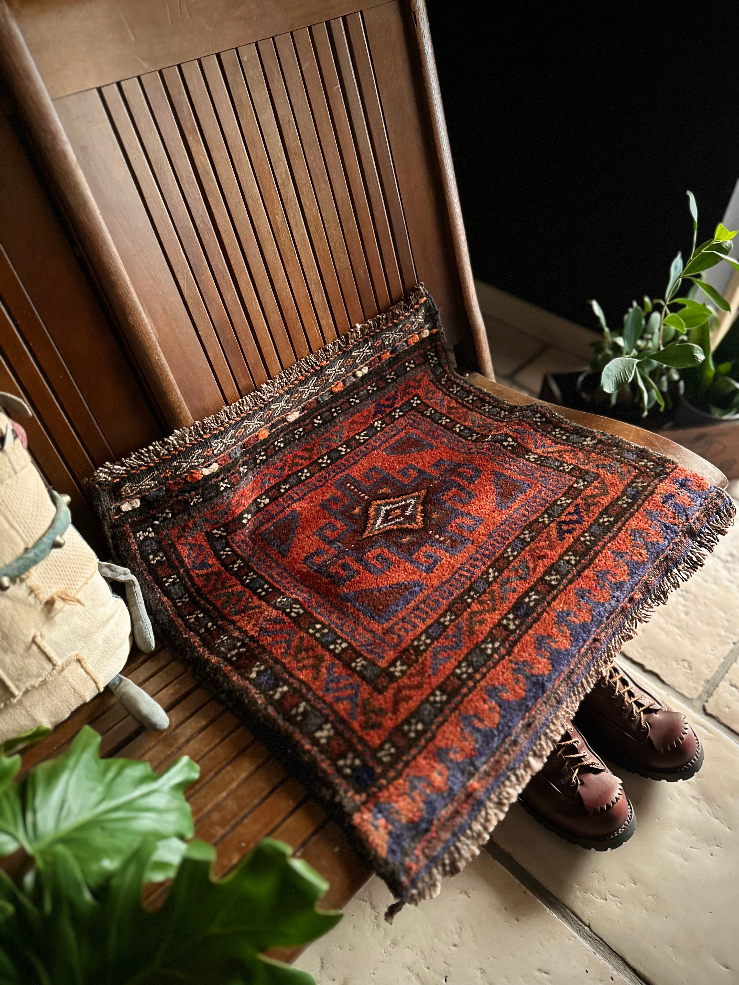 経年としては40年とそれなりのヴィンテージ品になりますが、バッグとして使用していた為に目立つ経年劣化もなく、密度のある織りでパイルもフカフカとした柔らかな手触りにキリムエンドの装飾が際立つ1枚になります。また特に目立つダメージやリペア箇所が見当たらないグッドなコンディションで、トライバルラグ初心者の方でも気軽に取り入れてもらえます。