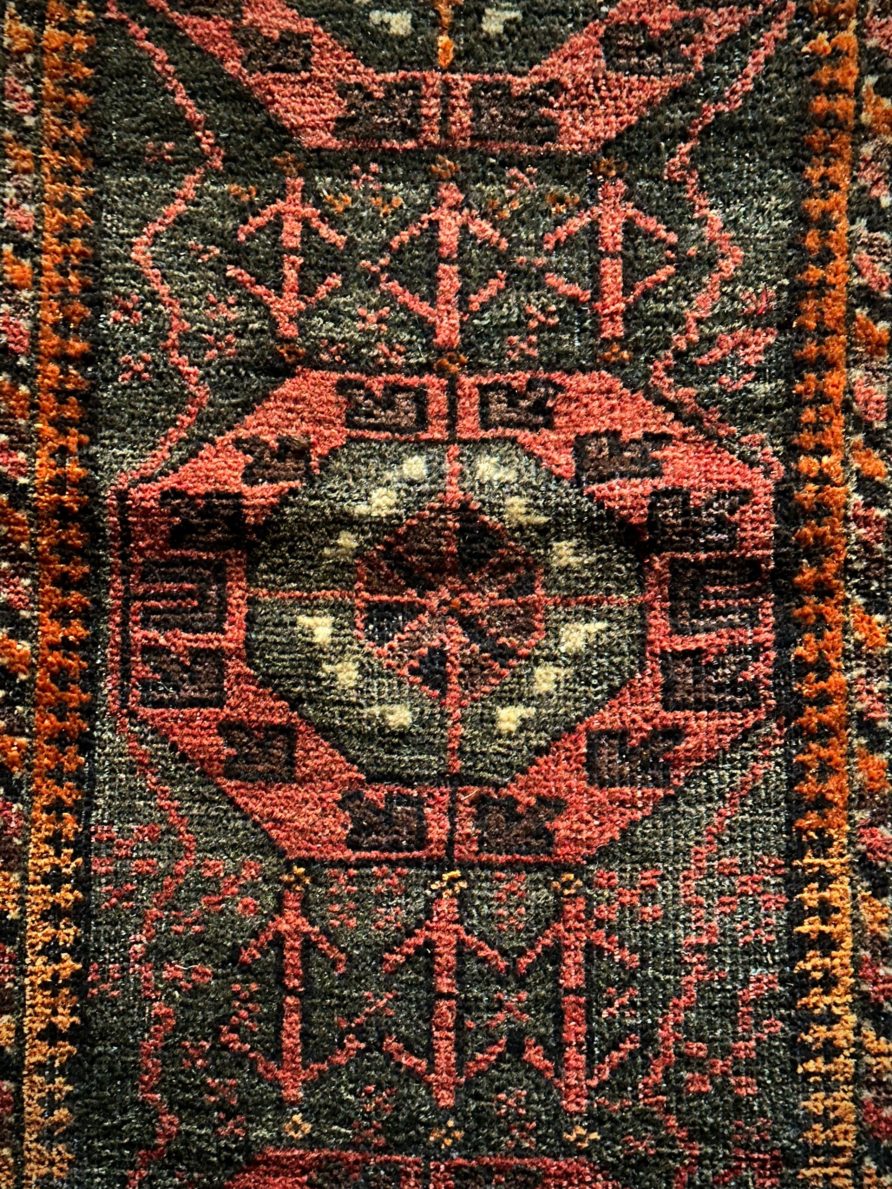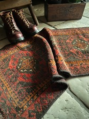 最後にラグそのものに関しては羊毛特有の匂いがあり、採寸は中央付近で計測していますが、手織りならではの歪みによる誤差や水洗いクリーニングによる縮み、また草木染めによる経年劣化の色ムラなどがありますが、それもまたヴィンテージラグの魅力かとご理解ください。