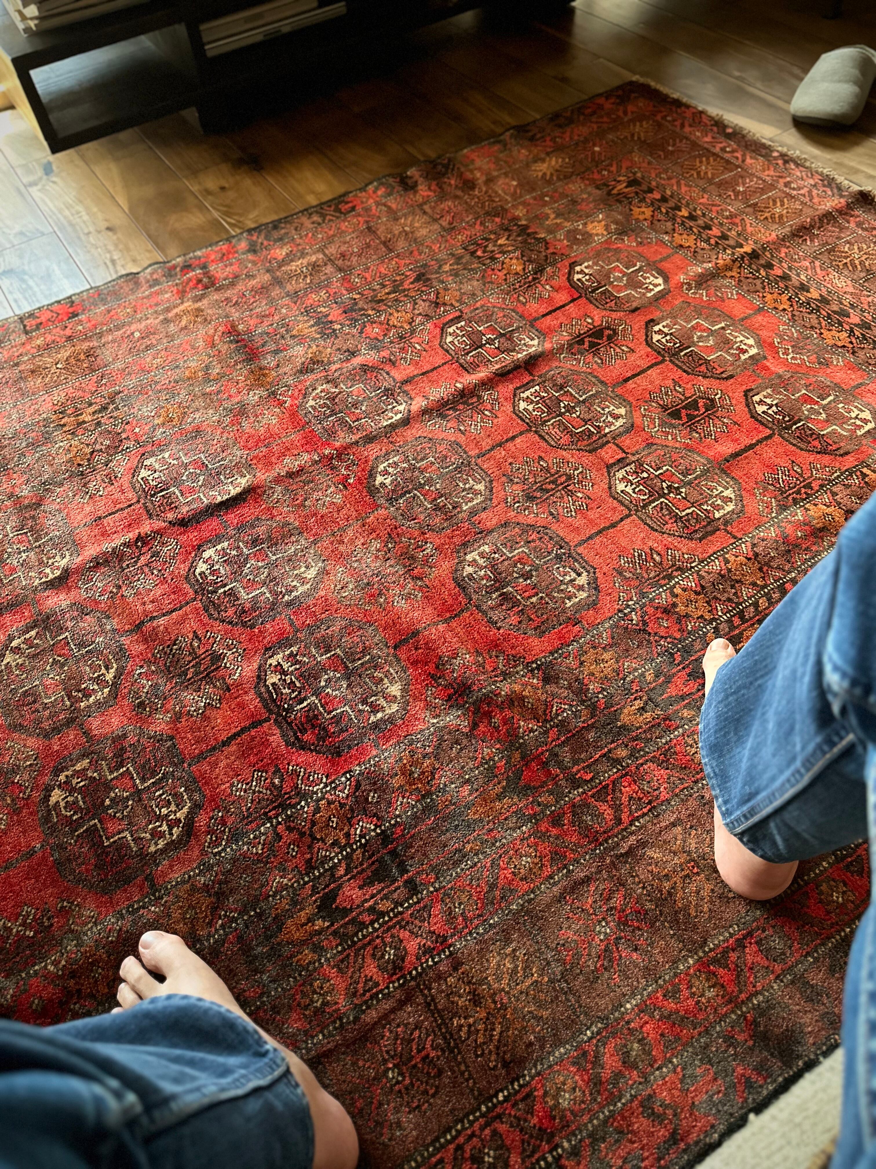 最後にラグそのものに関しては羊毛特有の匂いがあり、採寸は中央付近で計測していますが、手織りならではの歪みによる誤差や水洗いクリーニングによる縮み、また草木染めによる経年劣化の色ムラなどがありますが、それもまたヴィンテージラグの魅力かとご理解ください。