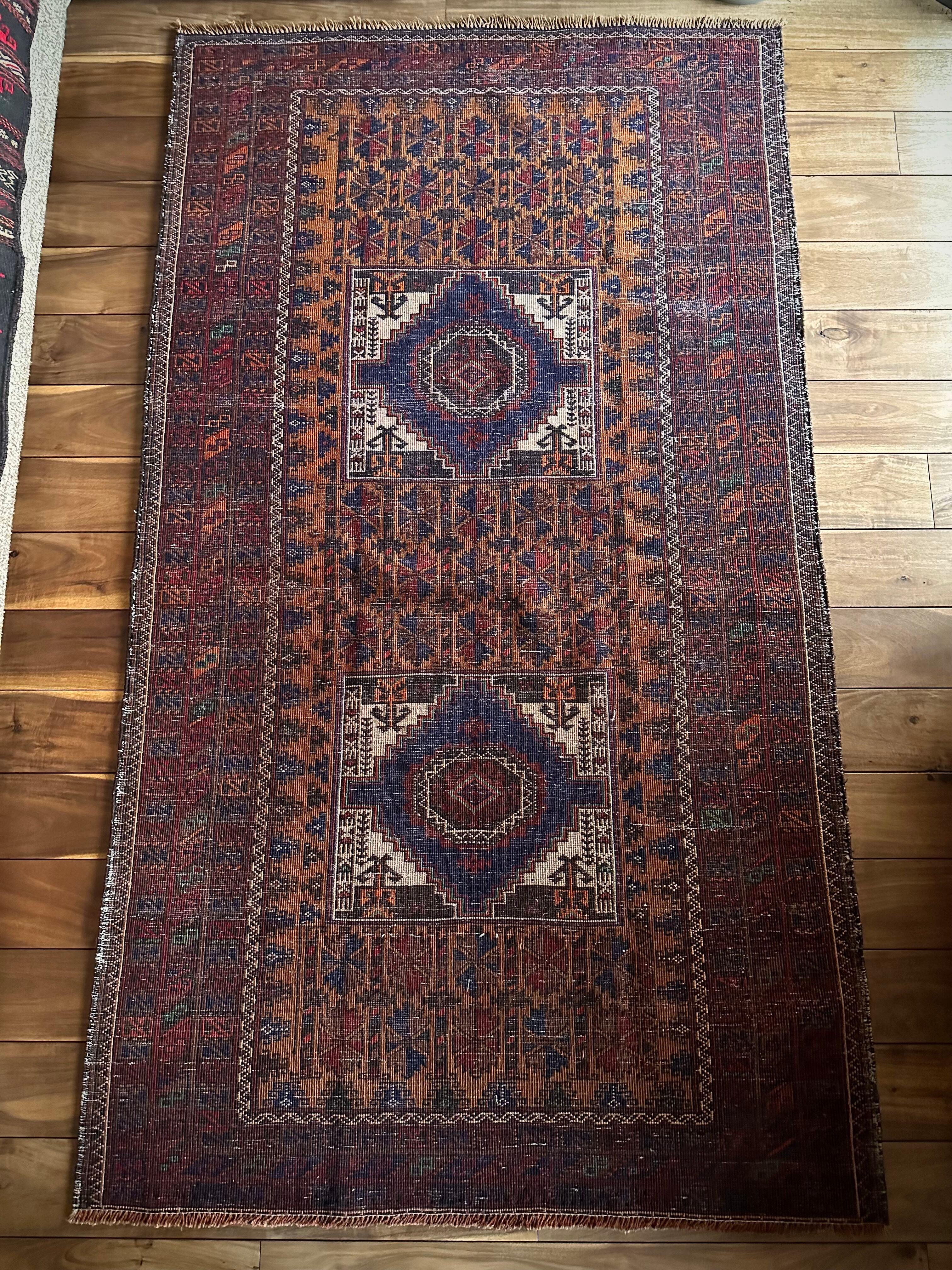 最後にラグそのものに関しては羊毛特有の匂いがあり、採寸は中央付近で計測していますが、手織りならではの歪みによる誤差や水洗いクリーニングによる縮み、また草木染めによる経年劣化の色ムラなどがありますが、それもまたヴィンテージラグの魅力かとご理解ください。