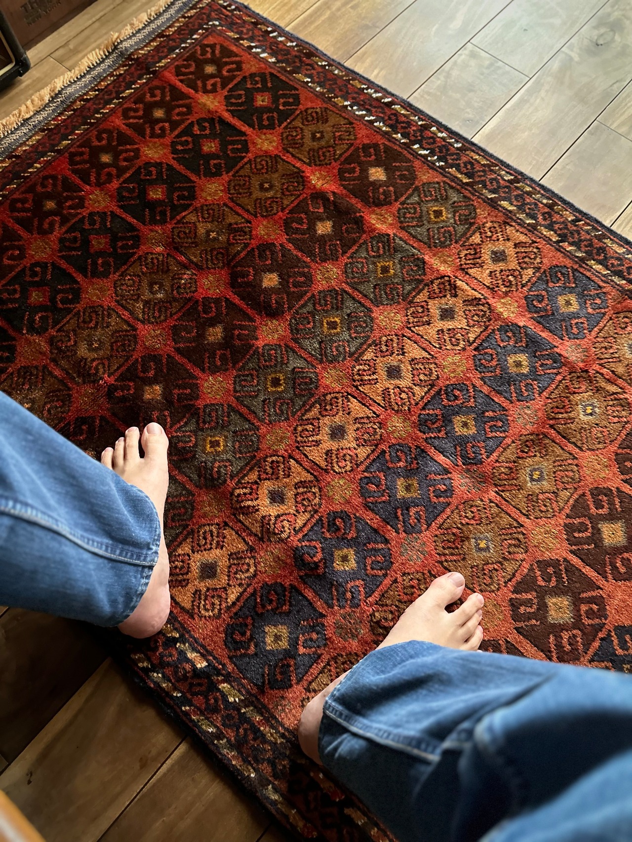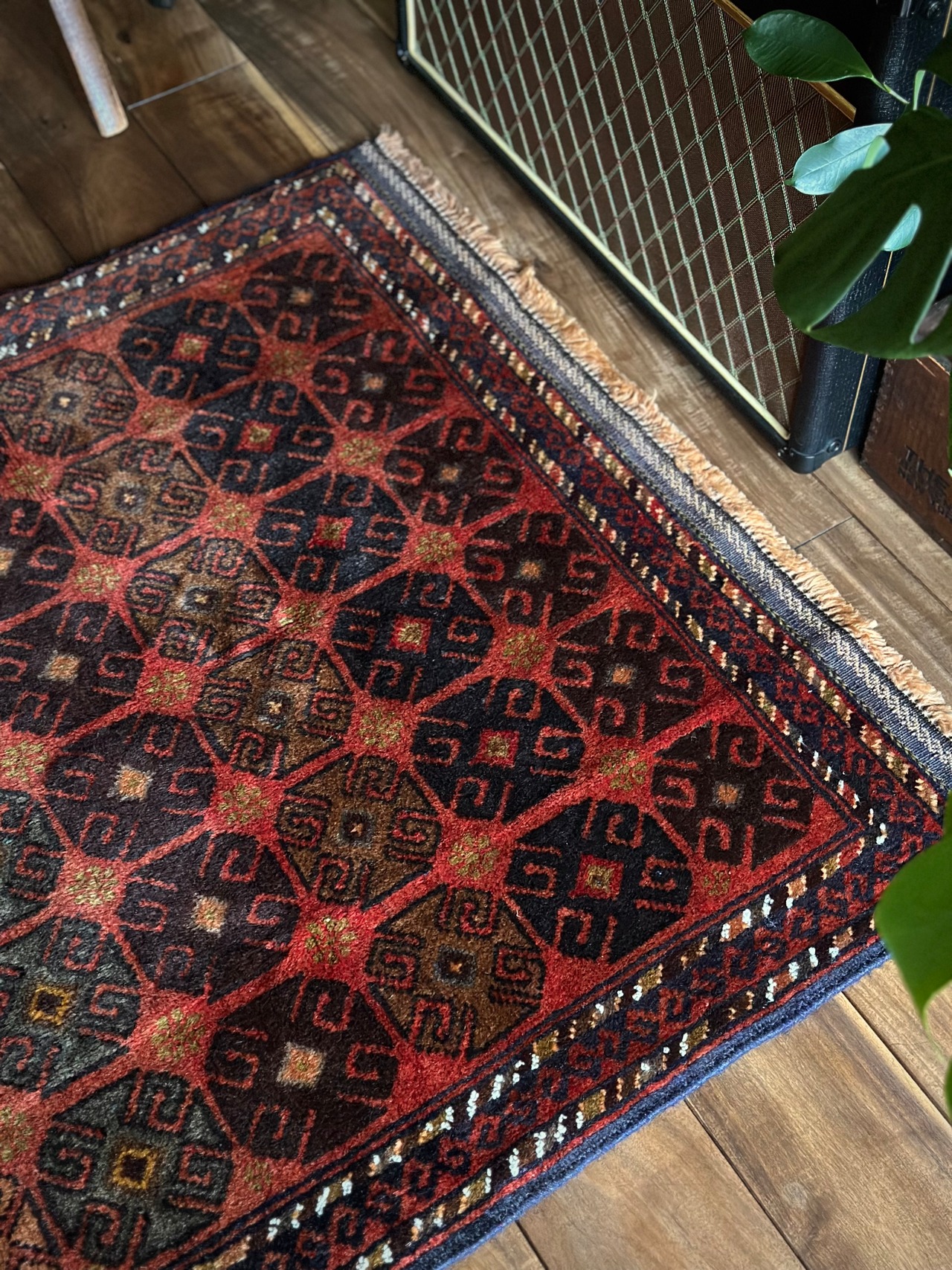 最後にラグそのものに関しては羊毛特有の匂いがあり、採寸は中央付近で計測していますが、手織りならではの歪みによる誤差や水洗いクリーニングによる縮み、また草木染めによる経年劣化の色ムラなどがありますが、それもまたヴィンテージラグの魅力かとご理解ください。
