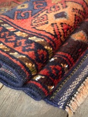 同じバルーチ族の中でも定住する部族と半遊牧する部族を分ける為に名付けられた「マルダリ」という名称はラグにも転用され、織り方に紋様など異なる点があるようですが、こちらはバルーチ特有のランニングドッグが描かれたプリミティブな1枚で、全体的に力強さを感じずにはいられないクレイジーなラグになります。
