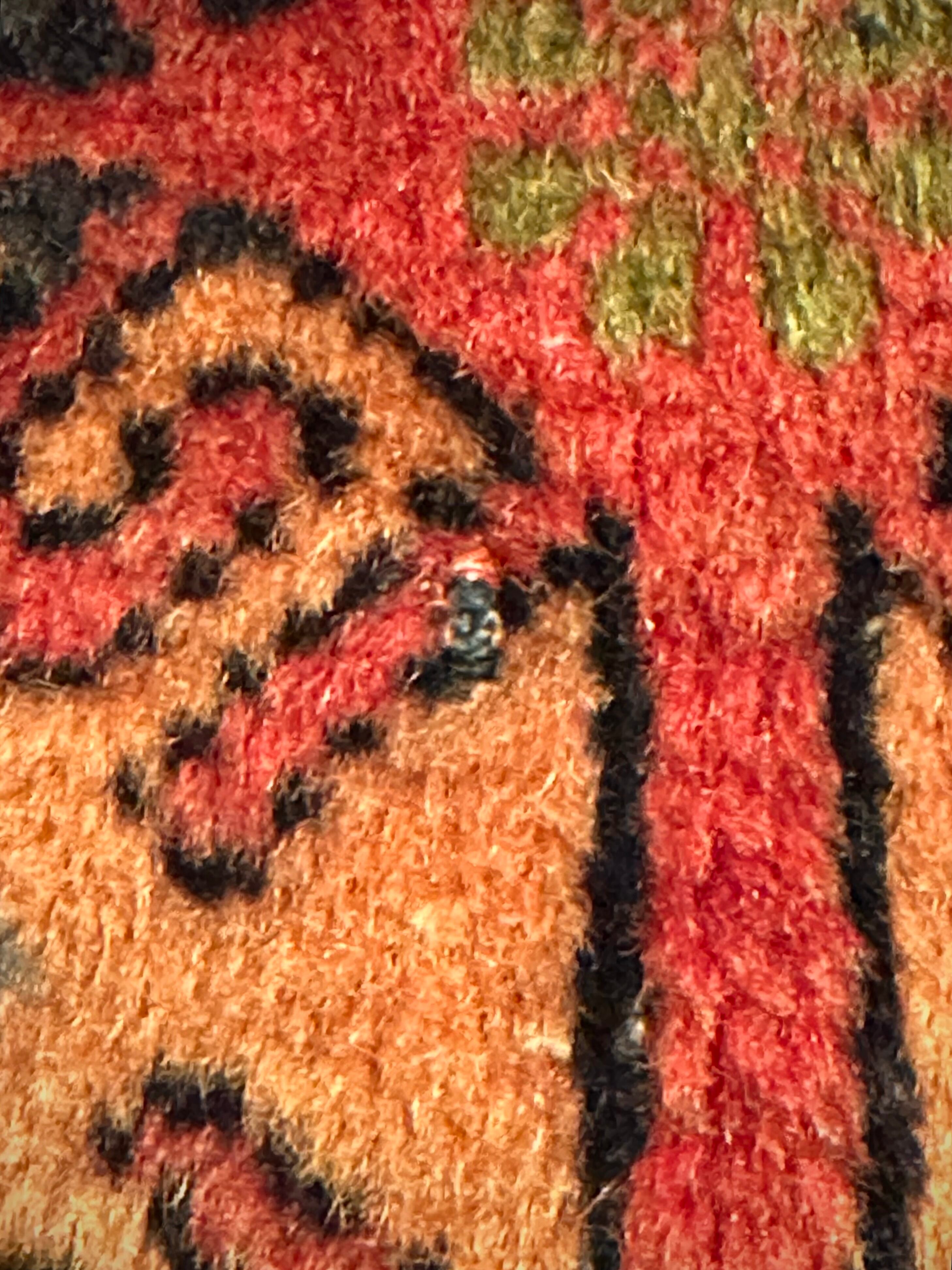 経年としては50年のヴィンテージ品になりますが、目立つ経年劣化もなくパイルの質感もソフトな触り心地で気持ちいいです。またダメージとして中央付近に5ミリ大のパイルの焦げ跡がありますが、パッと見では気付かない程度になりますので写真にてご確認ください。