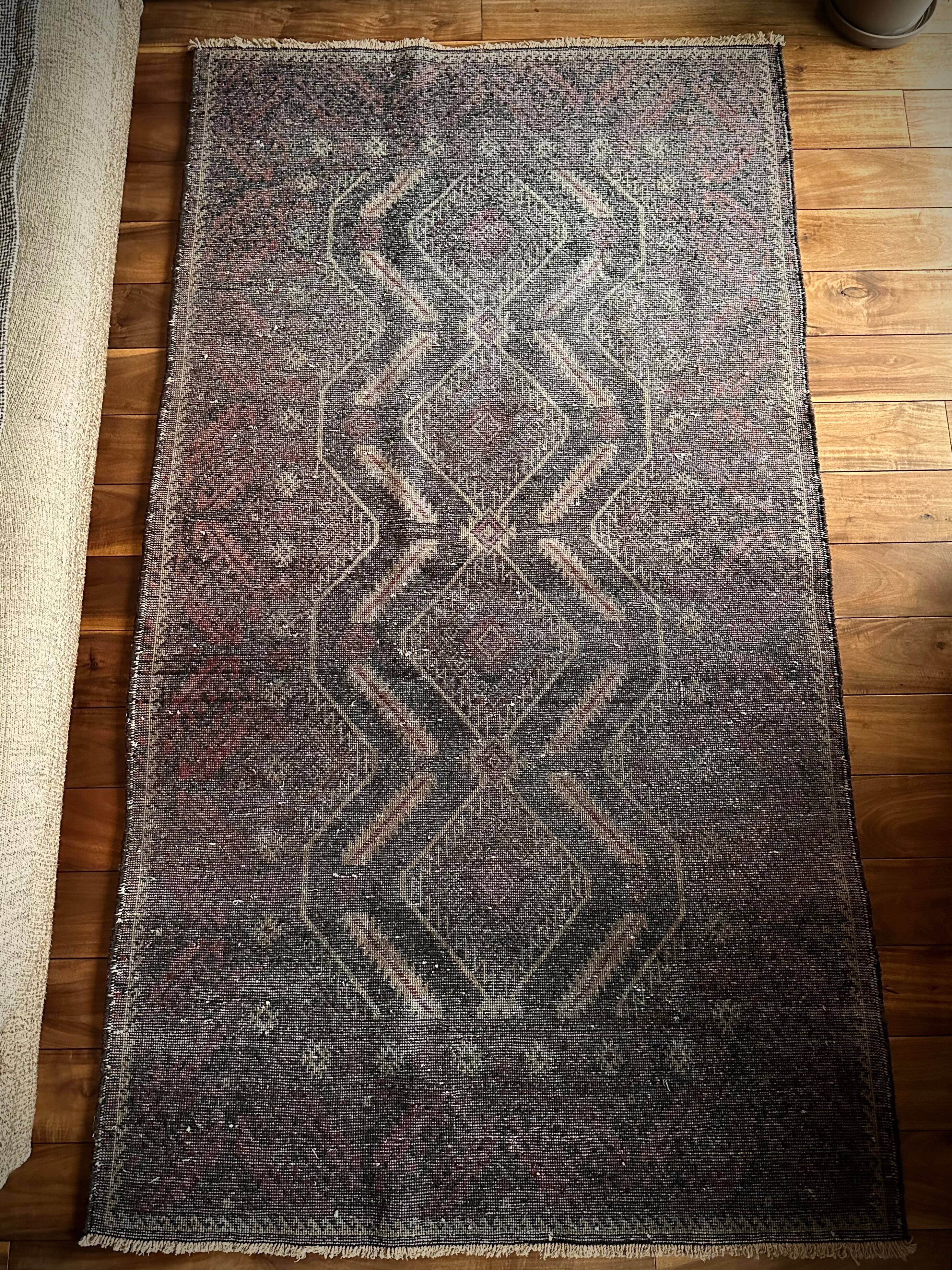 最後にラグそのものに関しては羊毛特有の匂いがあり、採寸は中央付近で計測していますが、手織りならではの歪みによる誤差や水洗いクリーニングによる縮み、また草木染めによる経年劣化の色ムラなどがありますが、それもまたヴィンテージラグの魅力かとご理解ください。